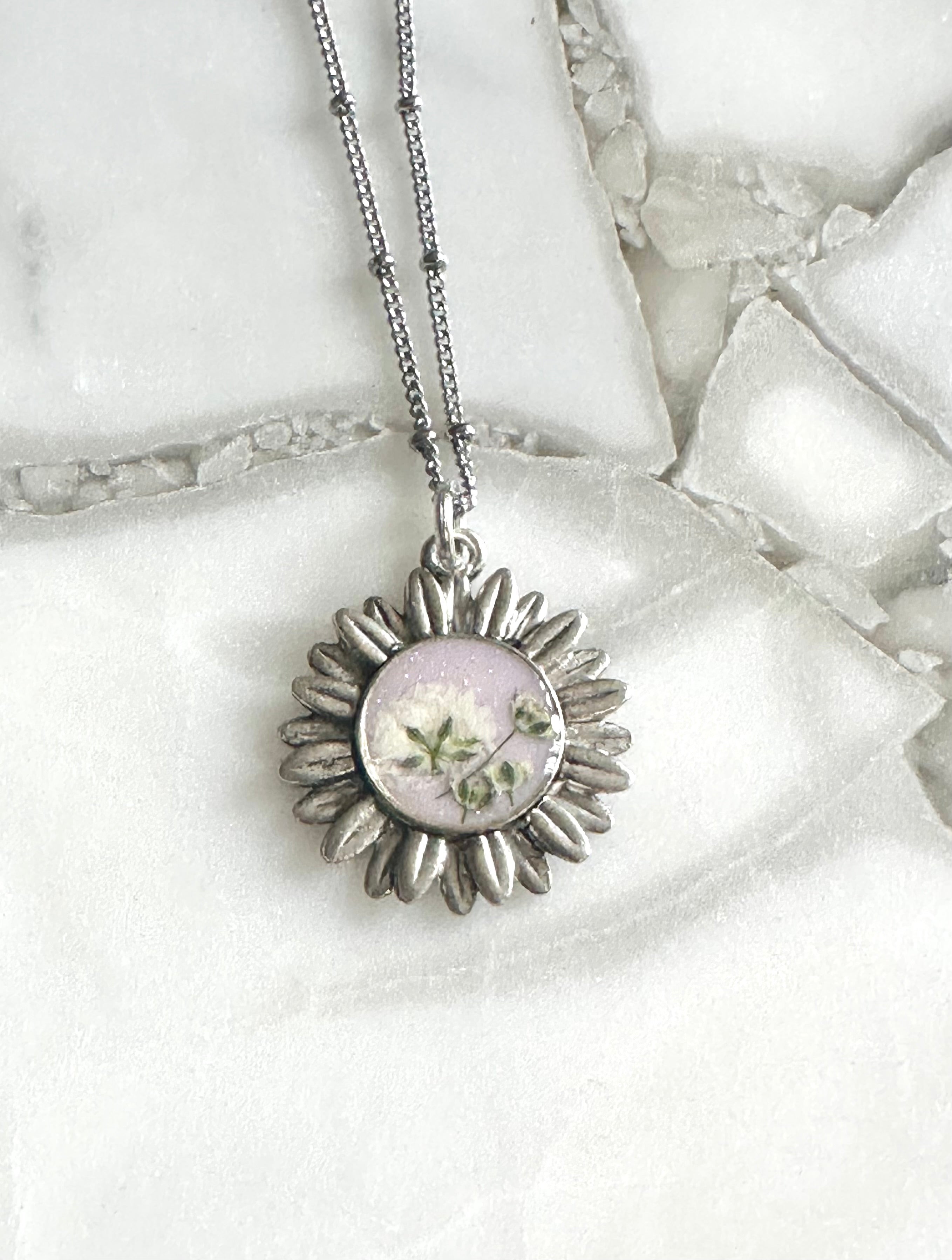 Floral Aster Pendant Necklace ‐ Silver / Pale lavender