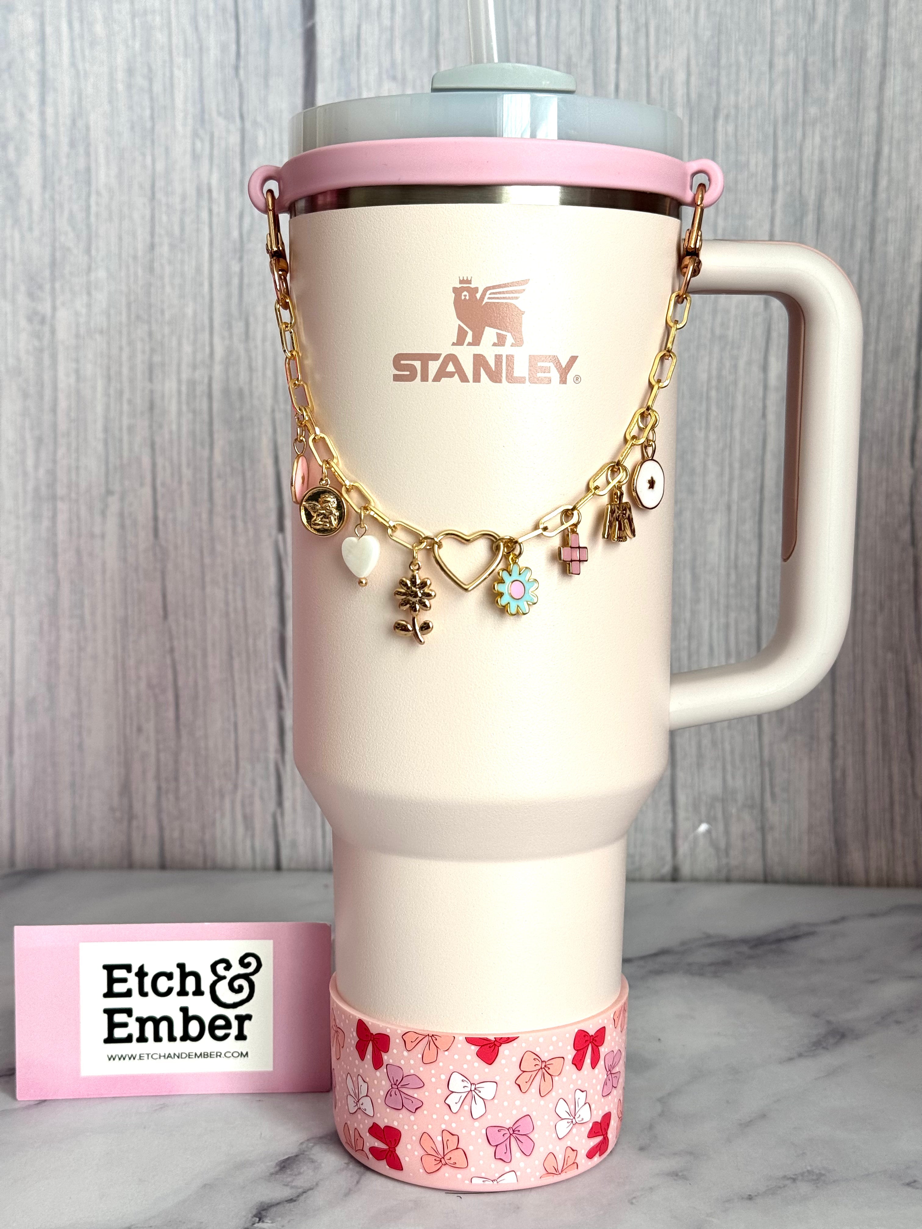 This playful accessory is designed to make your tumbler truly one-of-a-kind. Each charm necklace comes fully assembled with charms, a sturdy chain, and easy-to-use clasps on each side, allowing you to attach it seamlessly to the silicone strap of your choice (straps sold separately).