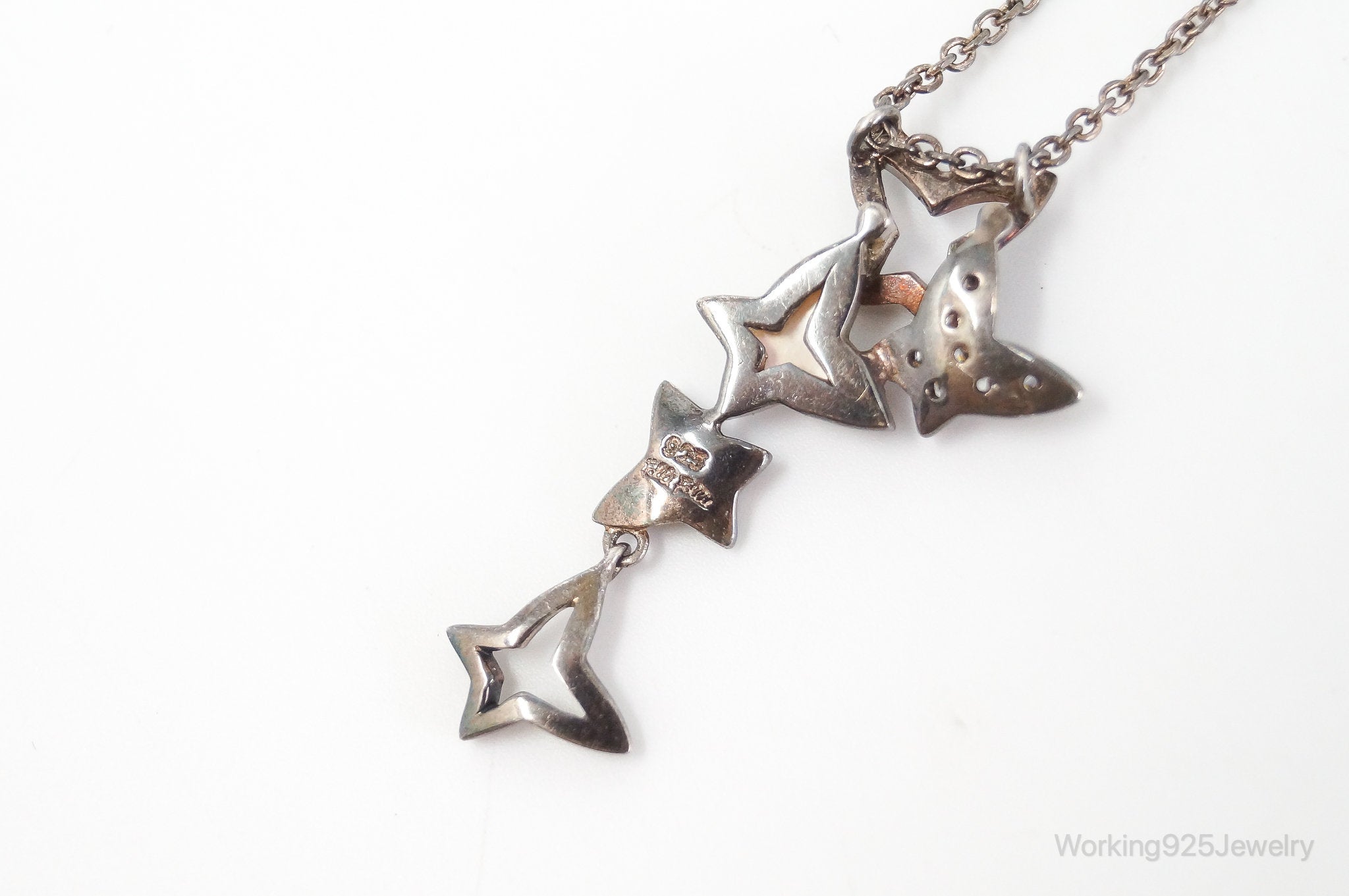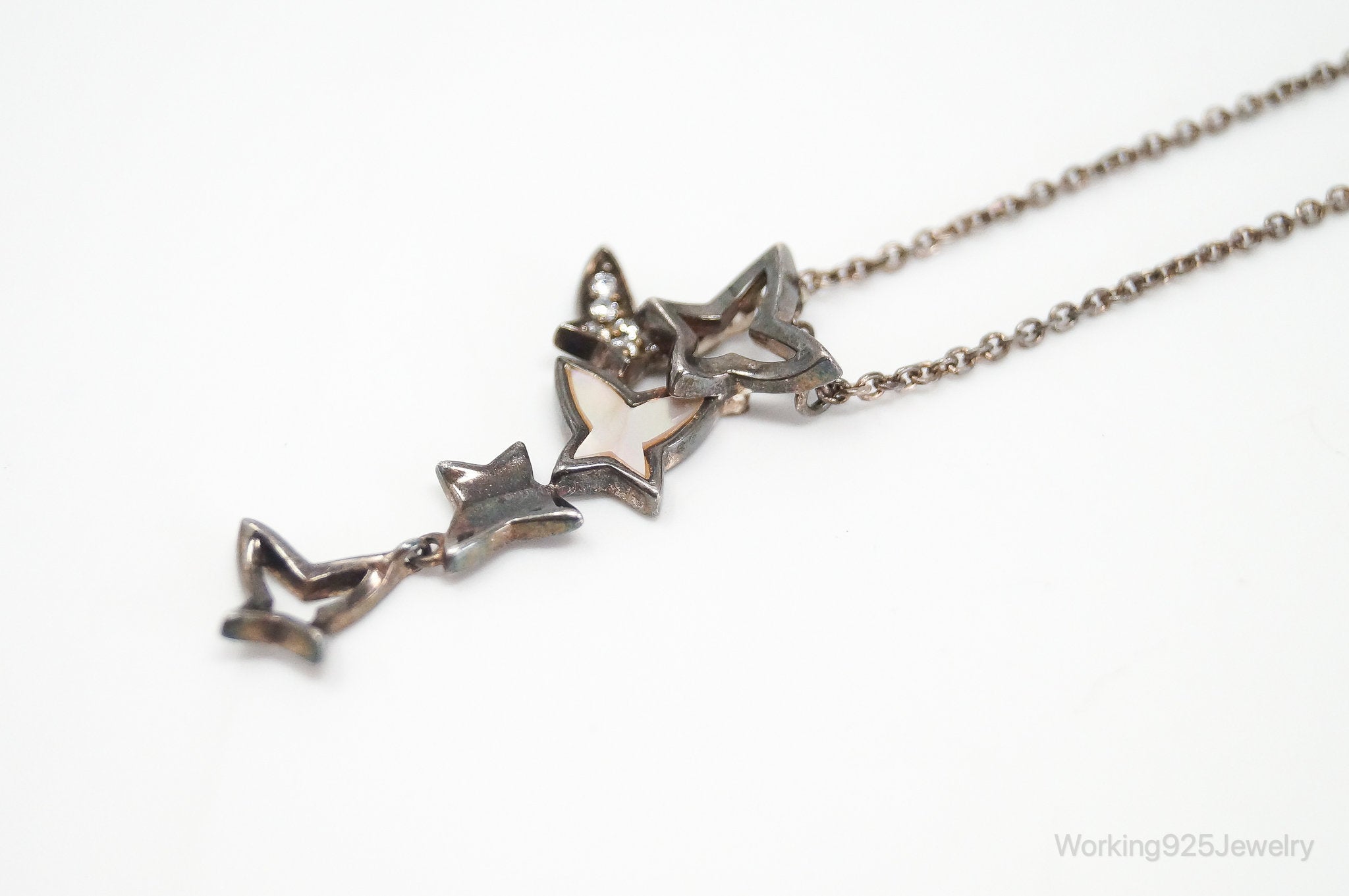Folli Follie Mother Of Pearl Cubic Zirconia Butterflies Sterling Silver Necklace