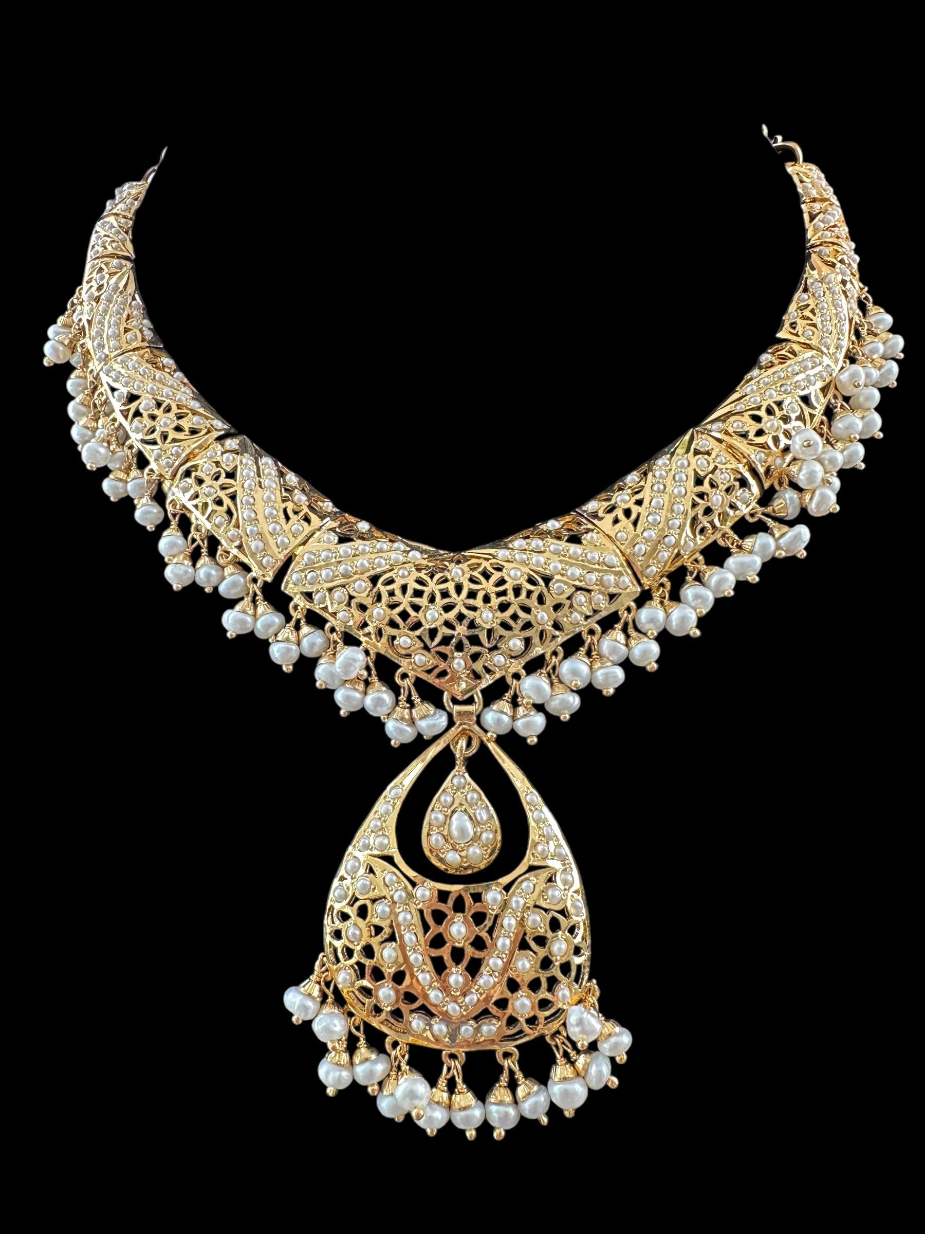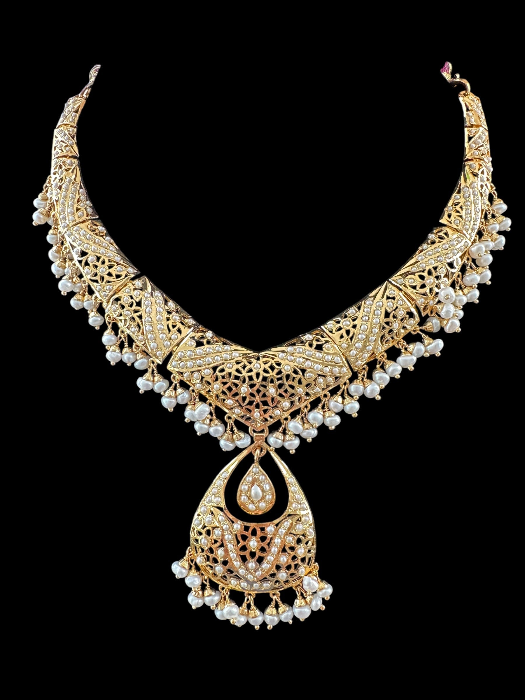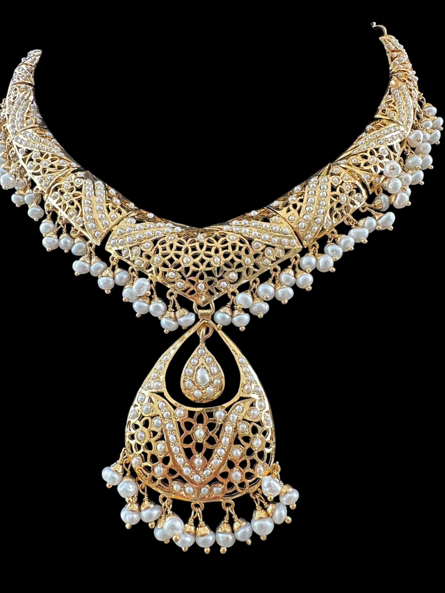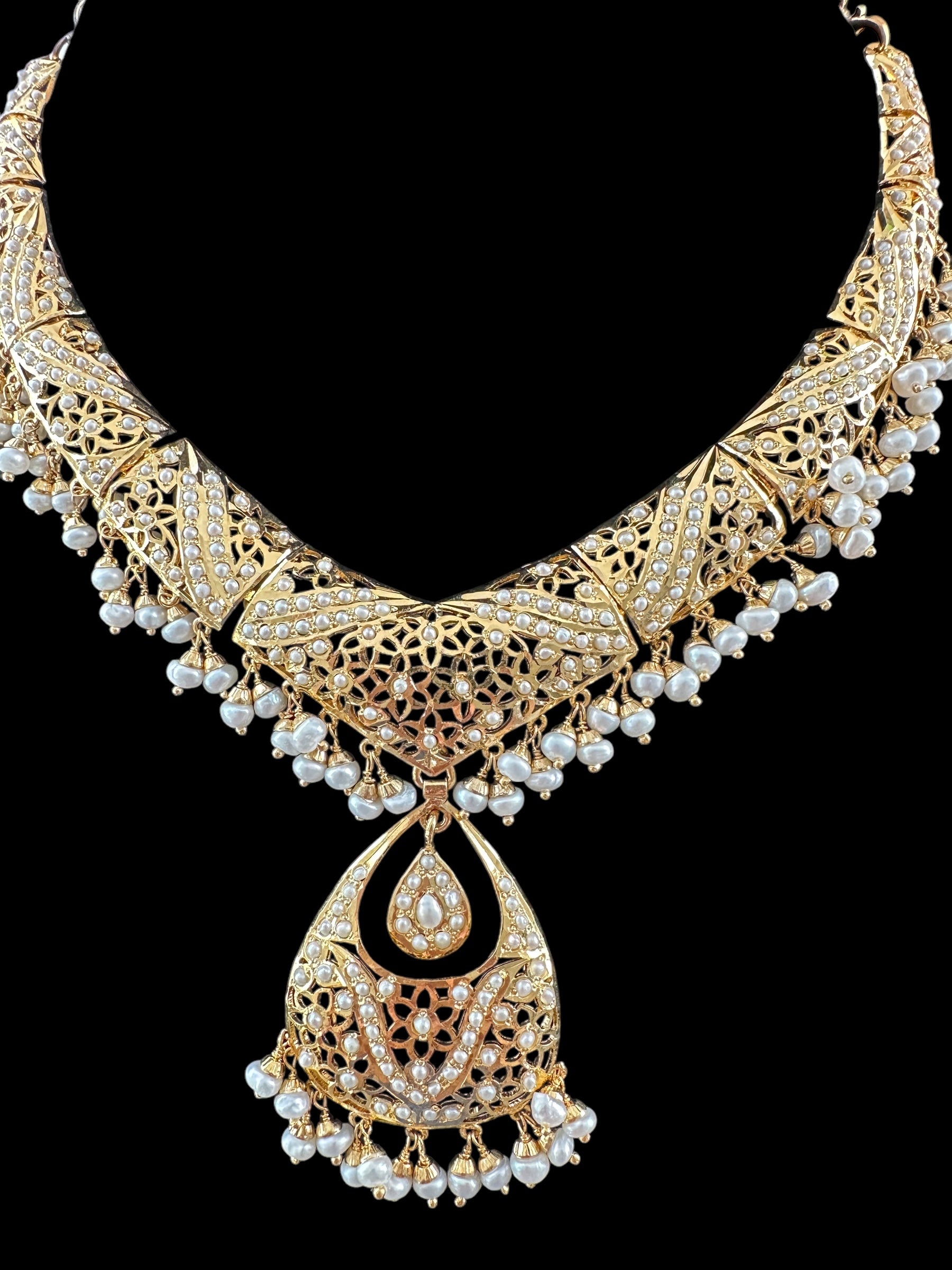 Fresh water pearl Jadau Necklace Set in Gold Plated Silver ( READY TO SHIP )