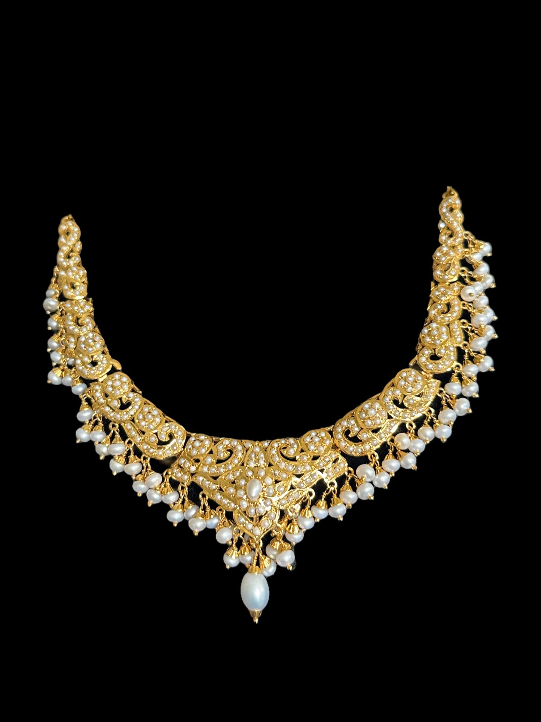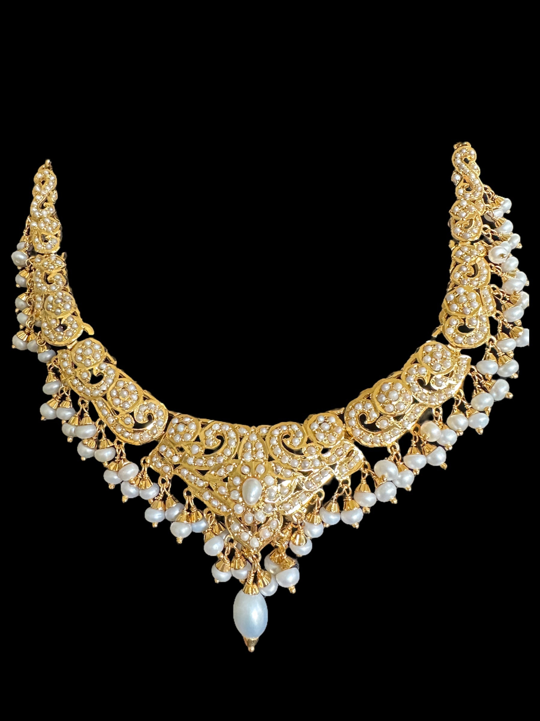 Fresh water pearl necklace set in gold plated silver ( SHIPS IN 5 WEEKS )