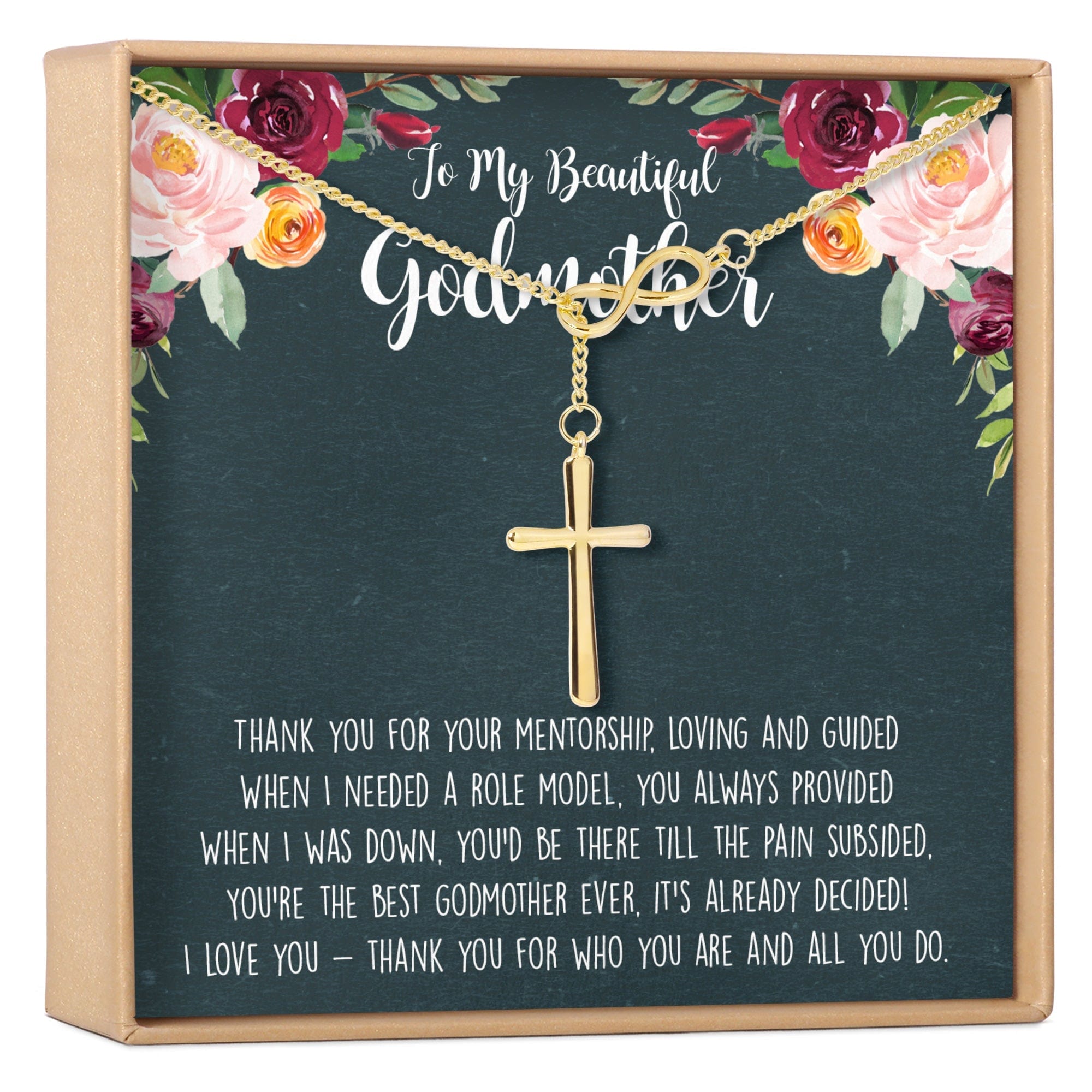 Godmother Necklace, Multiple Styles ‐ Infinity Cross / Gold