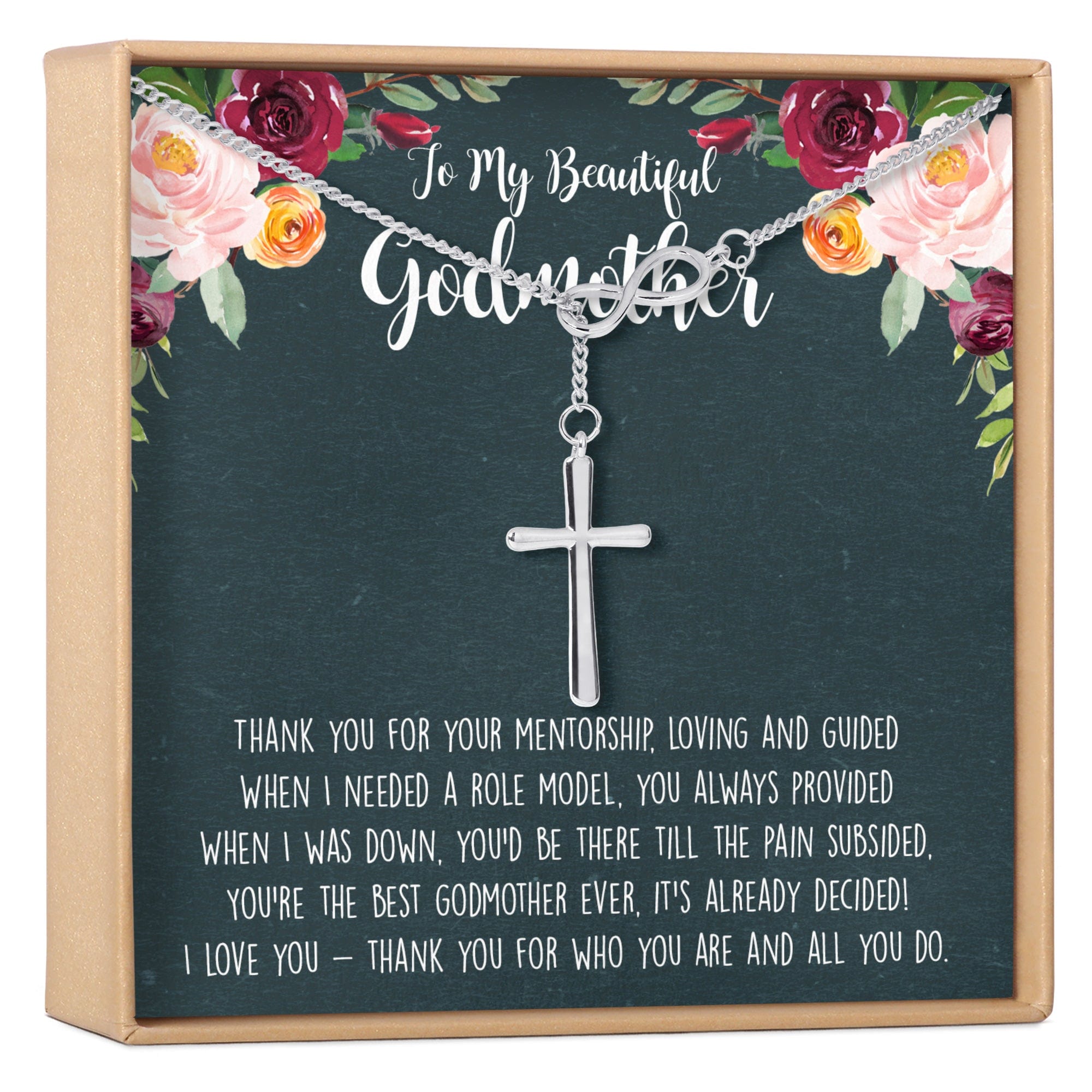Godmother Necklace, Multiple Styles ‐ Infinity Cross / Rose Gold