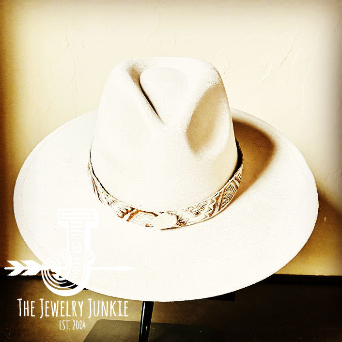 **Gold Aztec Embossed Leather Hat Band Only w/white Turq Slab 952a