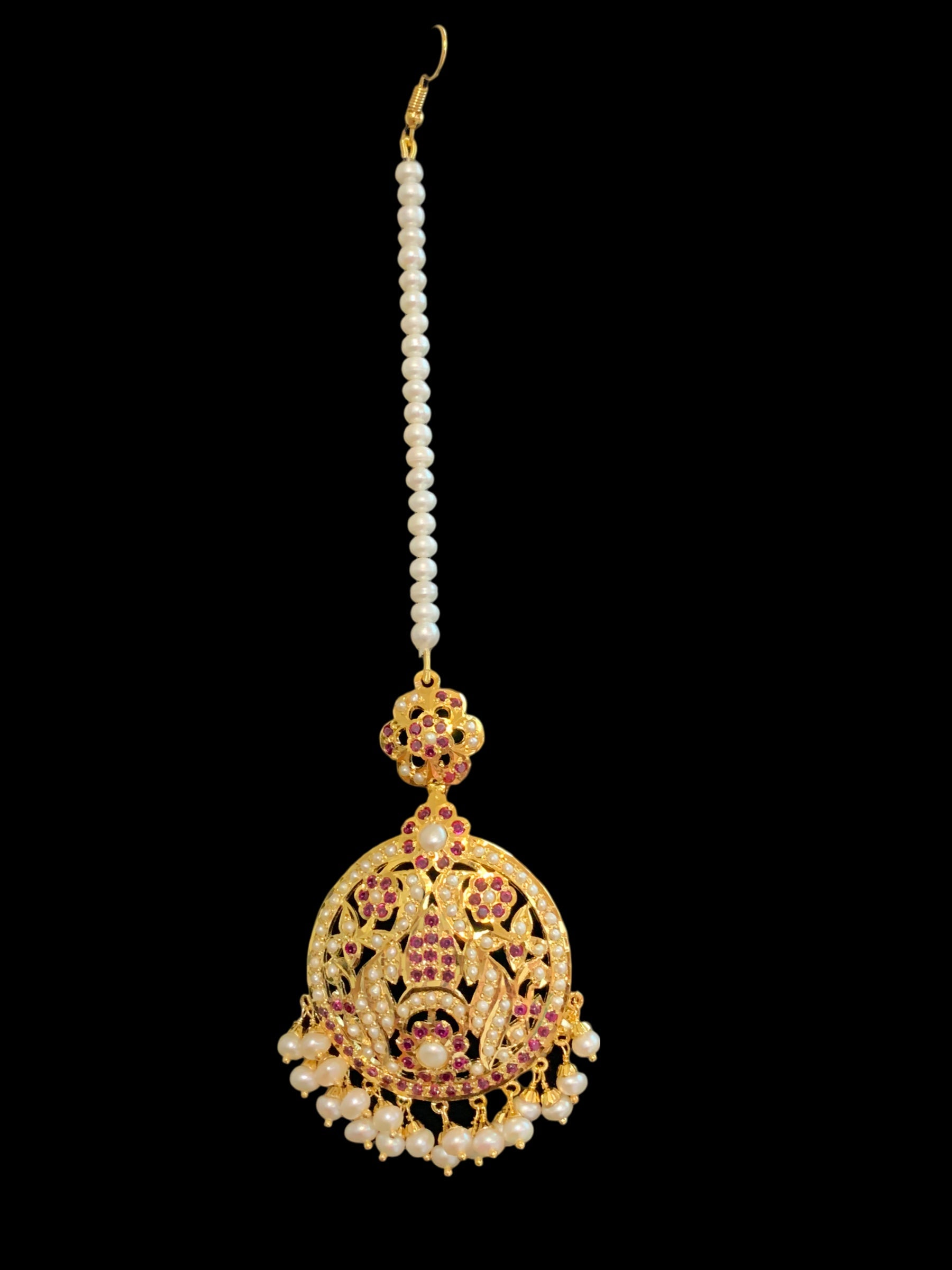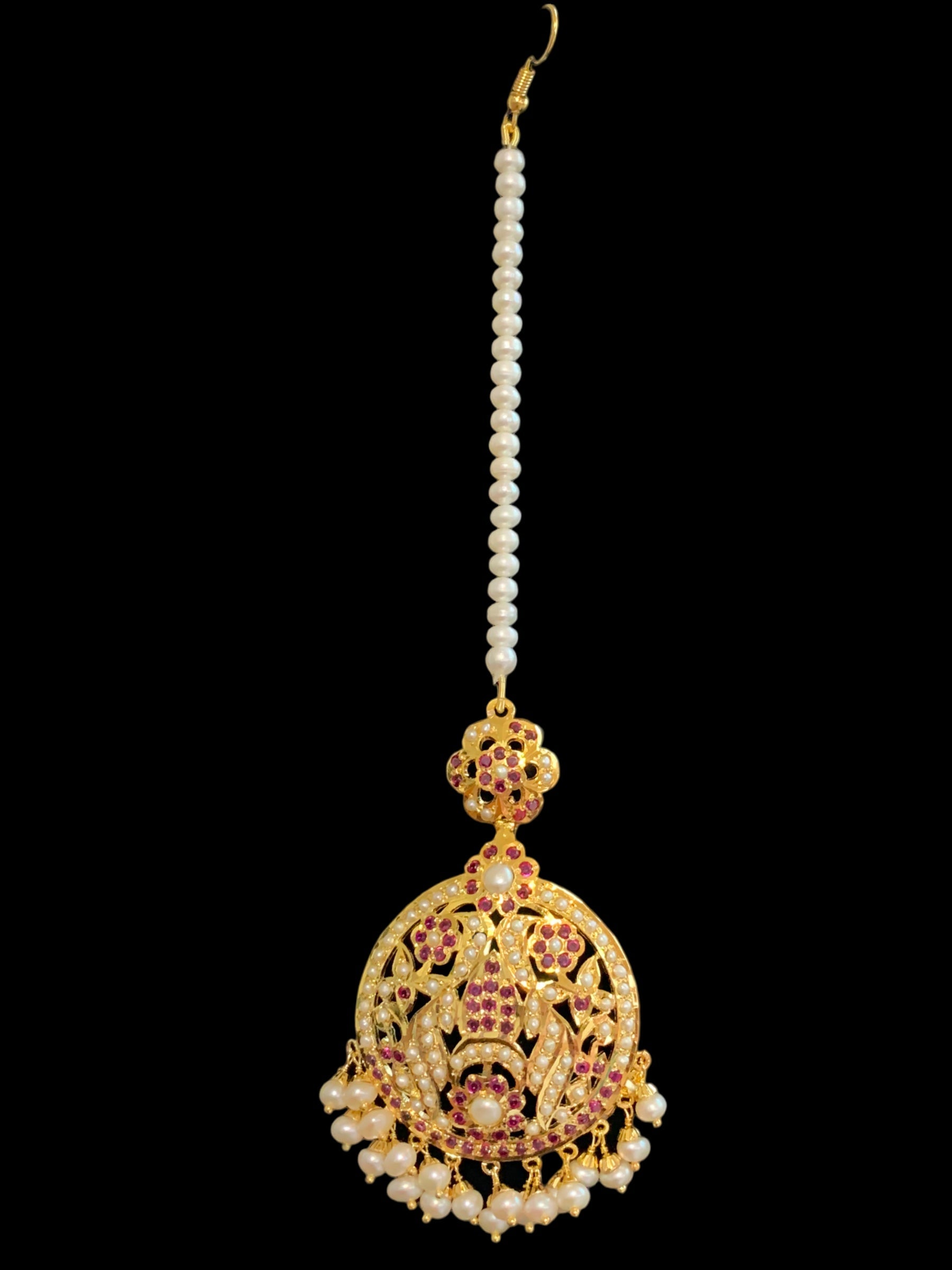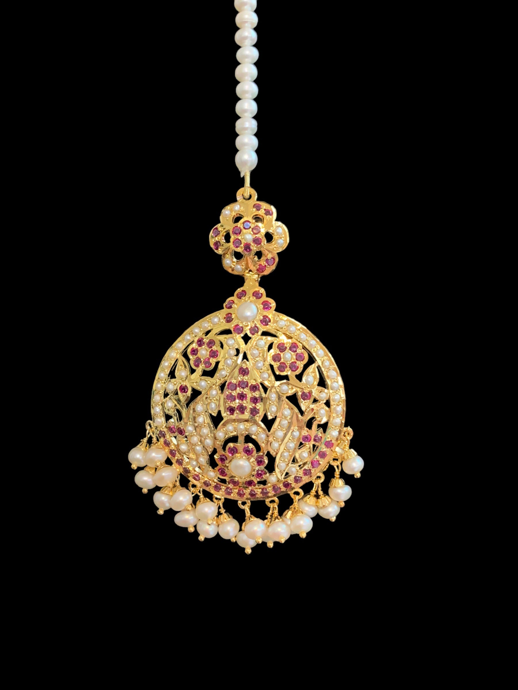 Gold plated silver jadau tikka in pearls and rubies ( SHIPS IN 4 WEEKS )