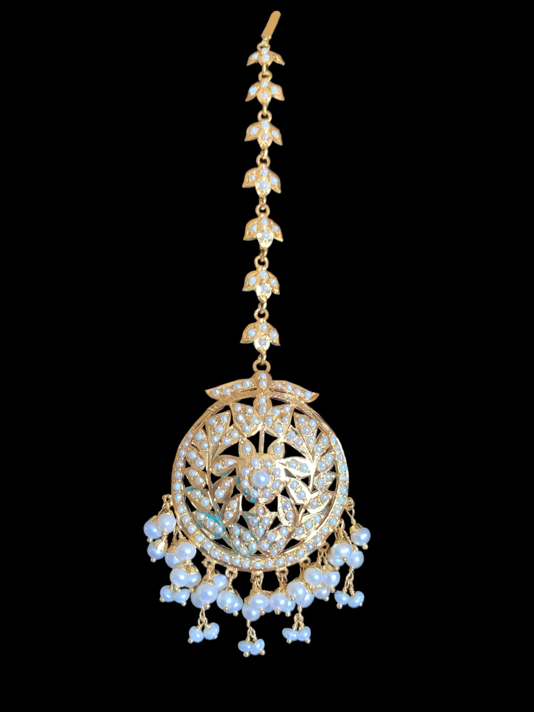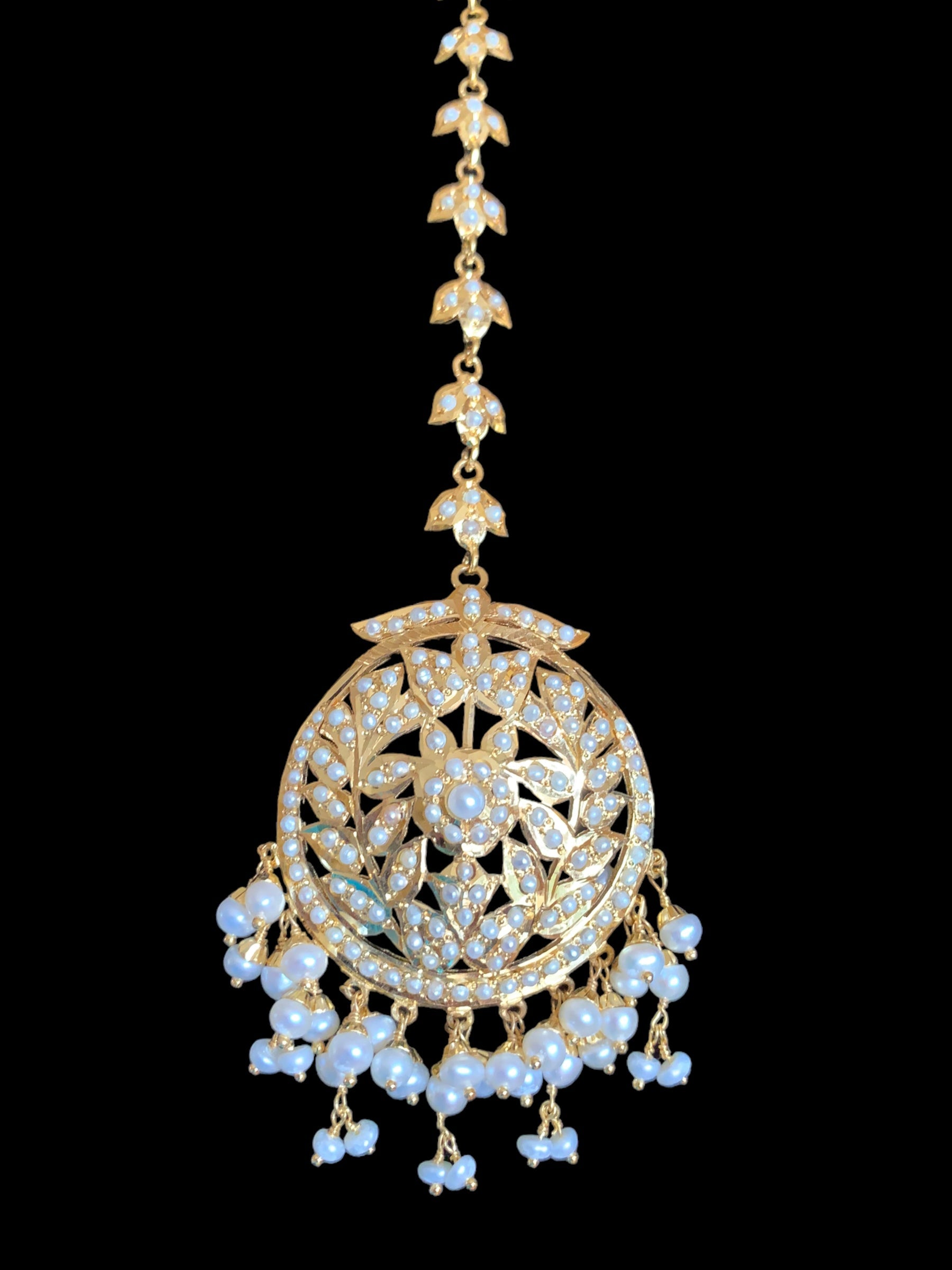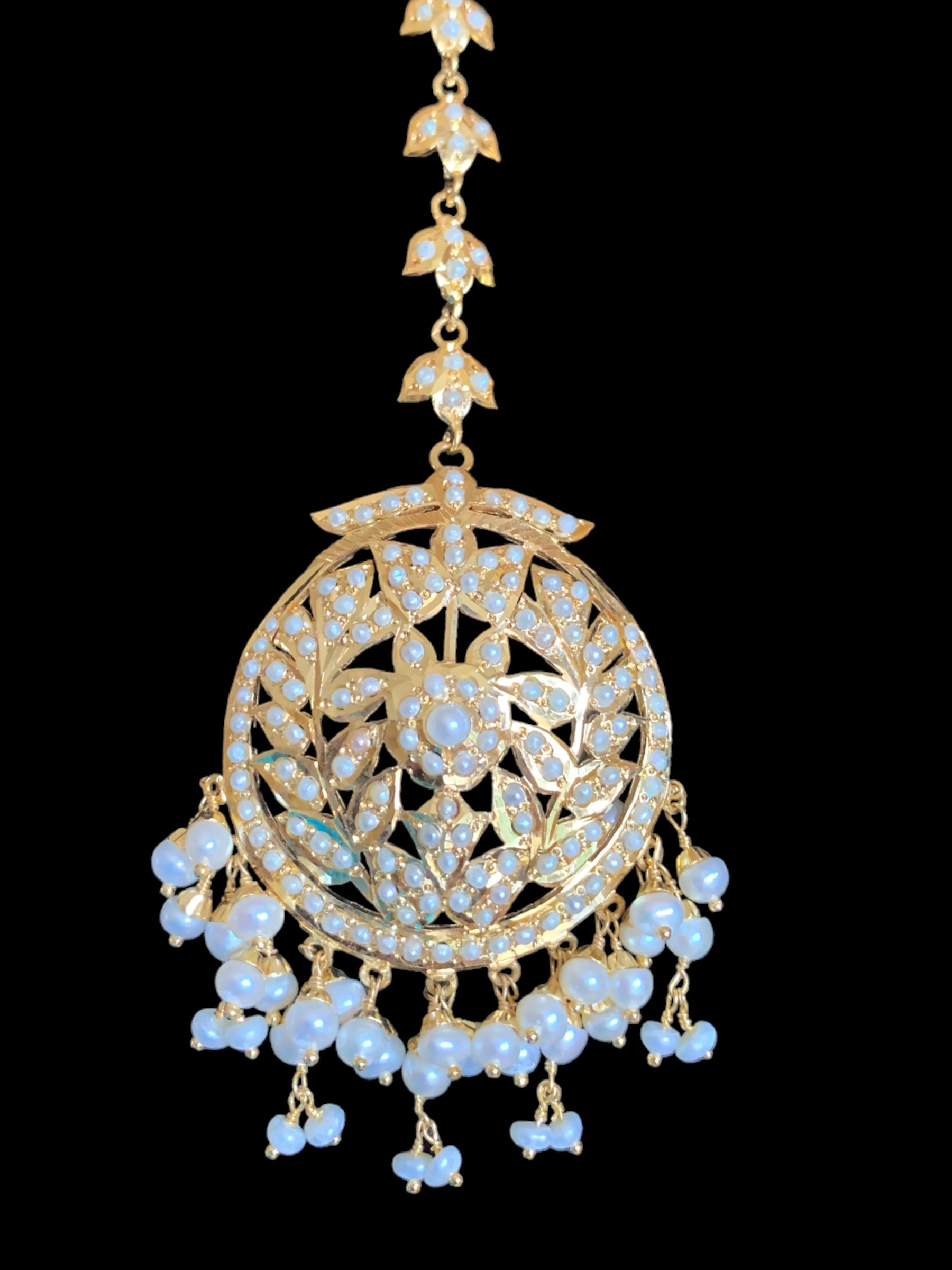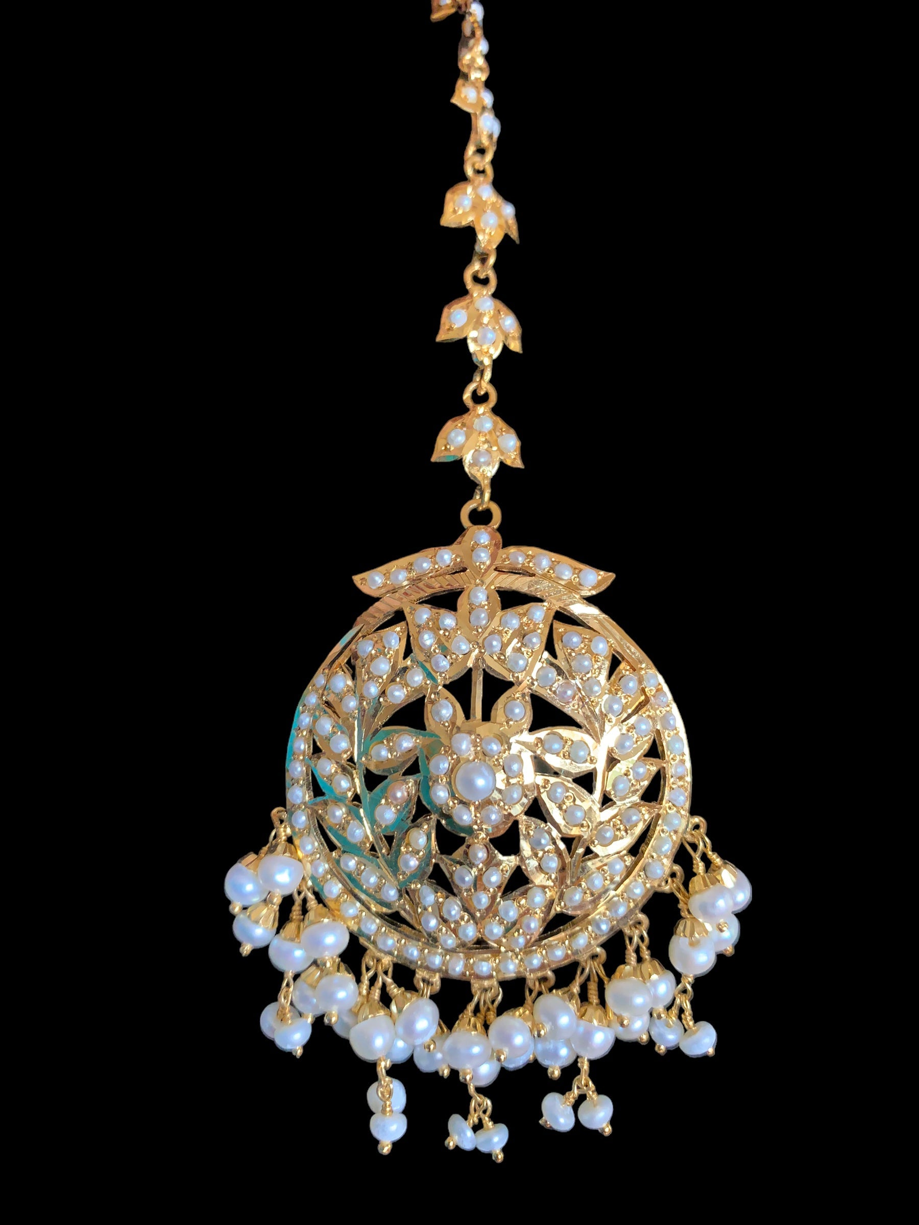Gold plated silver tika in fresh water pearls ( SHIPS IN 5 WEEKS )