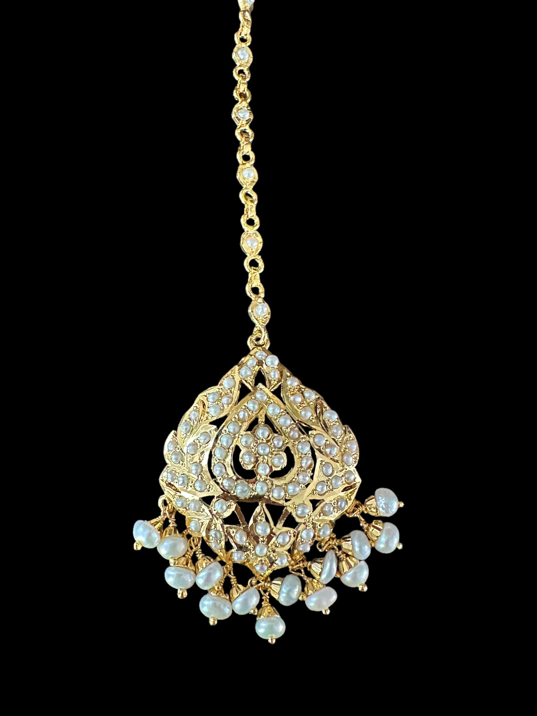 Gold plated silver tikka in fresh water pearls ( SHIPS IN 5 WEEKS )