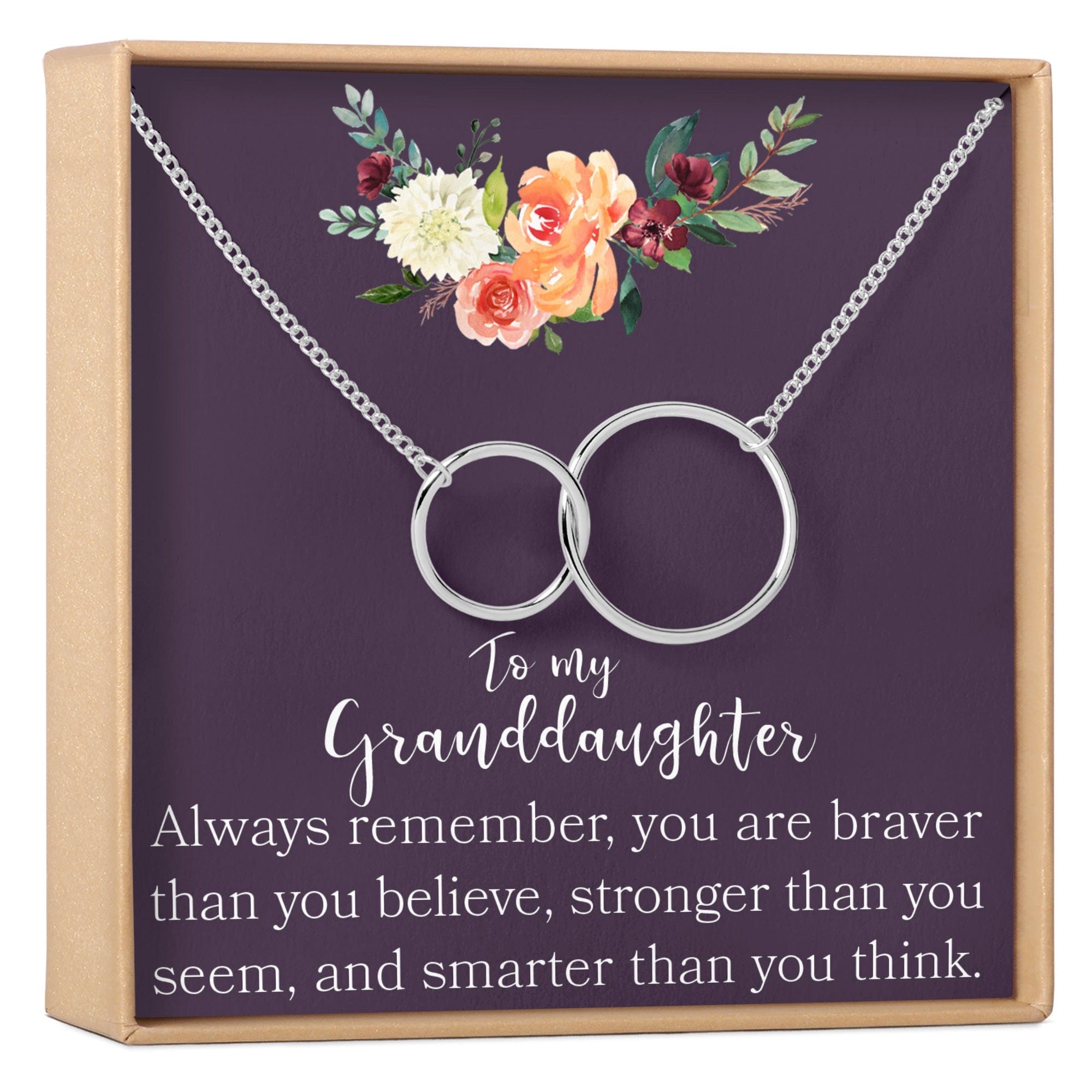 The love between you and your Granddaughter is forever. Show your love for Granddaughter with this beautiful interlocking circle design symbolizing the connection between you. This elegant piece is designed to shine and make her feel like the princess she really is.