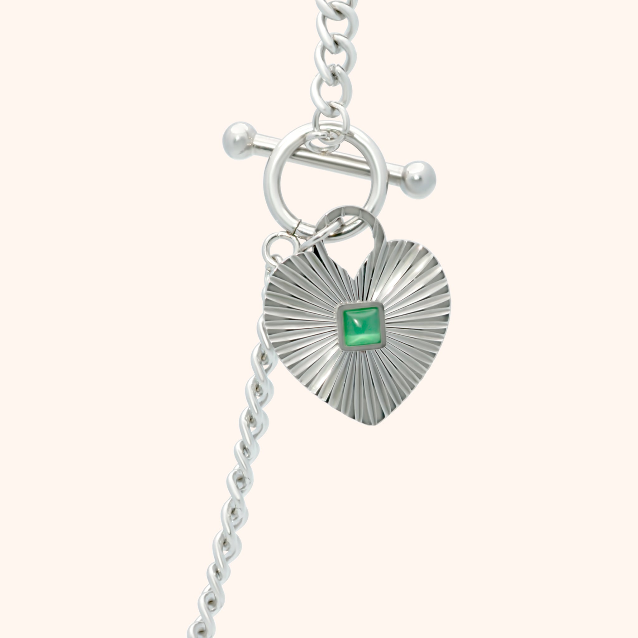 This striking necklace features a bold chain and a beautifully detailed heart charm, symbolizing love and inner strength.