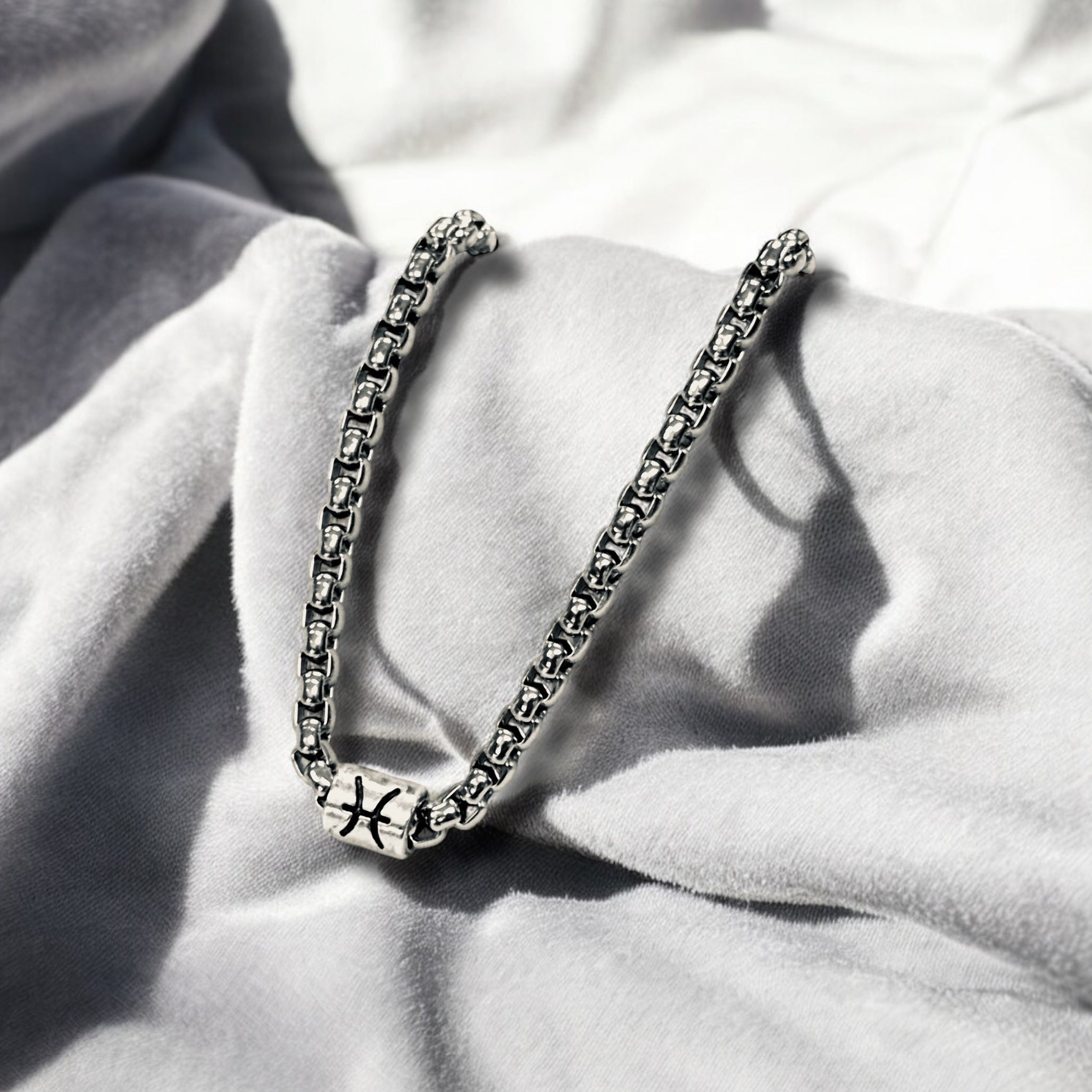 Horoscope stainless steel box chain zodiac necklace for men ‐ Pisces
