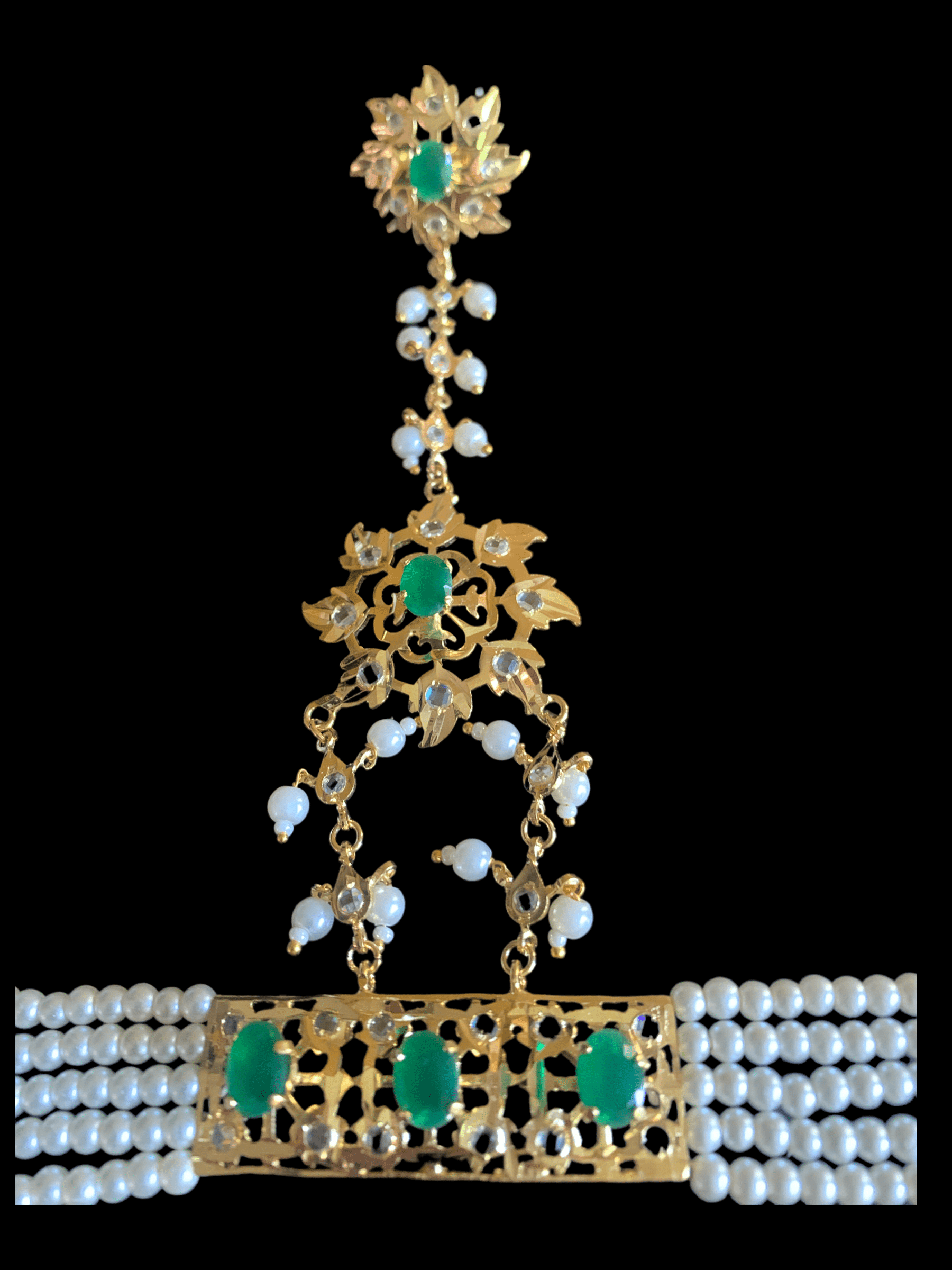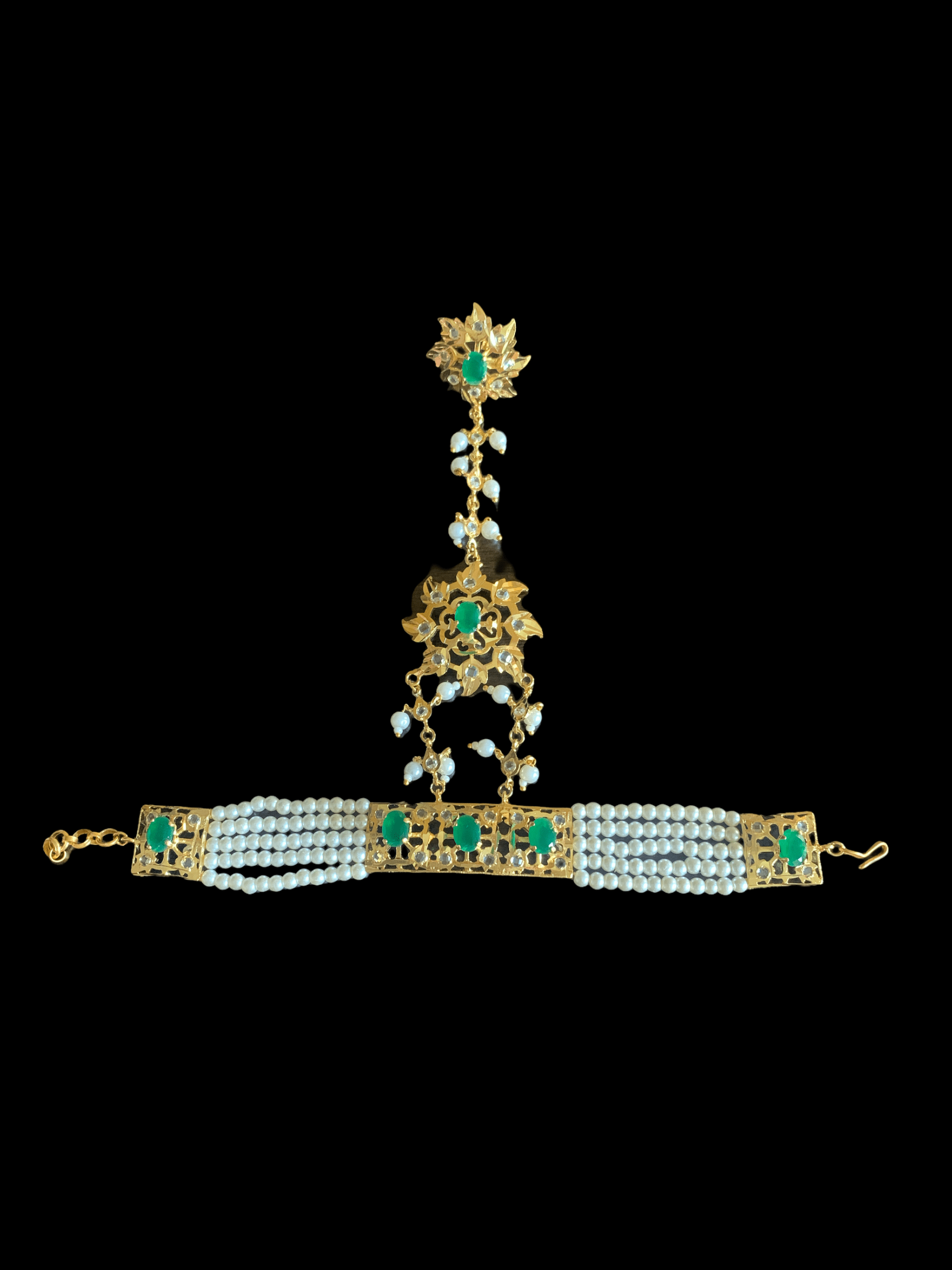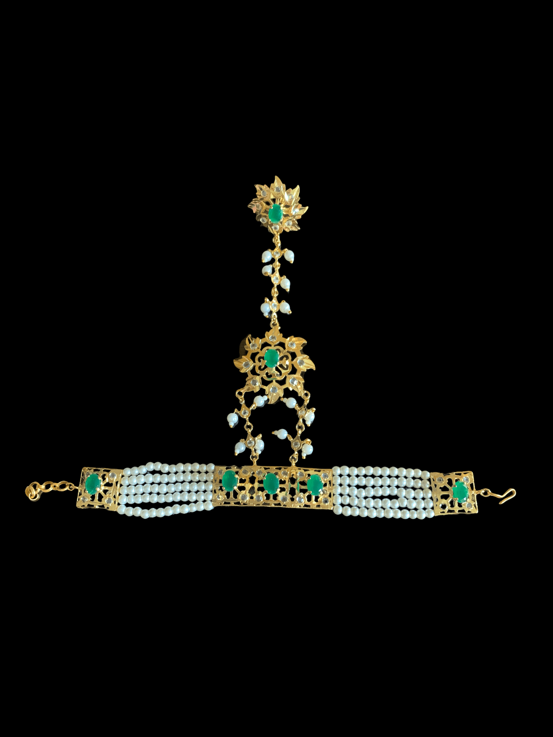 HP3 Nihala Hyderabadi haath Phool in emeralds (READY TO SHIP )