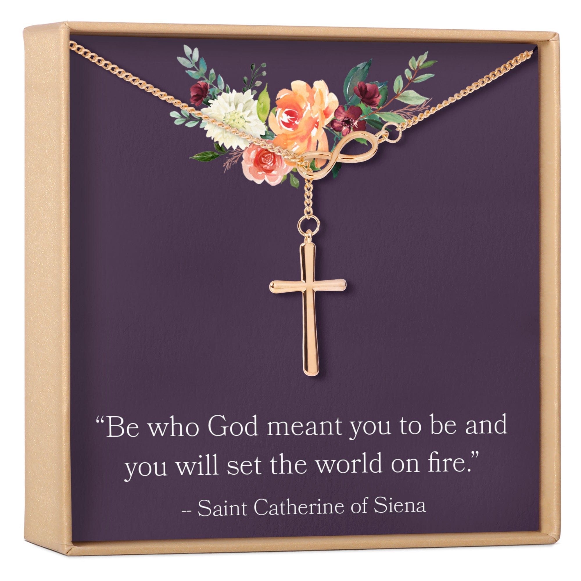 It's not always easy to express your faith, but this delicate infinity cross has a unique design that remains elegant and timeless.