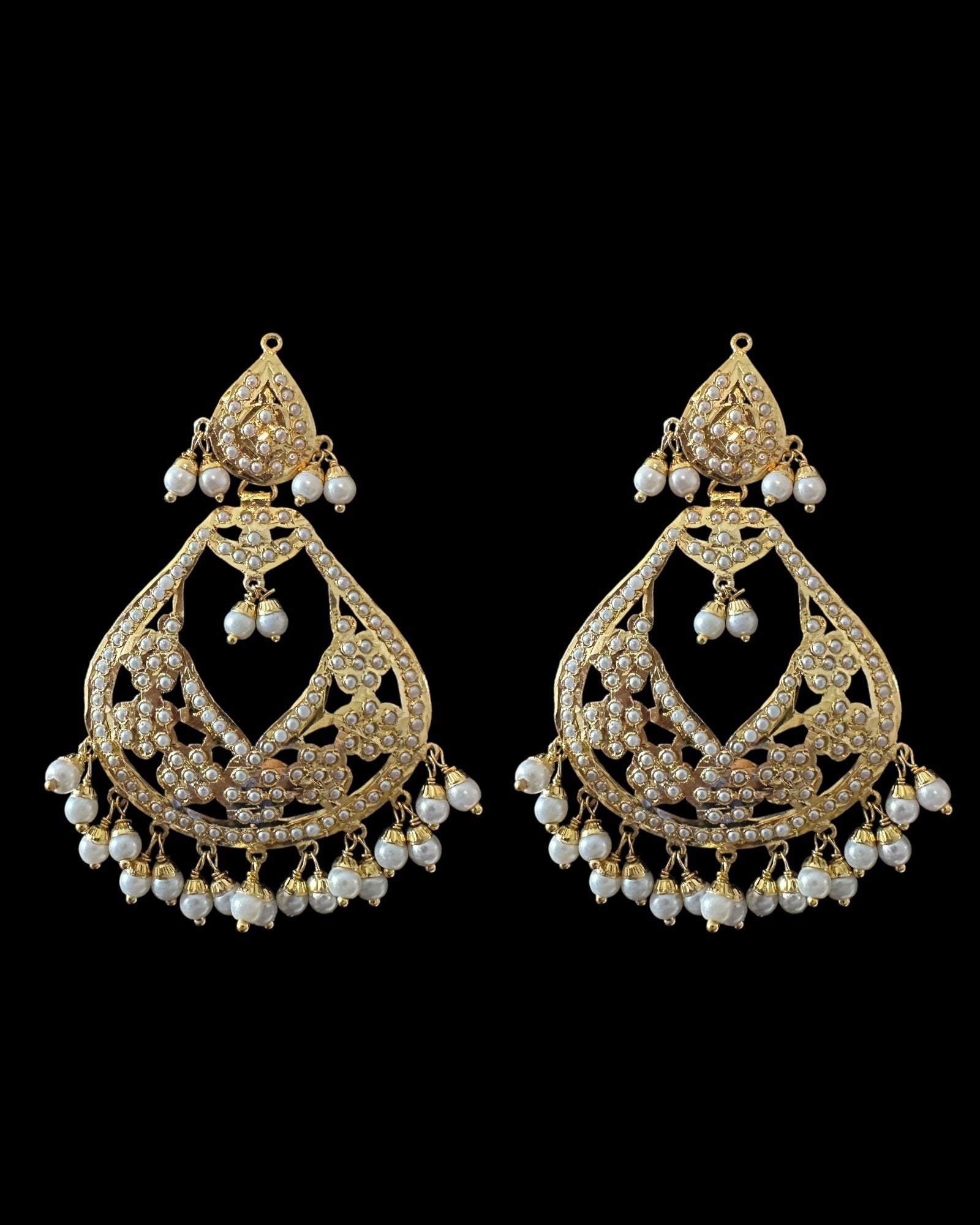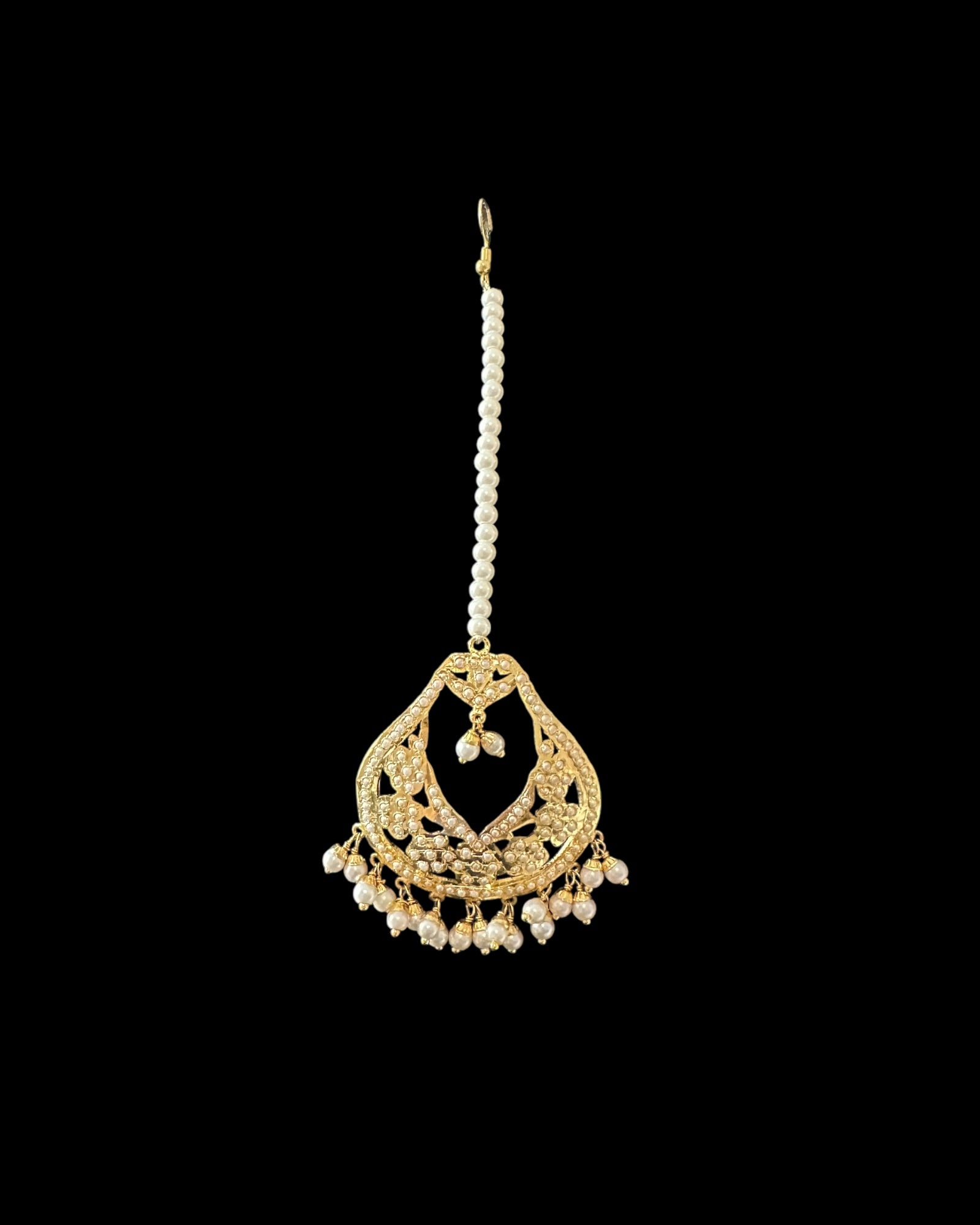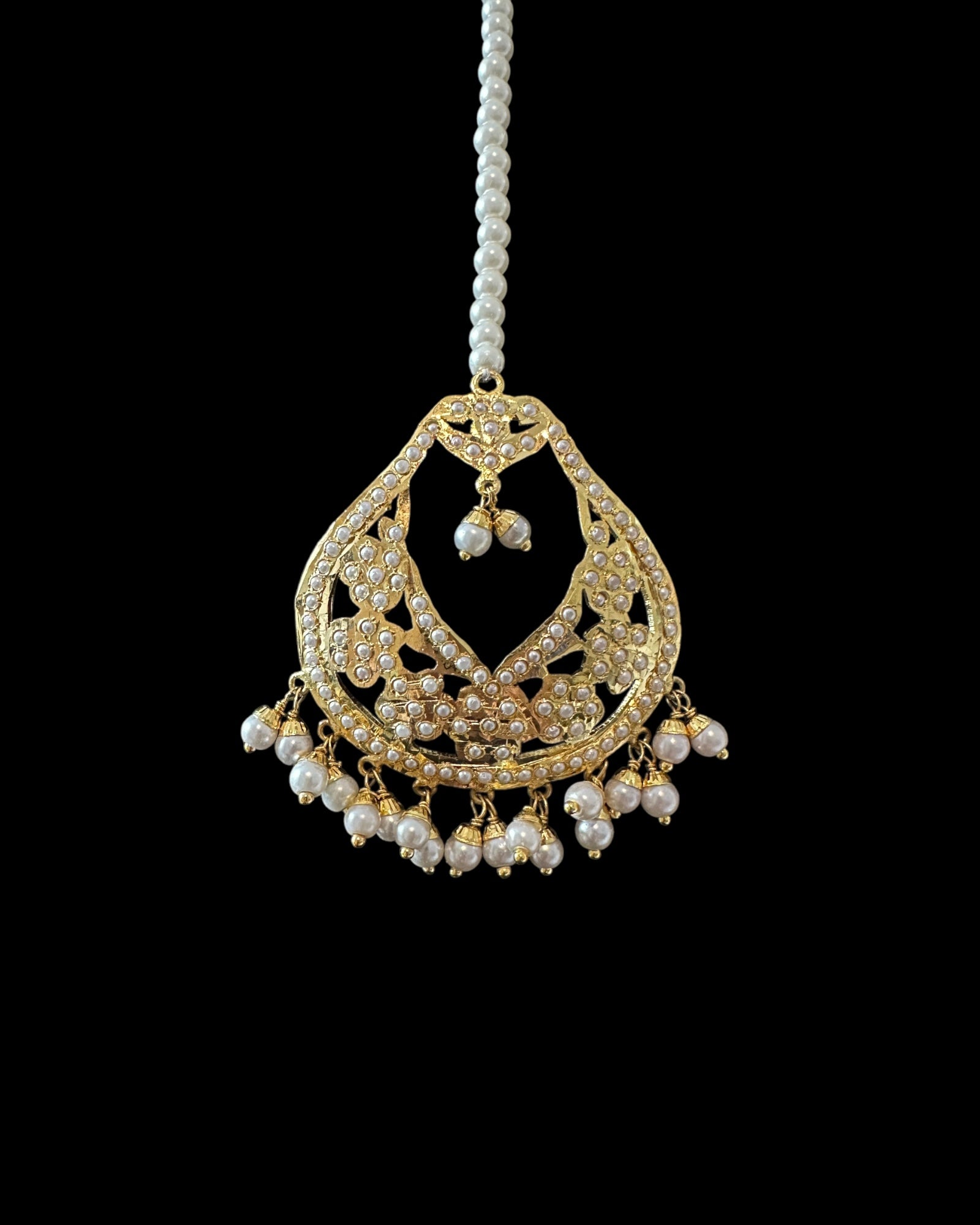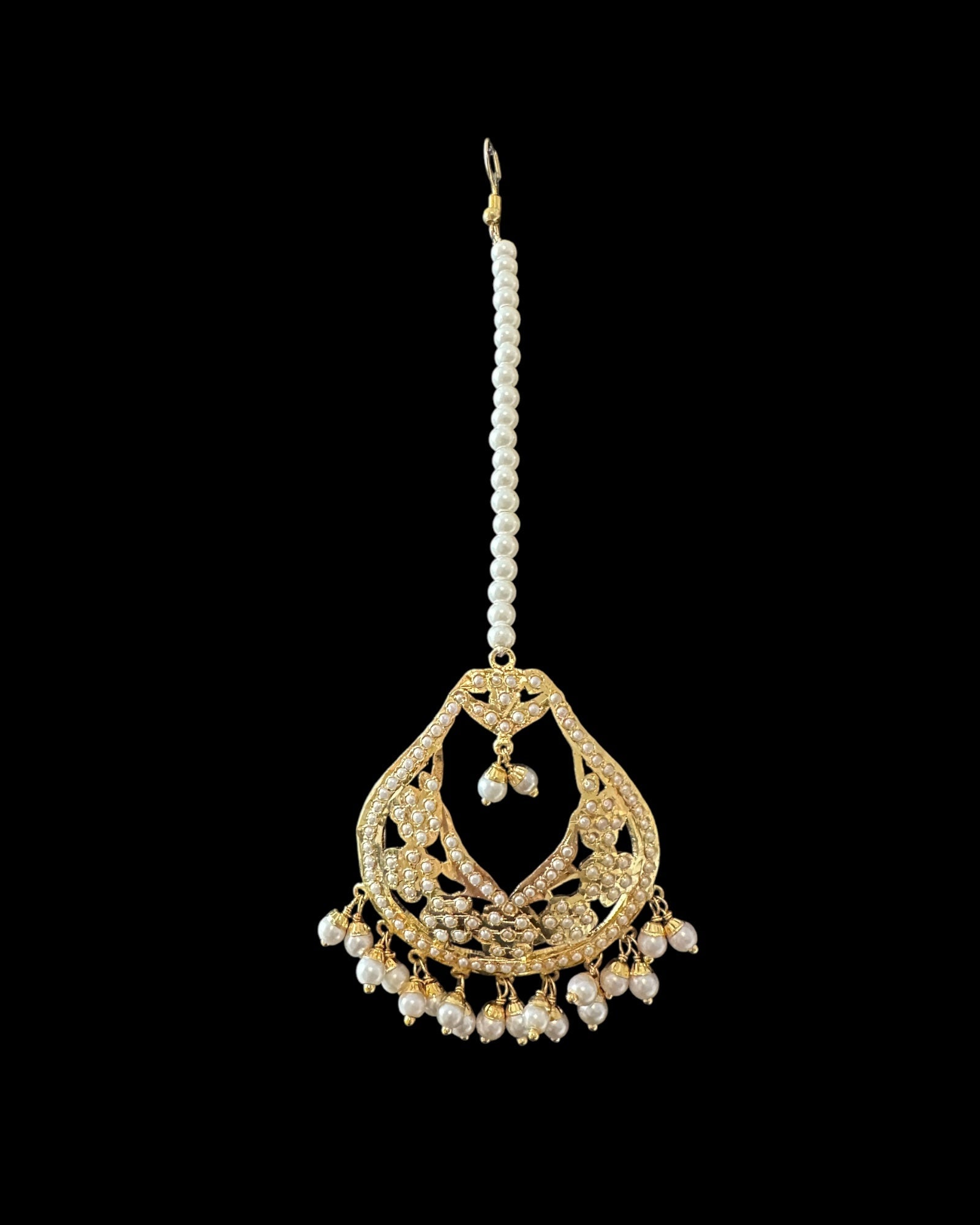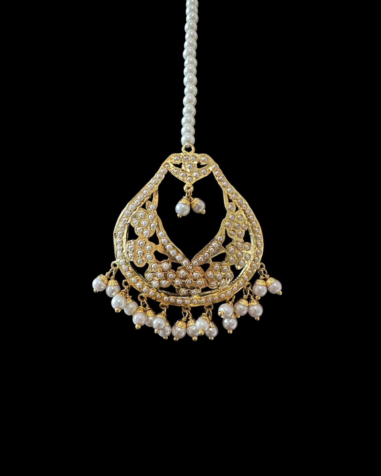 DJET77 Jadau chandbali earrings tika in pearls ( READY TO SHIP )