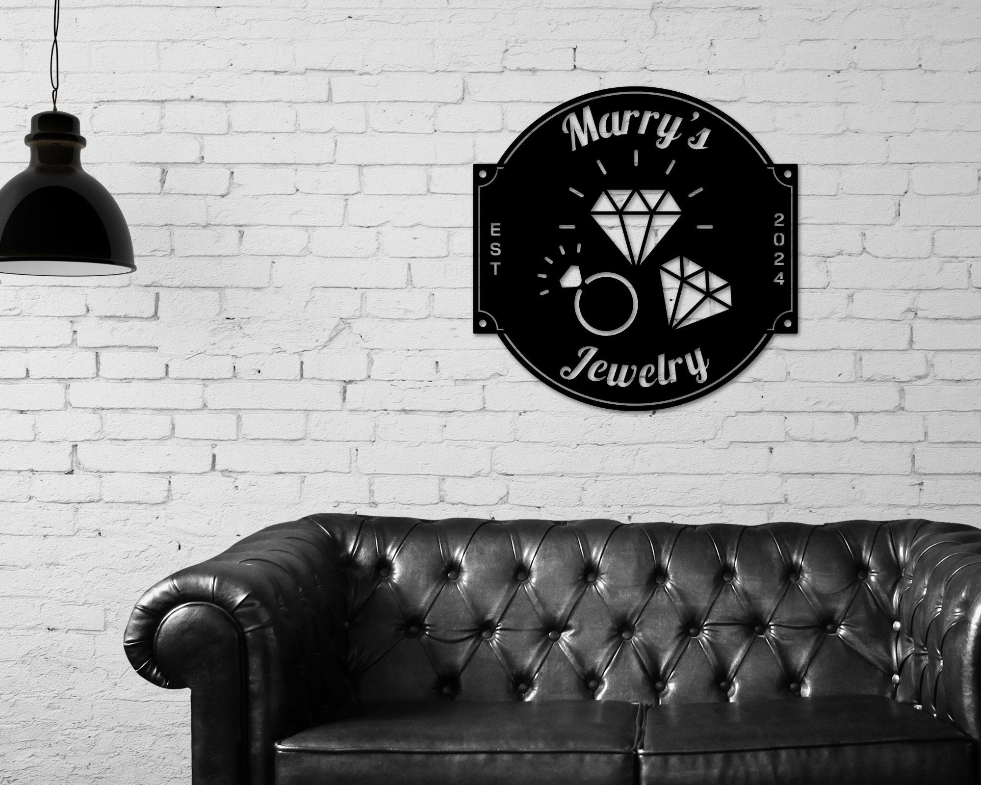 Jewelry Shop Sign, Personalized Jeweler Sign, Gift for Jeweler, Jewelry Shop Decor, Jewelry Business Sign, Personalized Jewelry Metal Sign ‐ Black / 12 inches