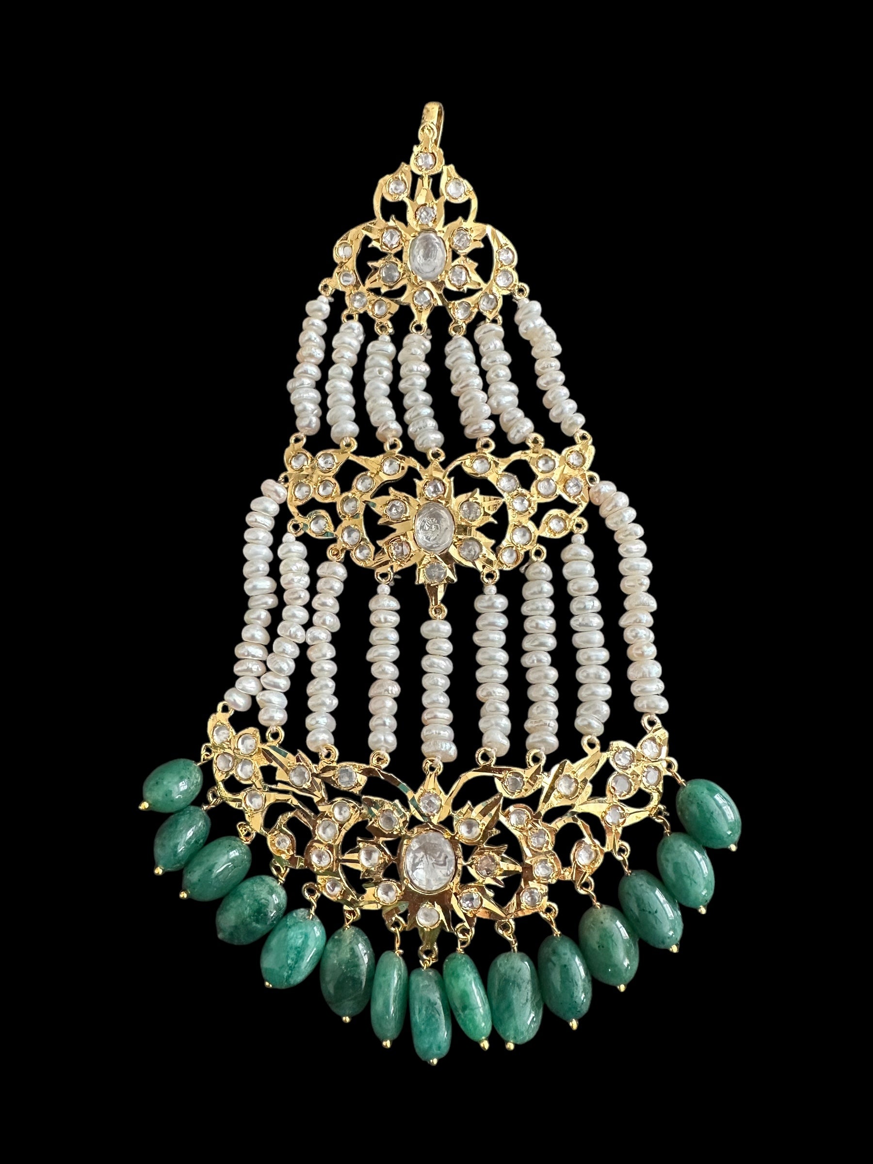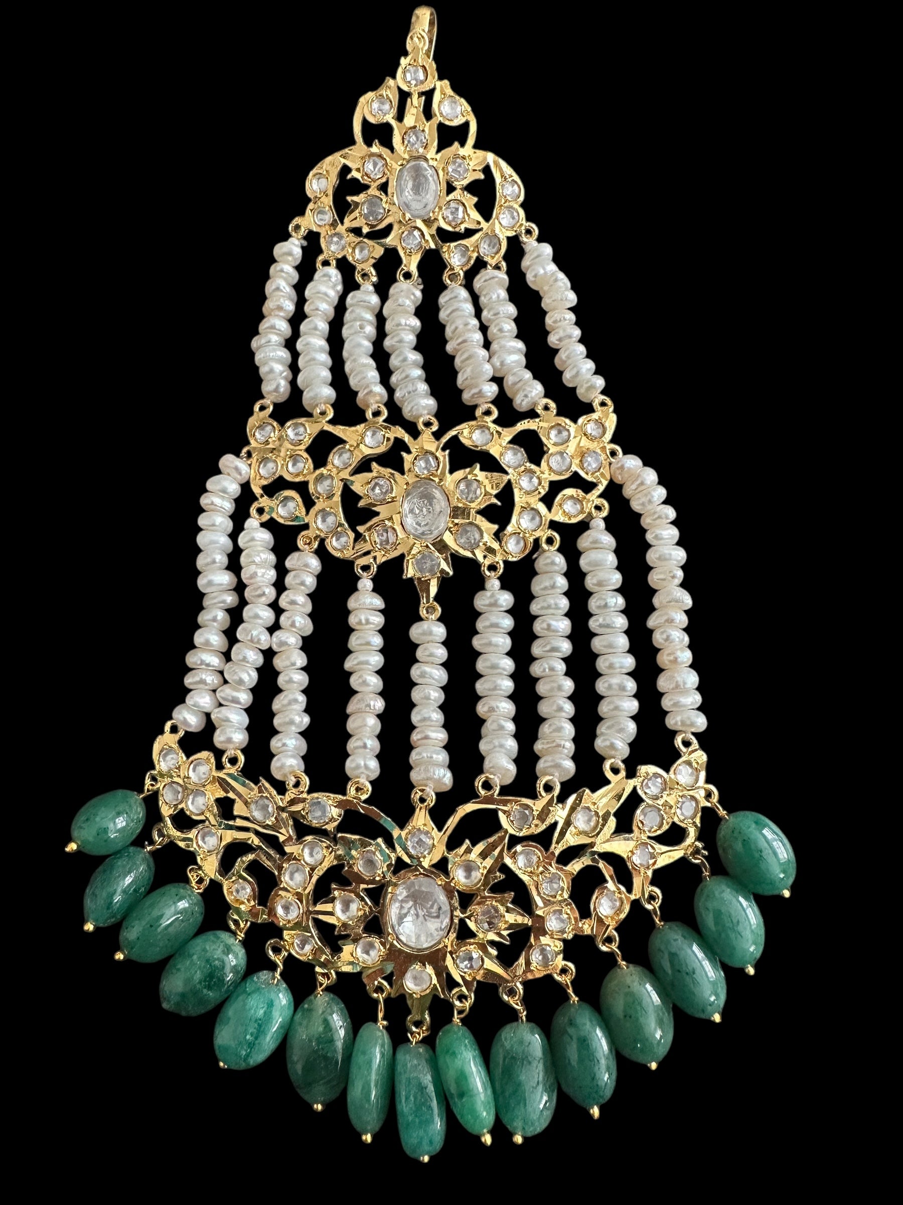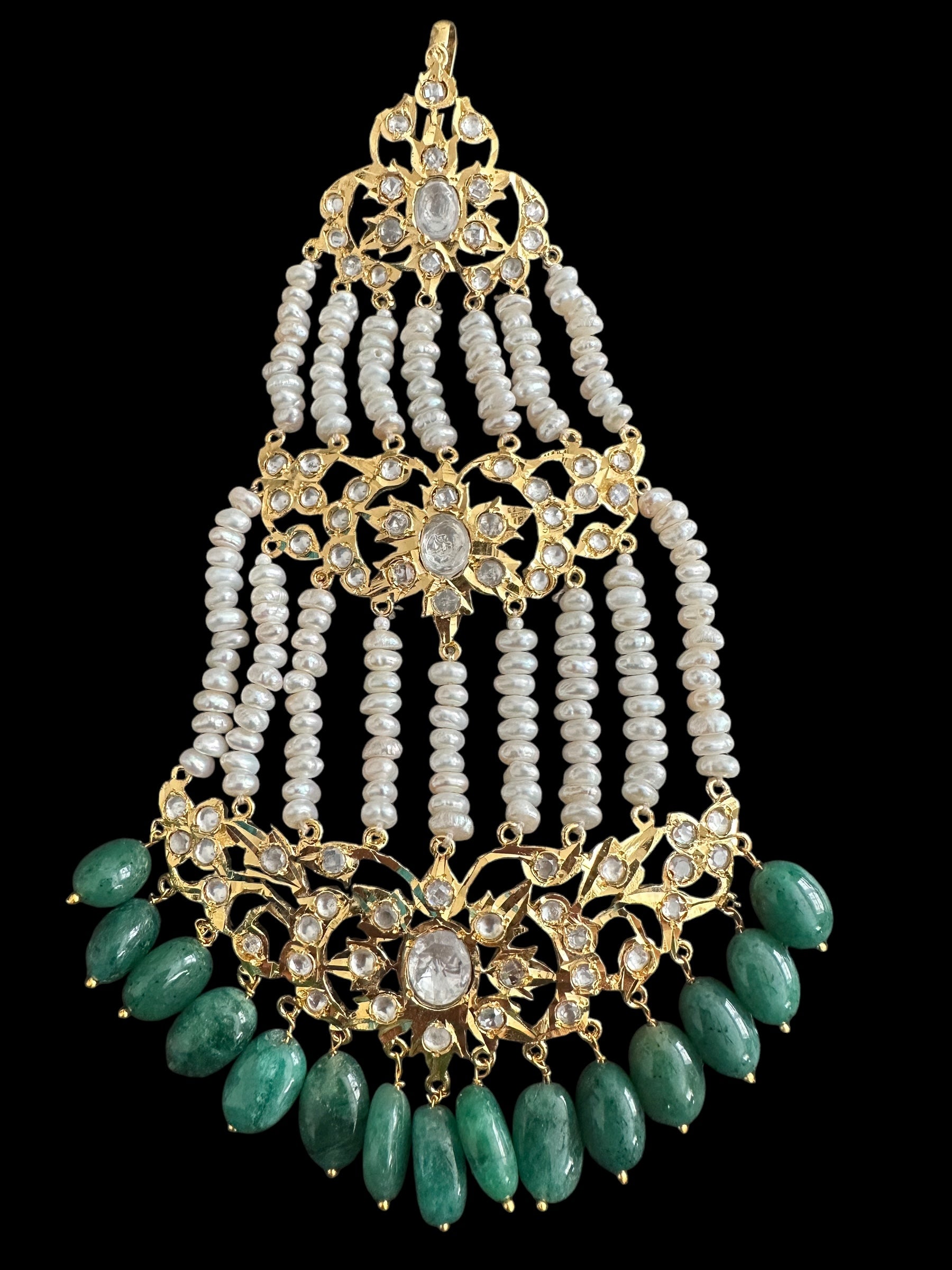 JTK19 Insha hyderabadi jhoomar tika in emeralds and fresh water pearls ( SHIPS IN 2 WEEKS )