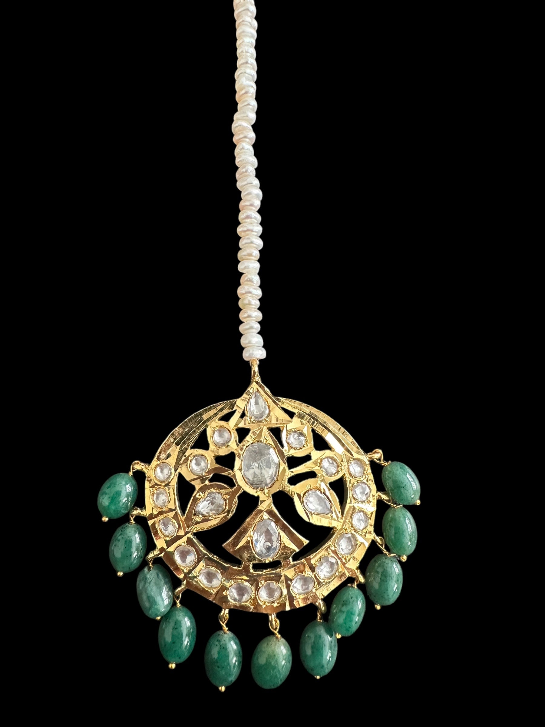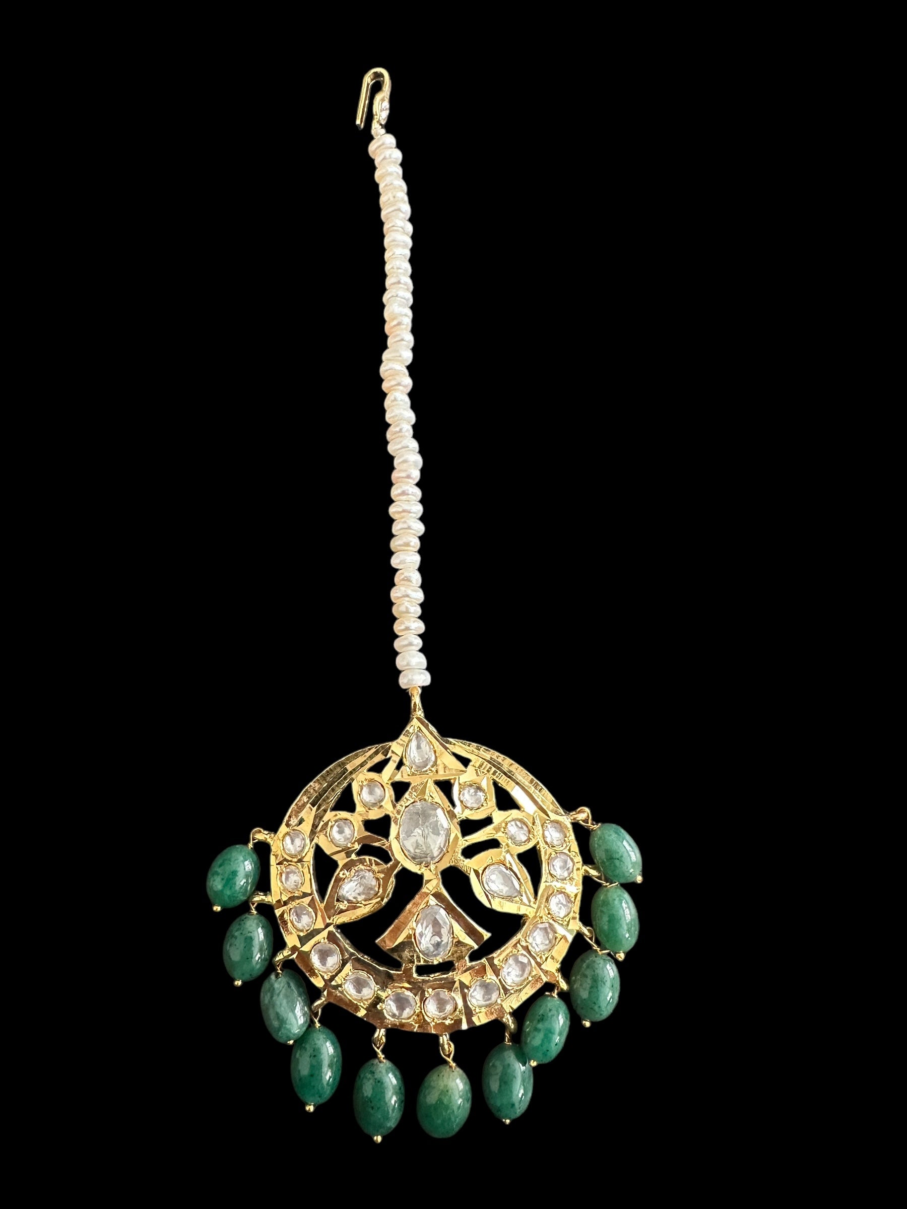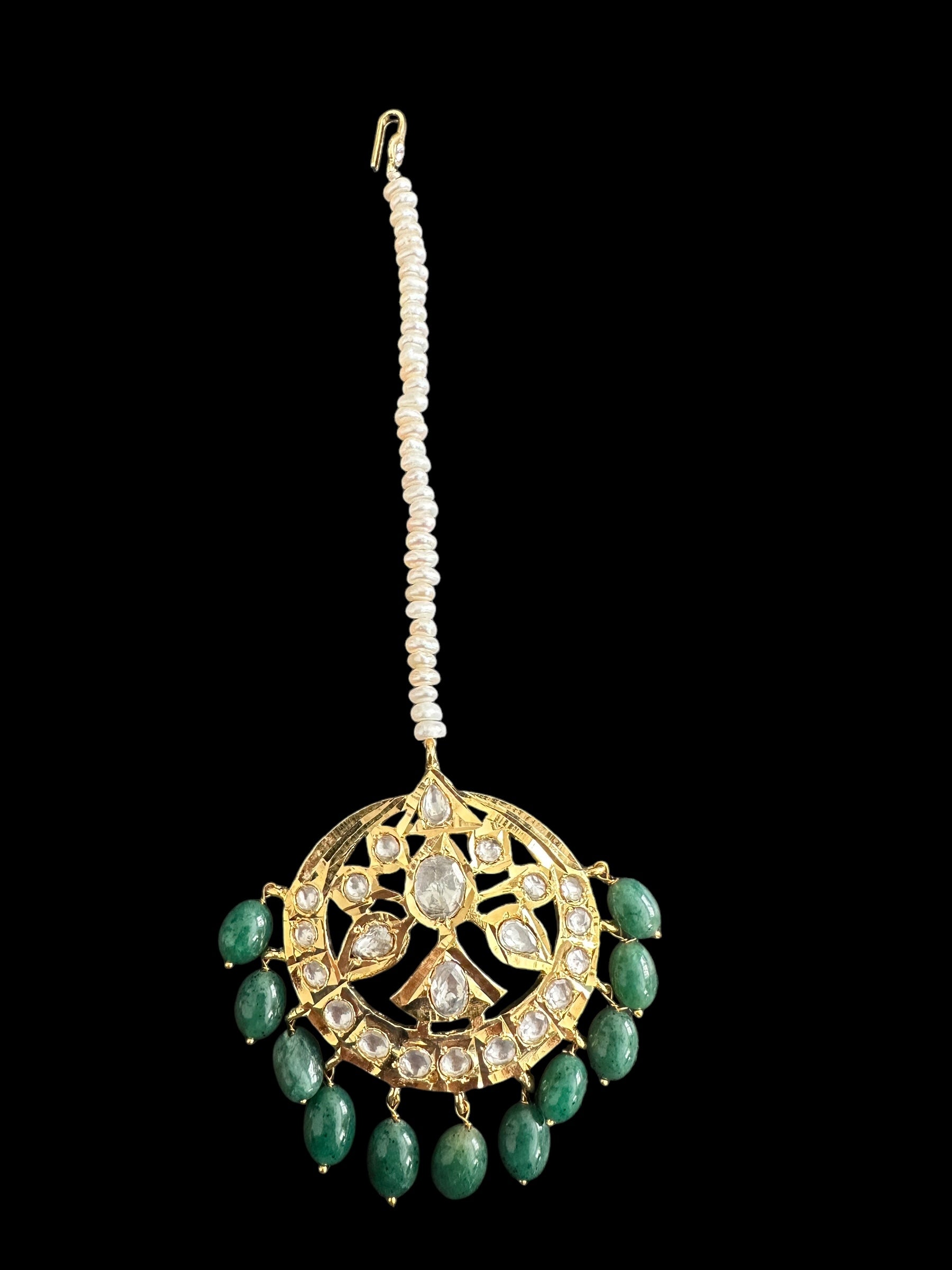 JTK19 Insha hyderabadi jhoomar tika in emeralds and fresh water pearls ( SHIPS IN 2 WEEKS )