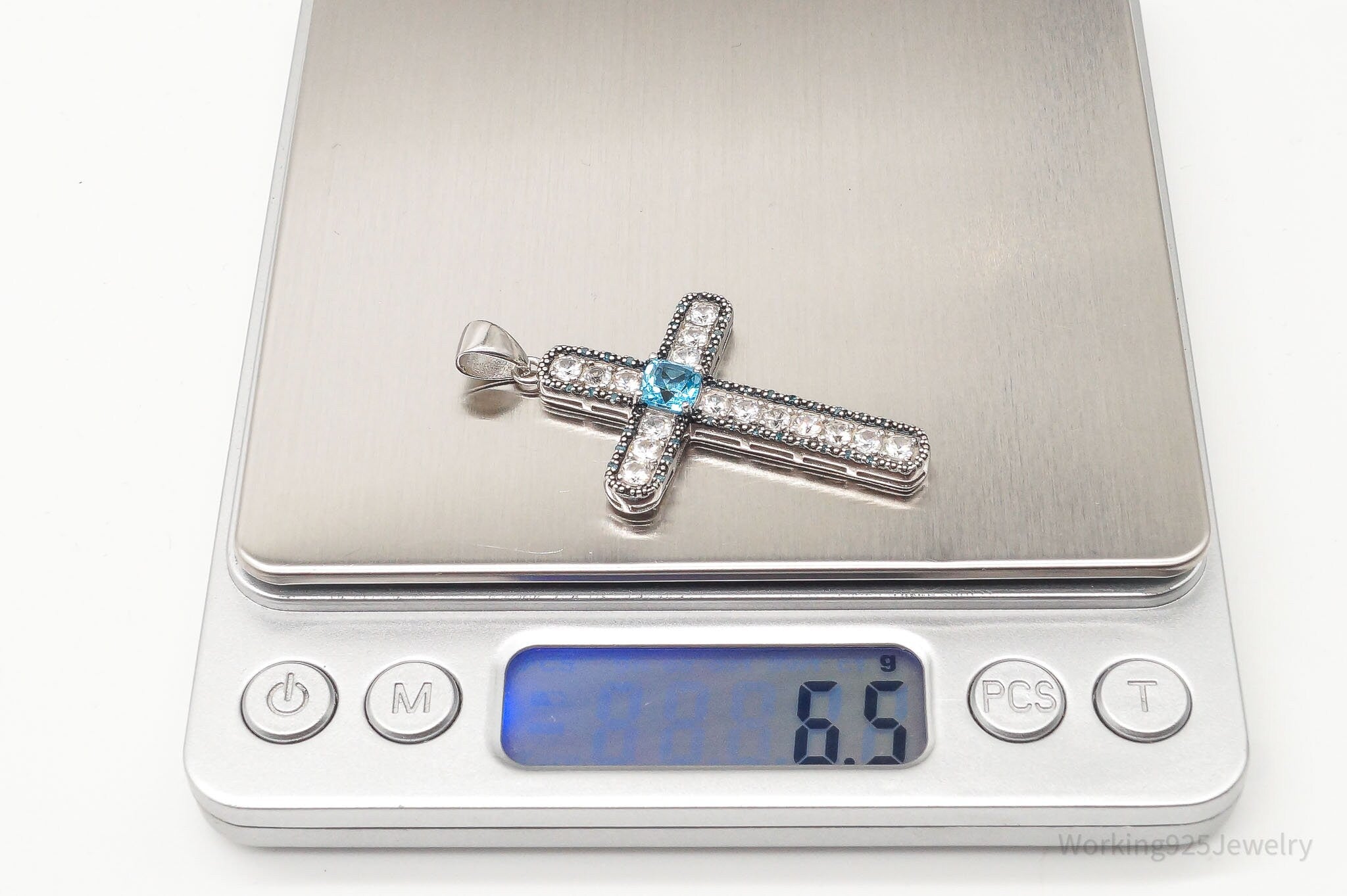 Large Designer Blue Topaz Cubic Zirconia Blue Diamond Sterling Silver Pendant