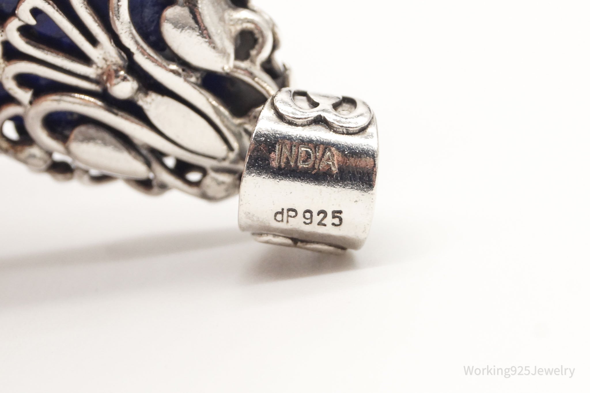 Large India Designer Doug Paulus Lapis Lazuli Ornate Sterling Silver Pendant