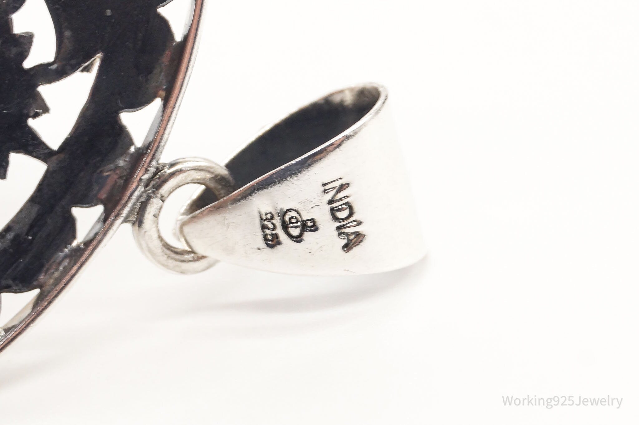 Large India Designer Doug Paulus Ornate Flower Sterling Silver Pendant