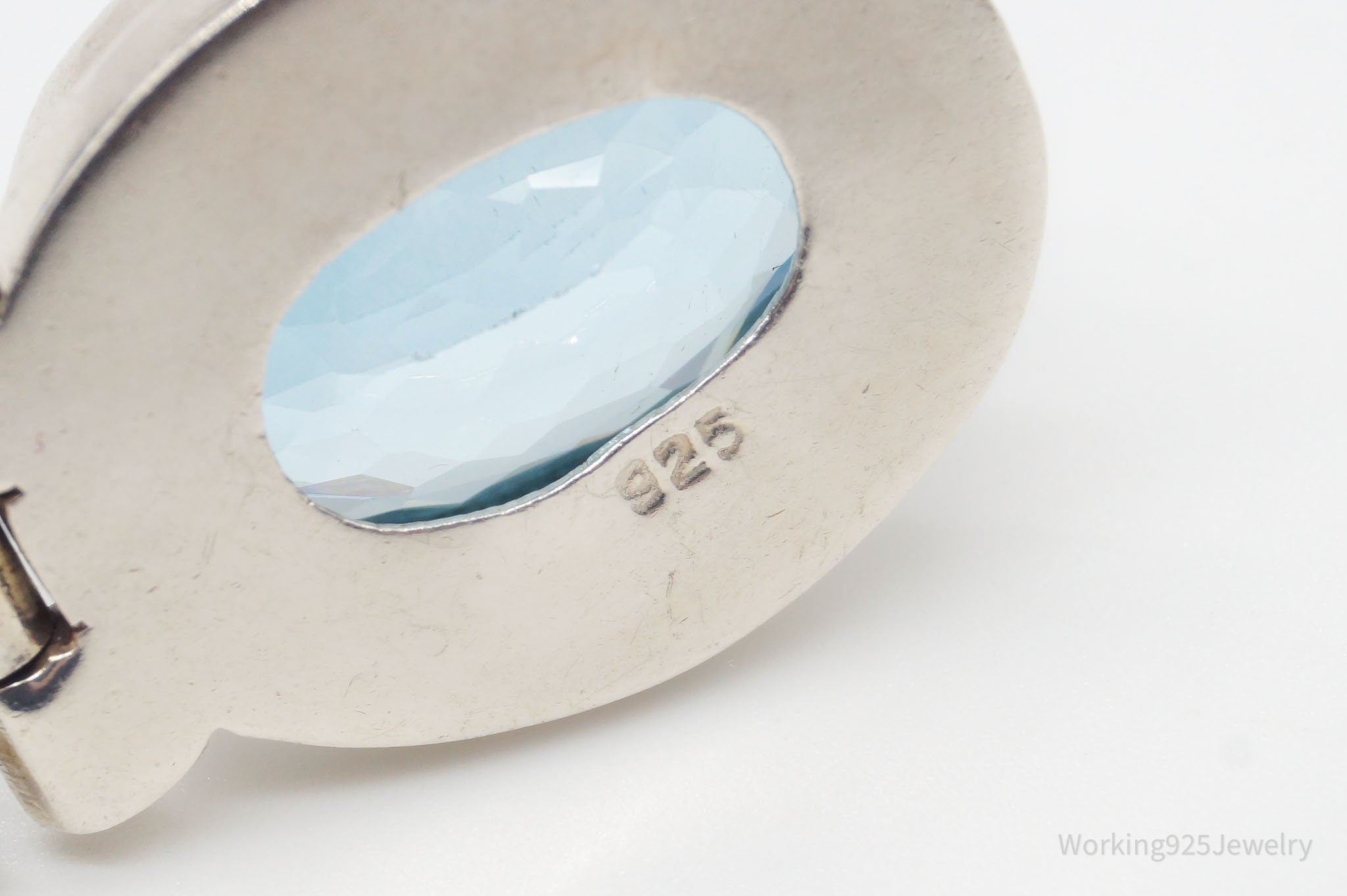 Large Vintage Blue Topaz Sterling Silver Necklace Pendant
