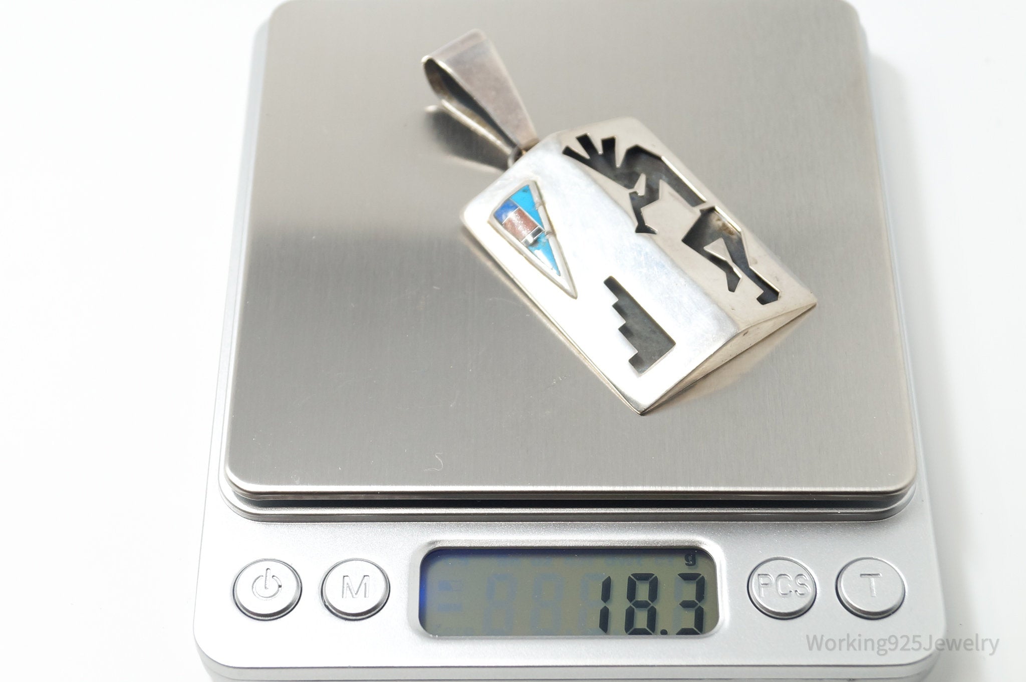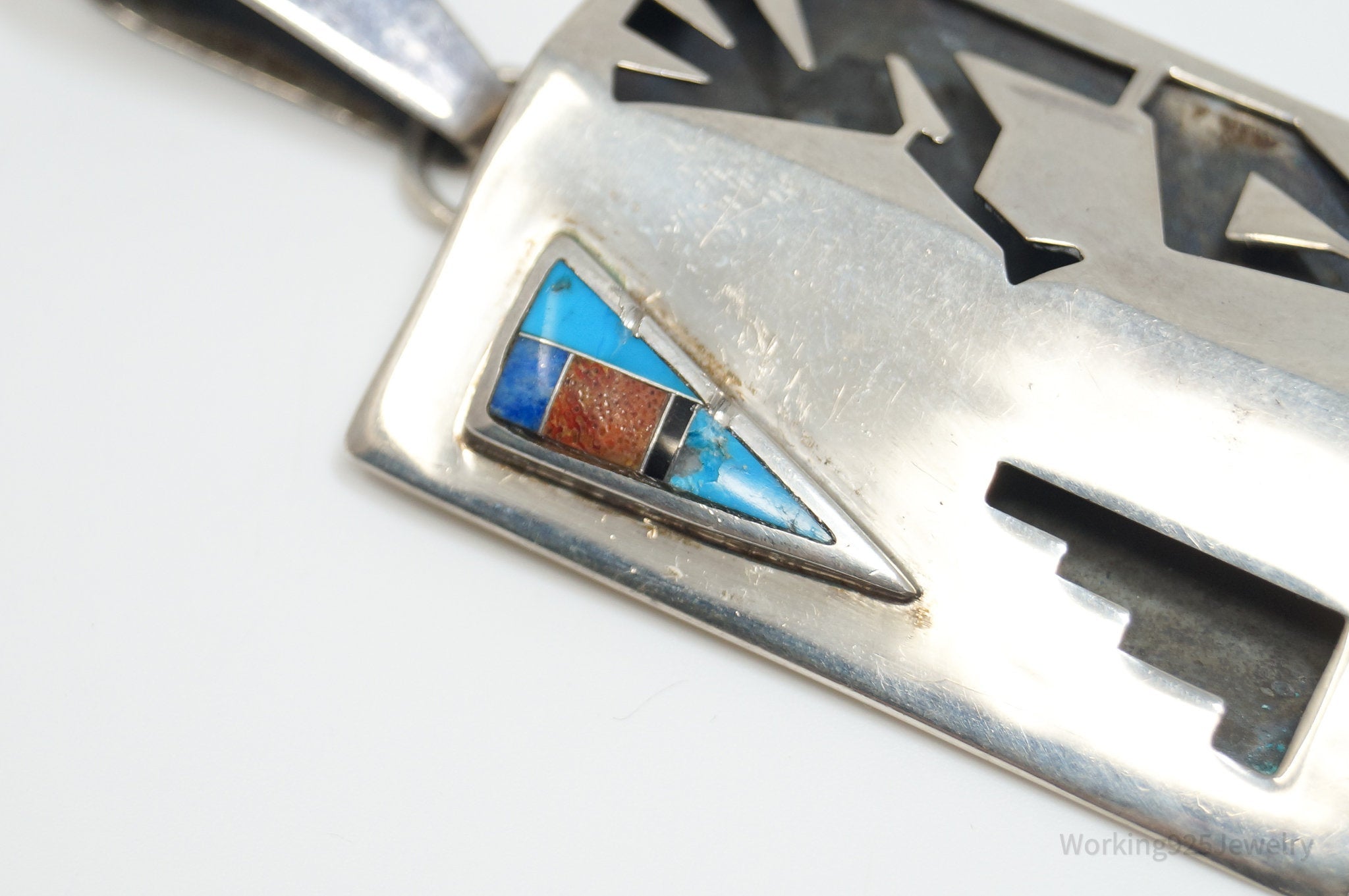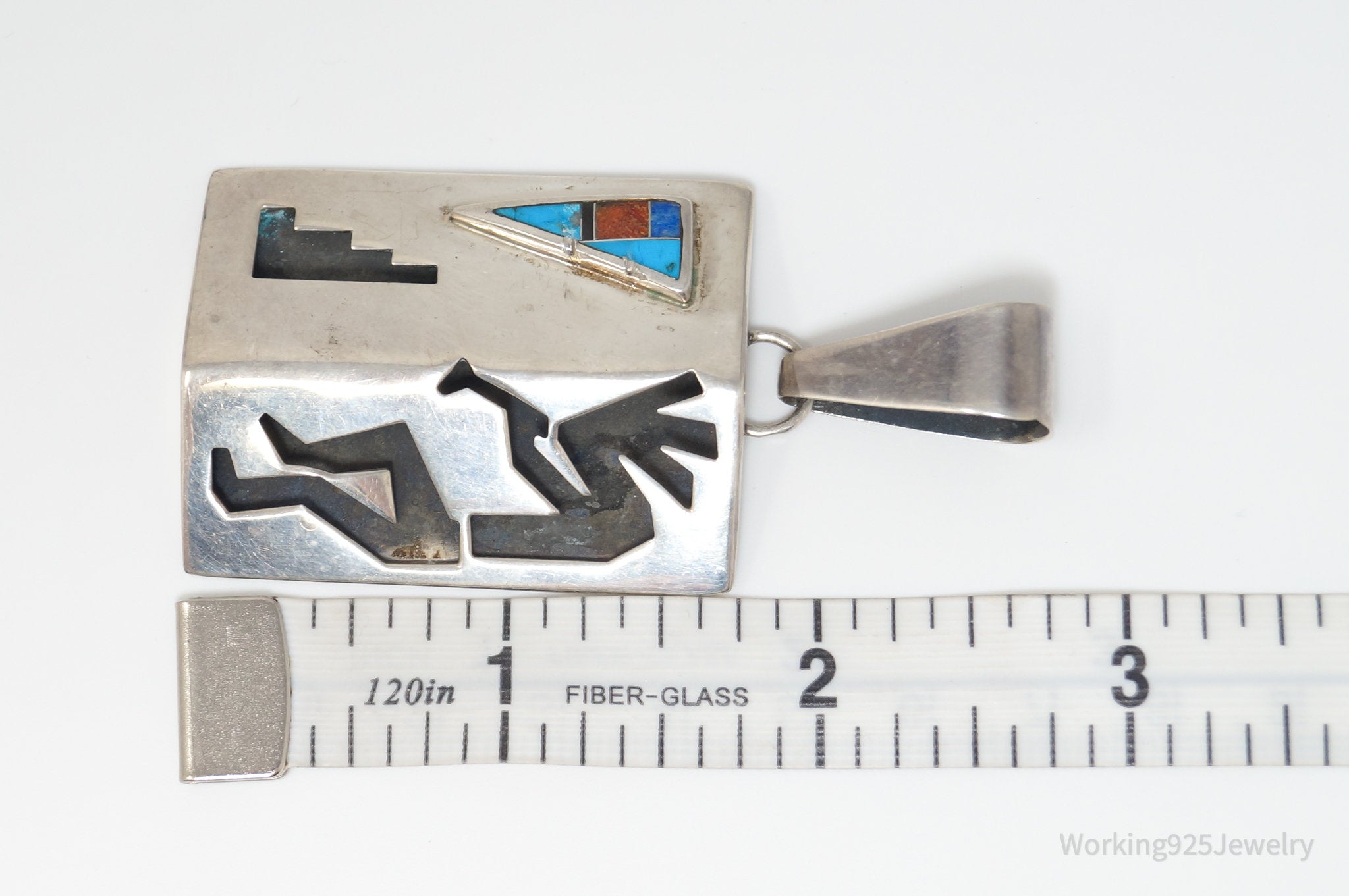 Large Vintage Native American R.C. Multi Gem Kokopelli Sterling Silver Pendant