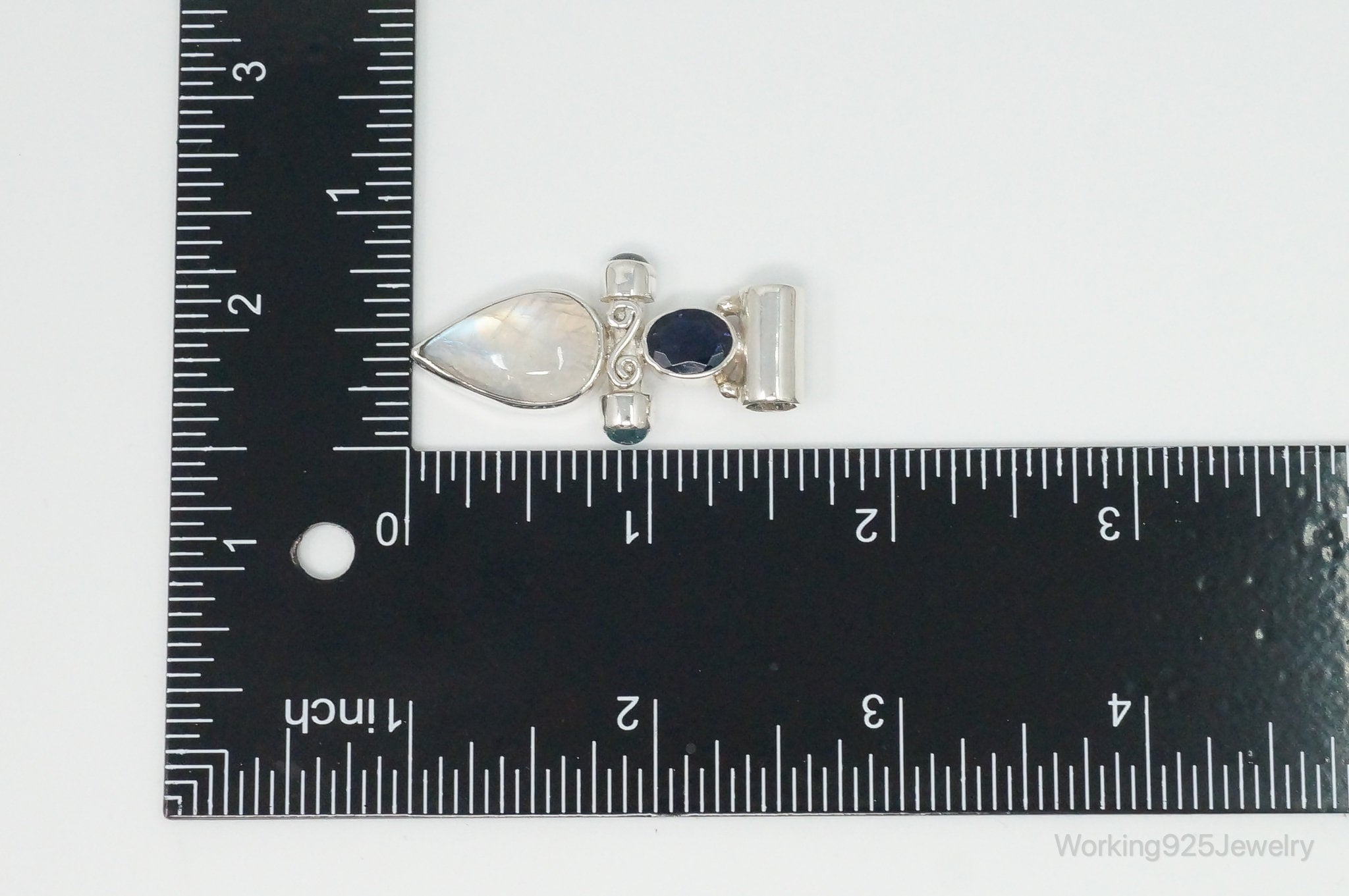 Large Vintage SJ Amethyst Blue Topaz Moonstone Sterling Silver Pendant