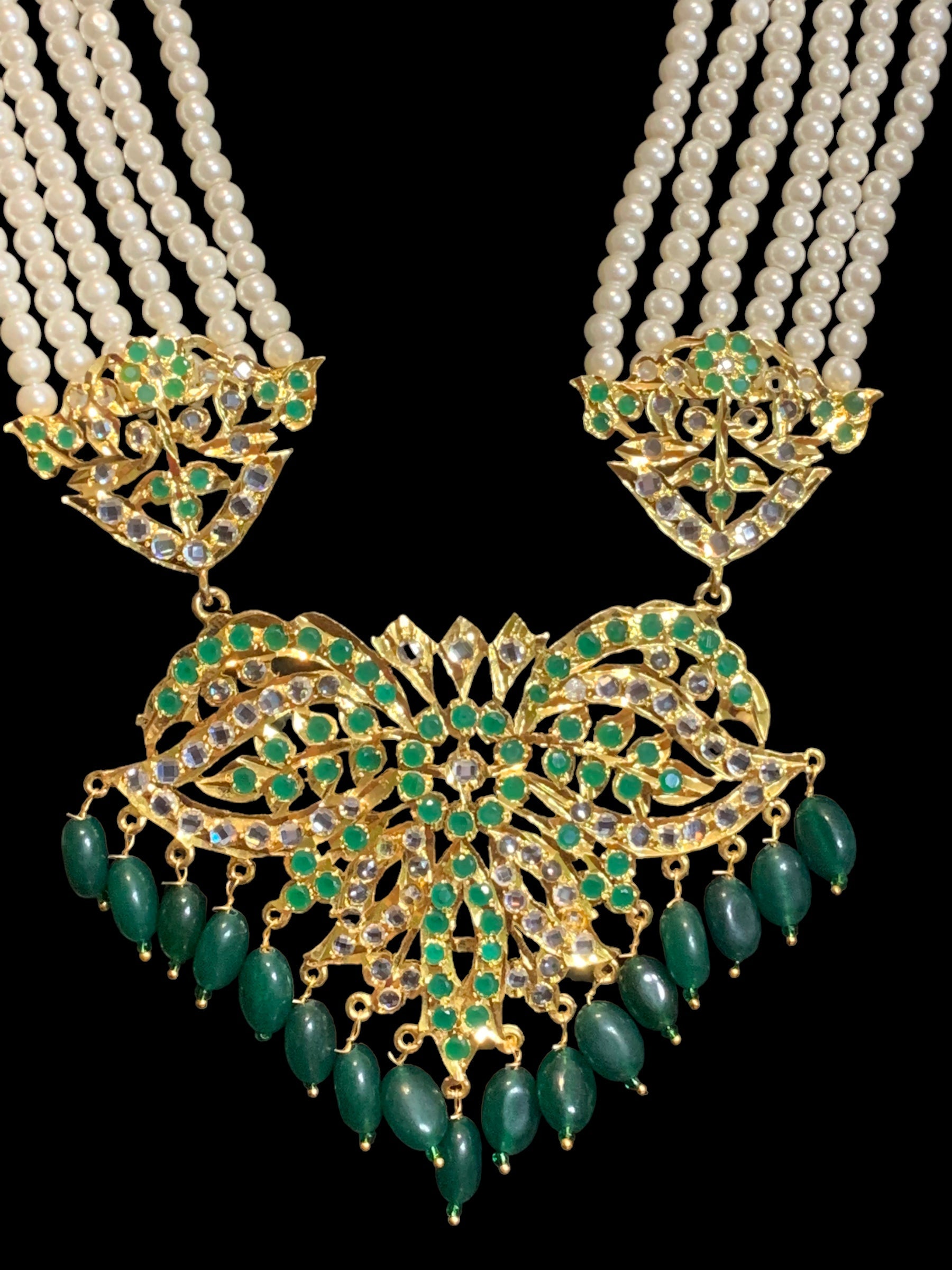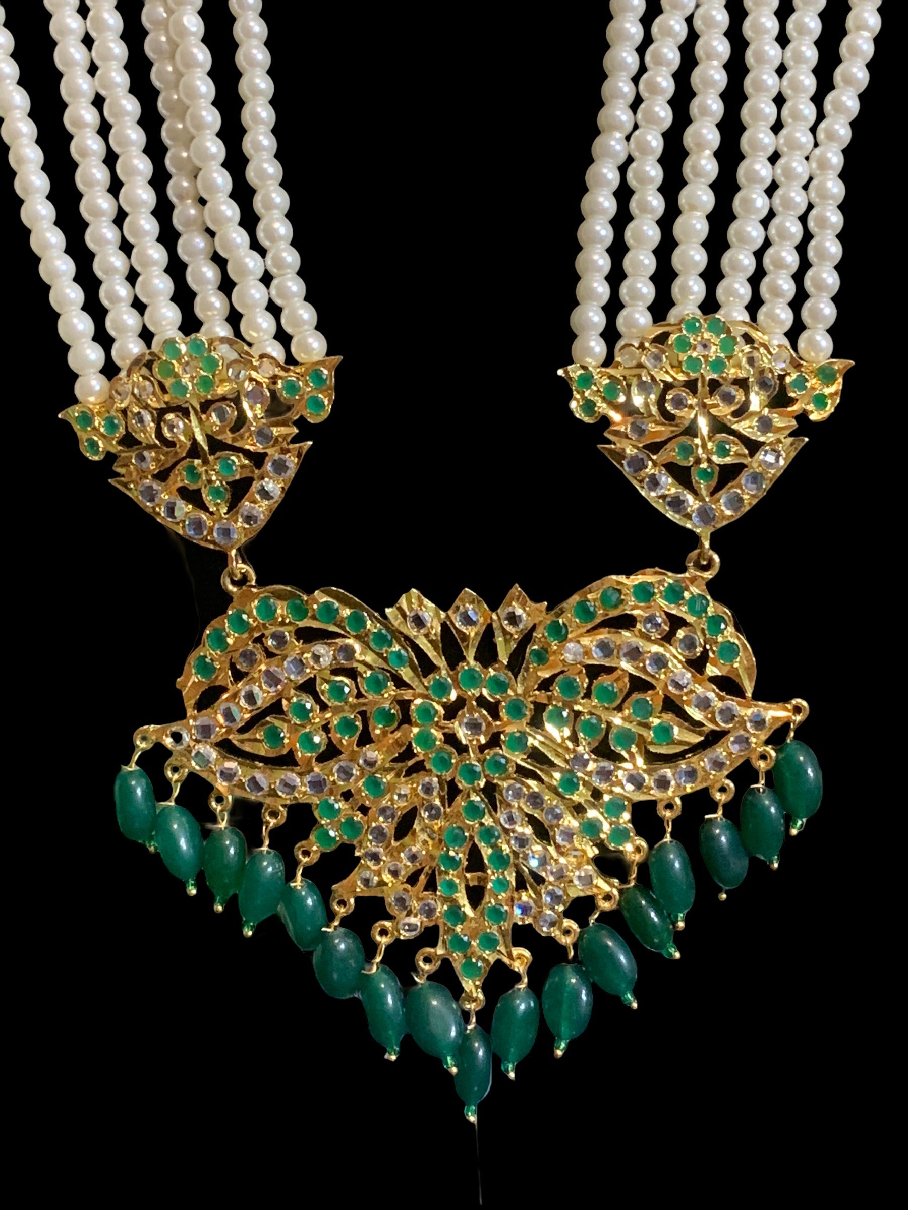 LN168 long Rani haar in pearls and green beads ( READY TO SHIP)