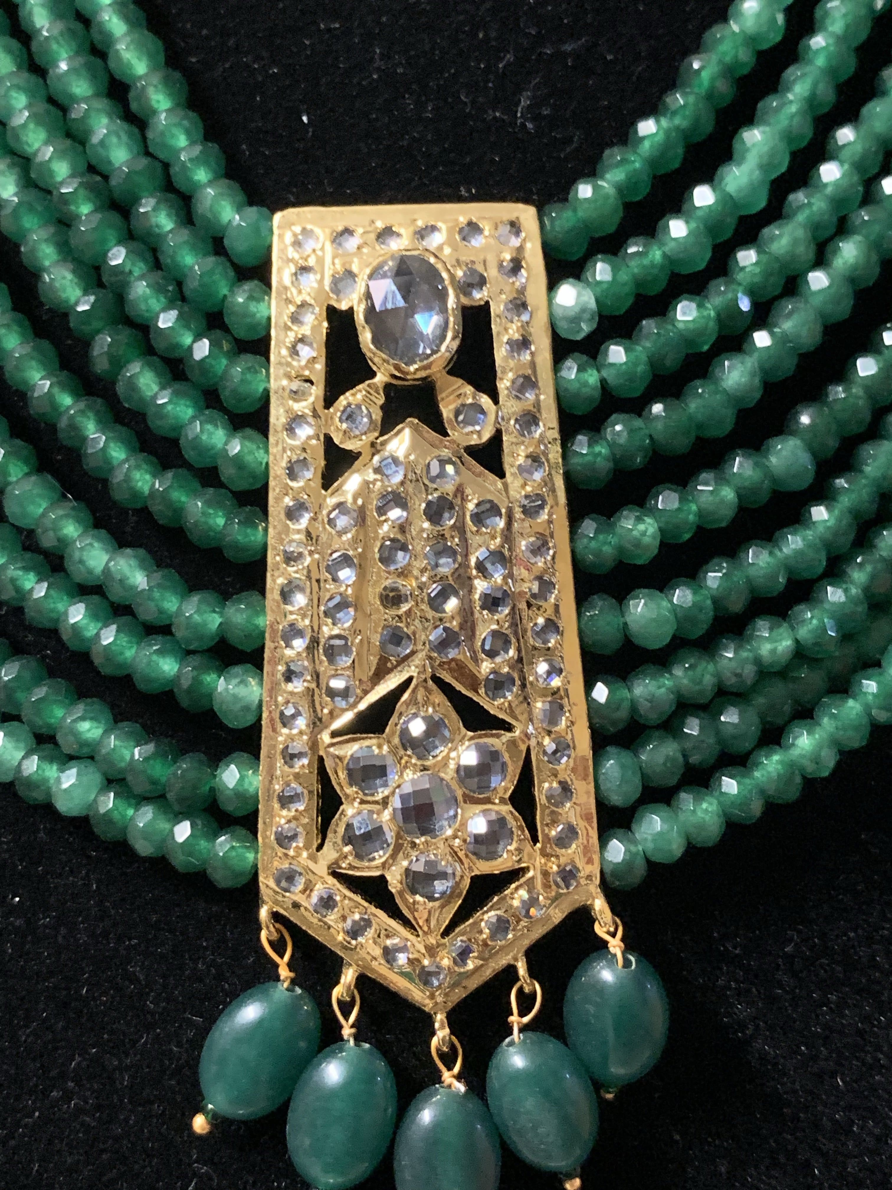 long necklace made using semi precious beads and cz polki .