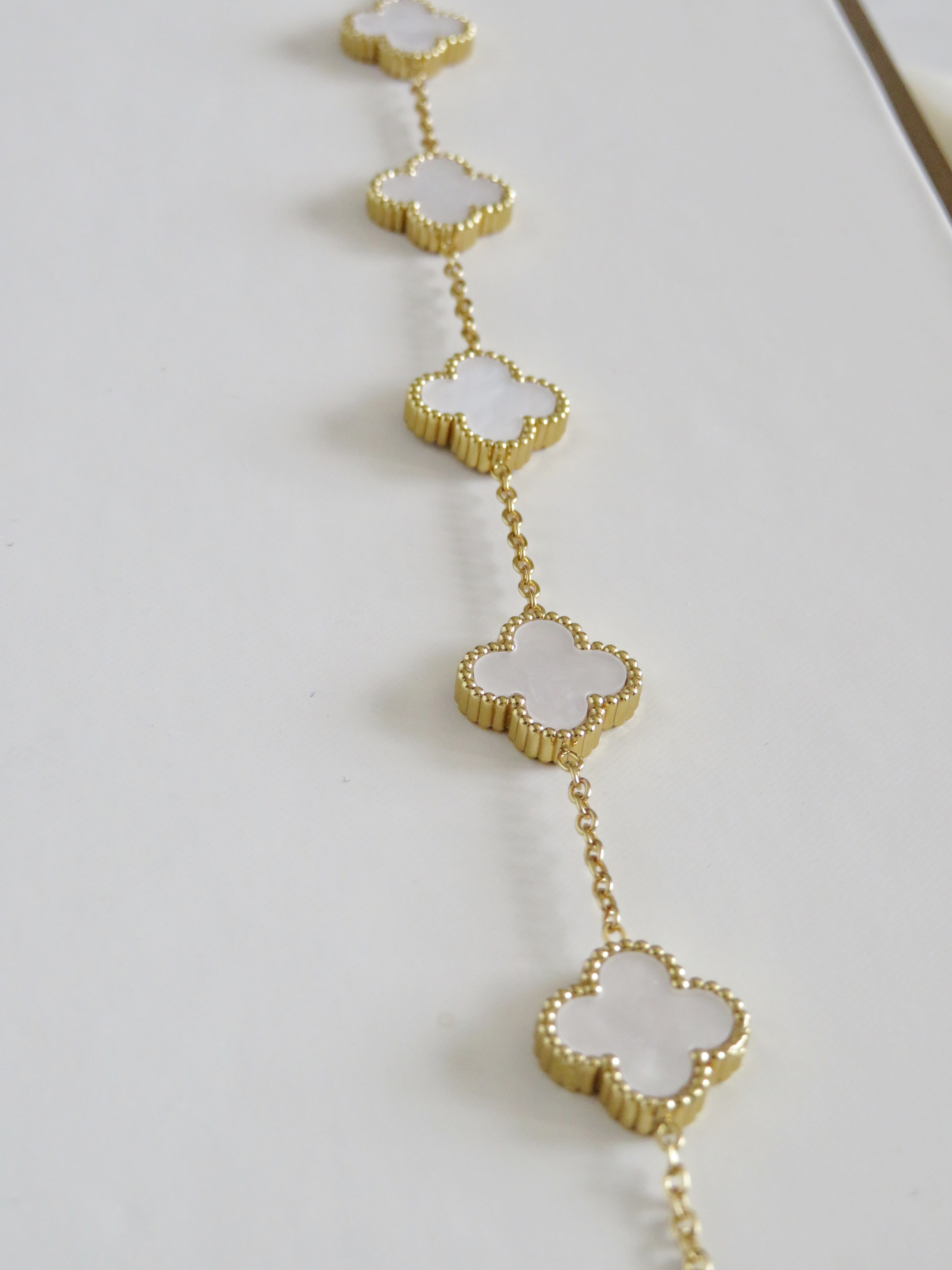 Luck Intention -Pearl Shell Clover Bracelet ‐ Pearl White