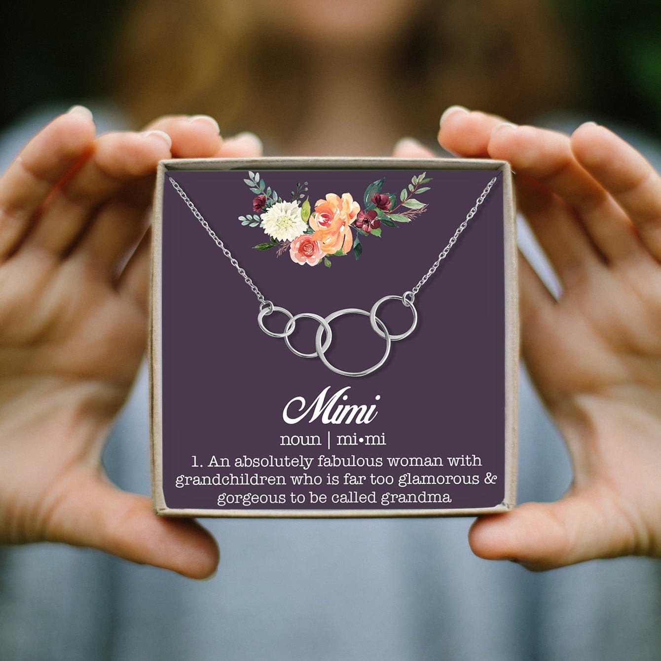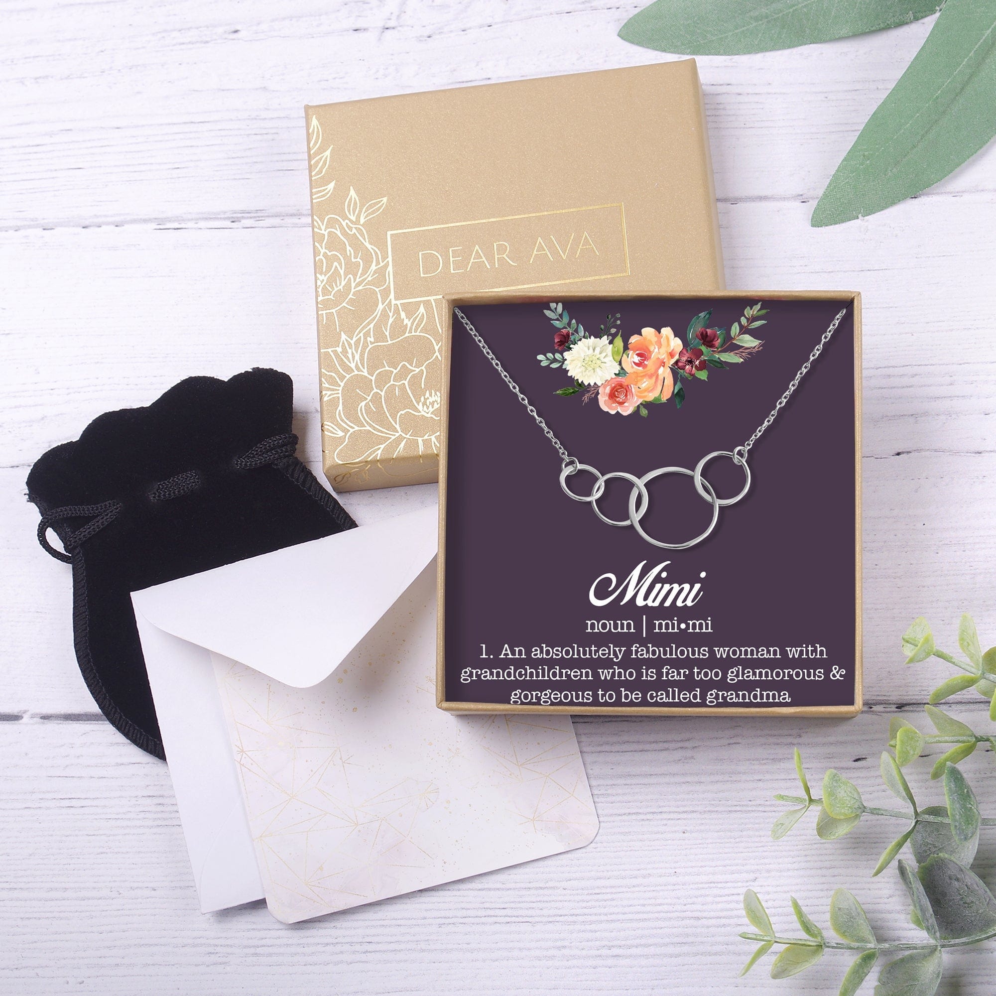 Show your love for Mimi with this beautiful asymmetrical circle design symbolizing the connection between generations. The elegant piece is designed to sparkle and make Mimi feel like the queen she really is.