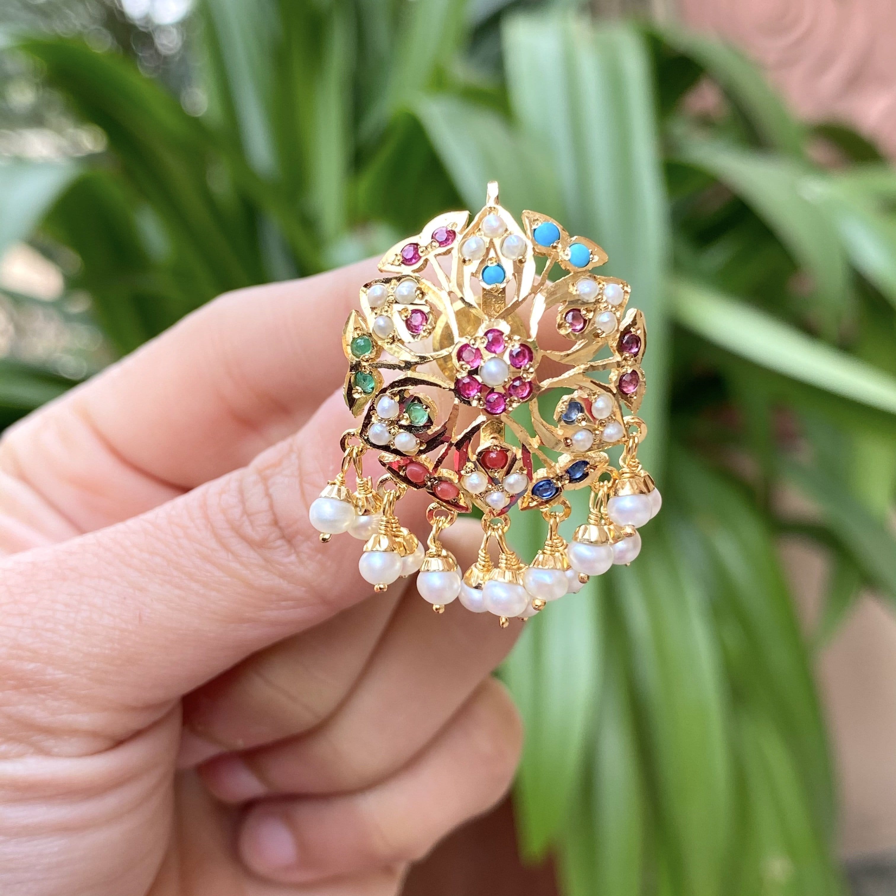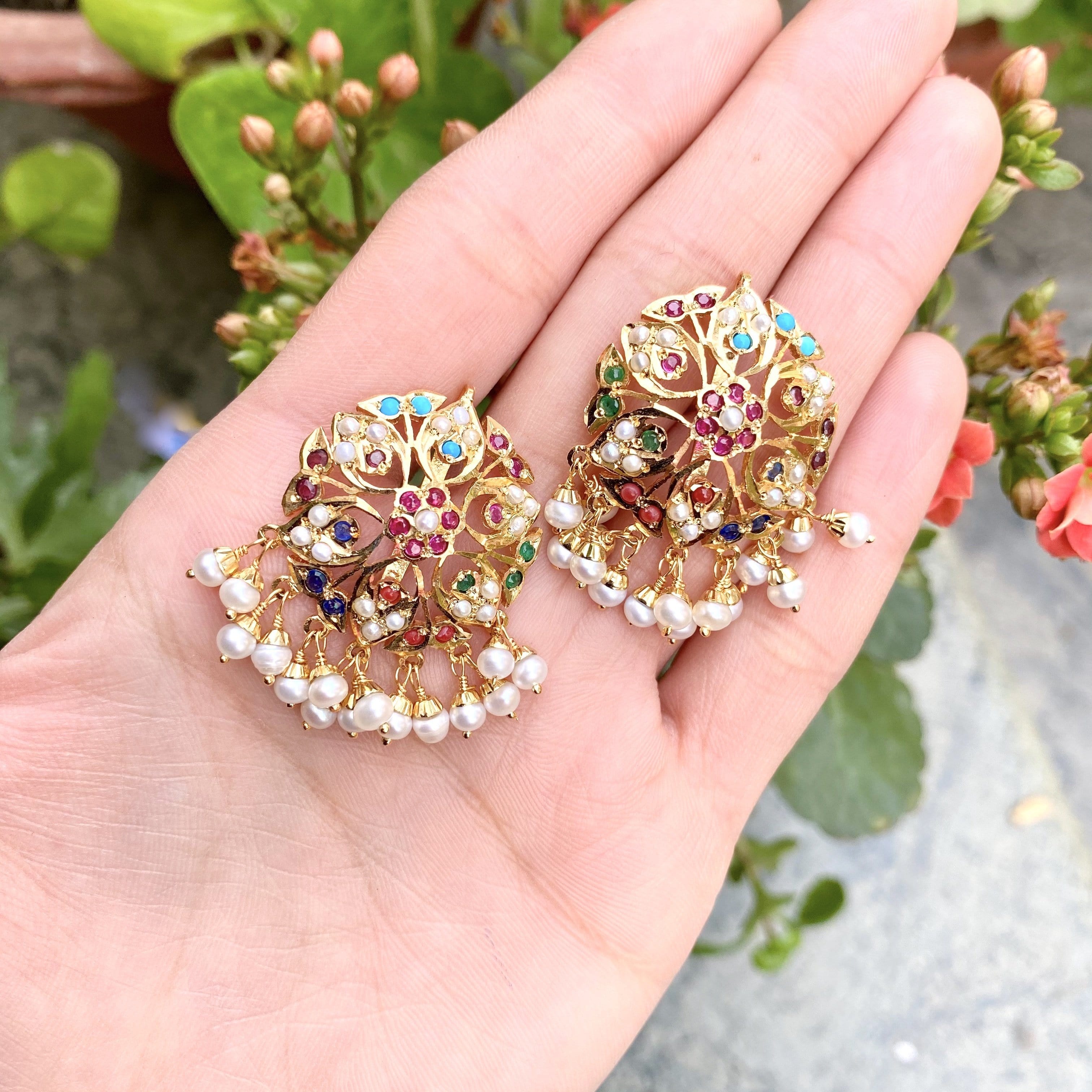 Setting stones: Real freshwater pearls,mix of navrattan stones