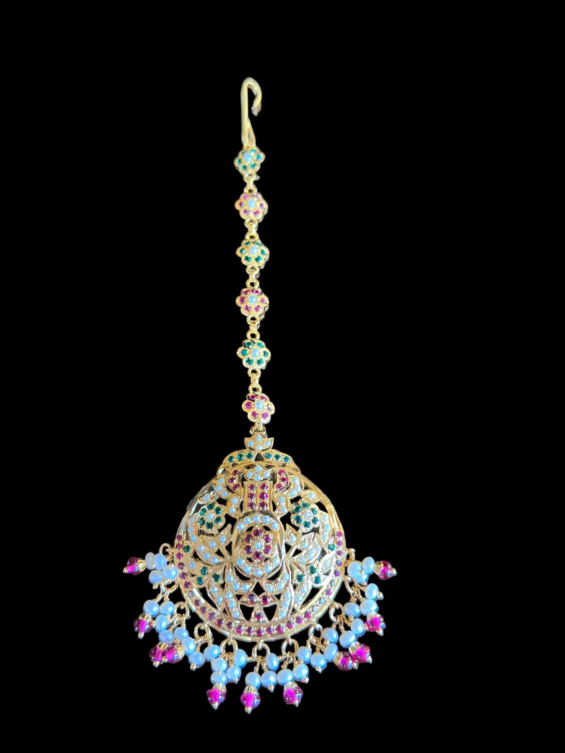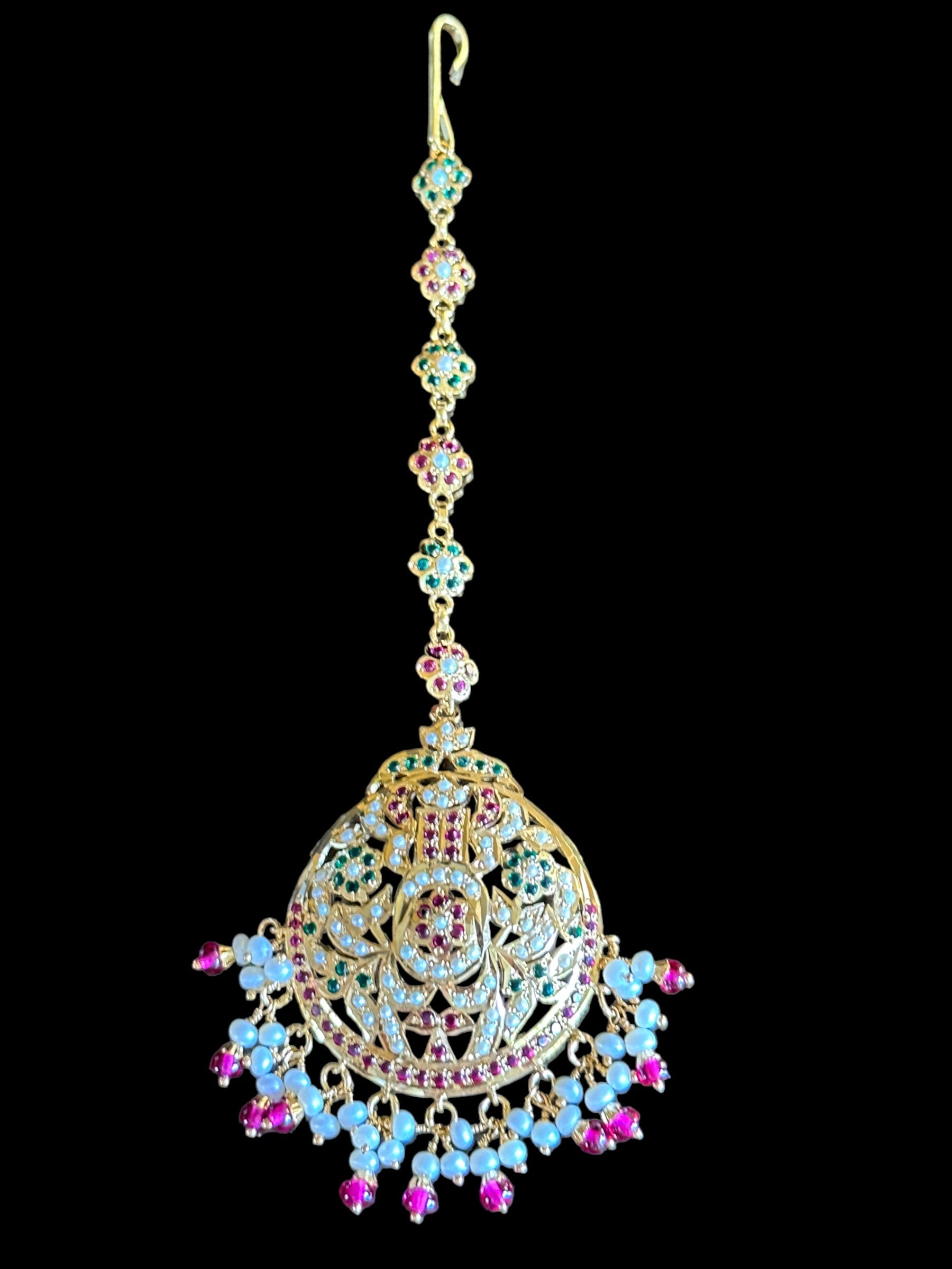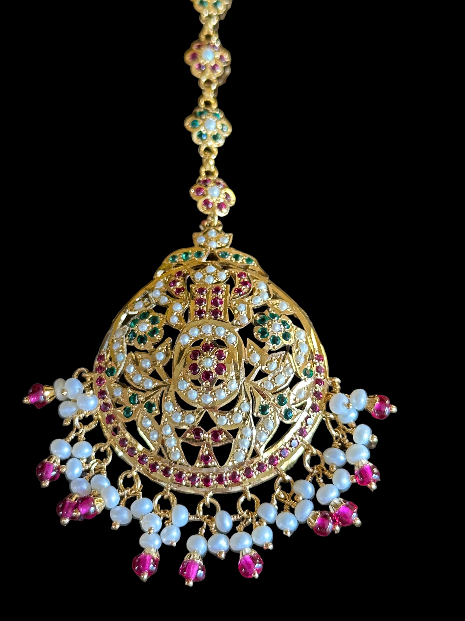 Ruby emerald with pearl tika in gold plated silver ( SHIPS IN 4 WEEKS )