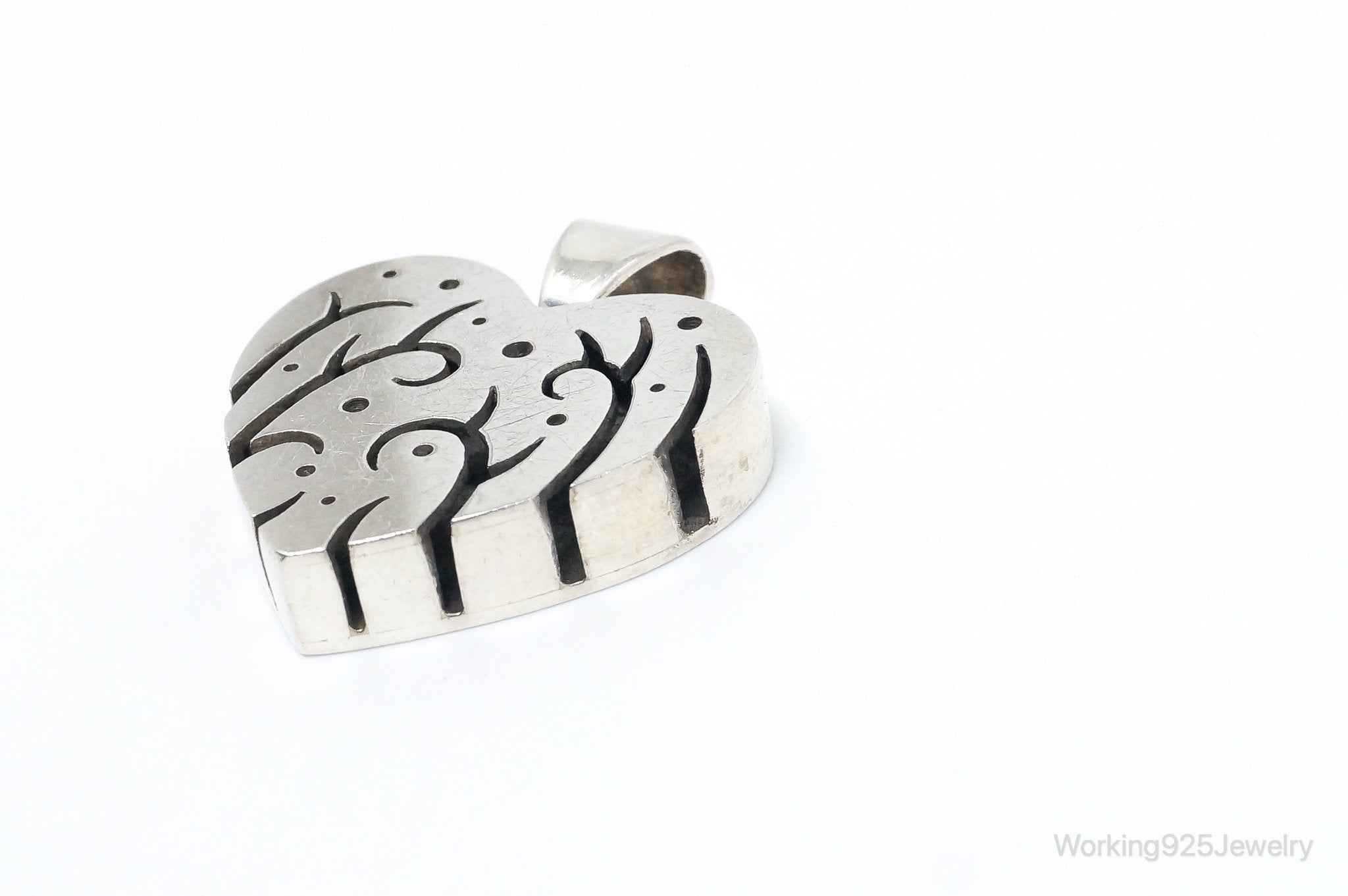 Vintage Designer Heart Trees & Stars Sterling Silver Pendant