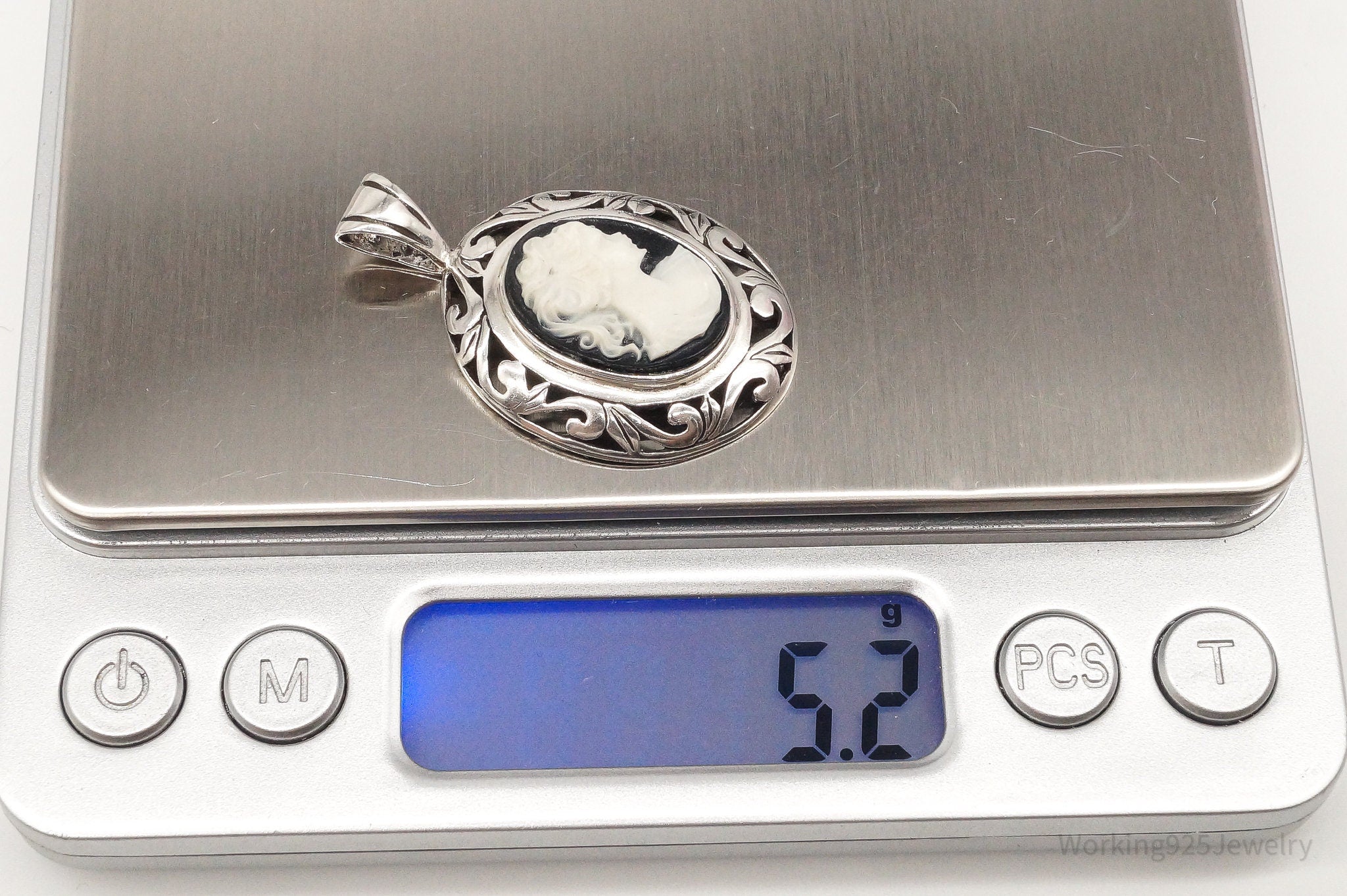 Vintage Designer Jezlaine Carved Cameo Woman Sterling Silver Pendant