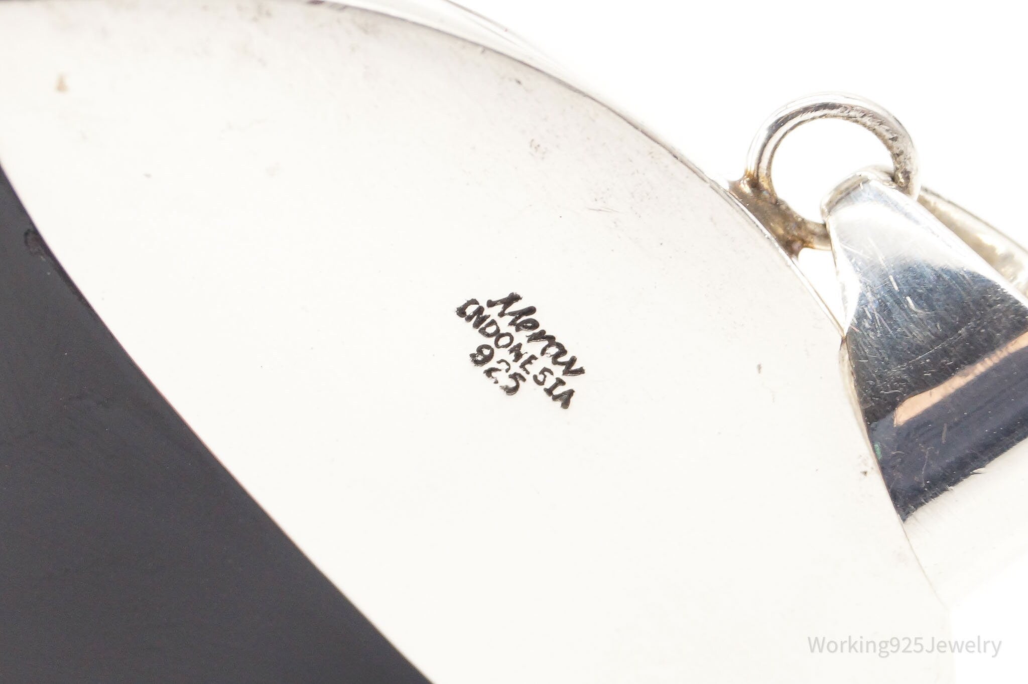 Vintage Designer Merav Large Abalone Shell Pearl Sterling Silver Pendant