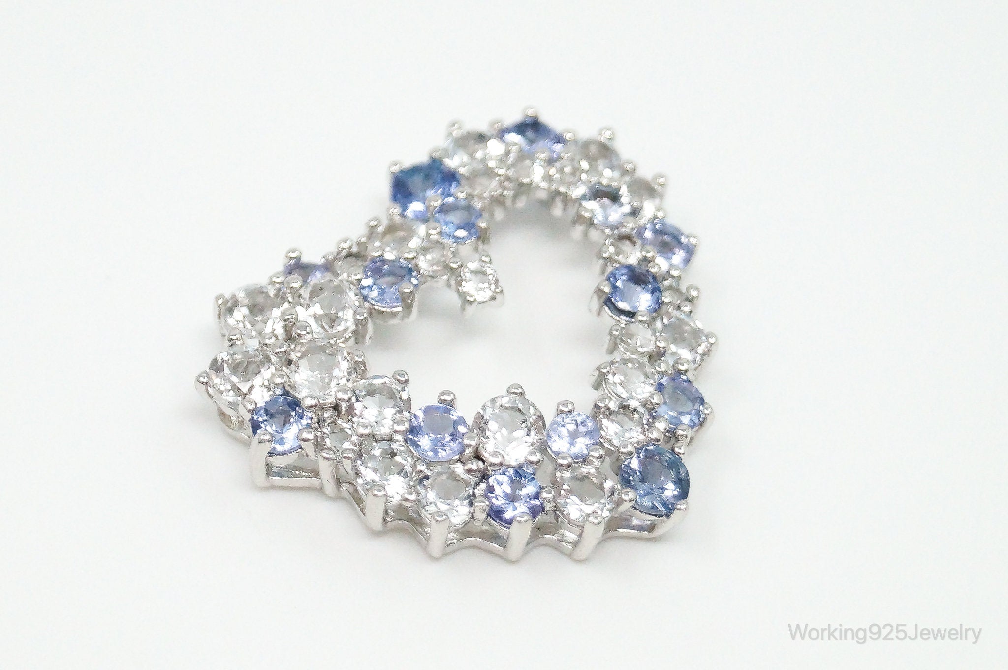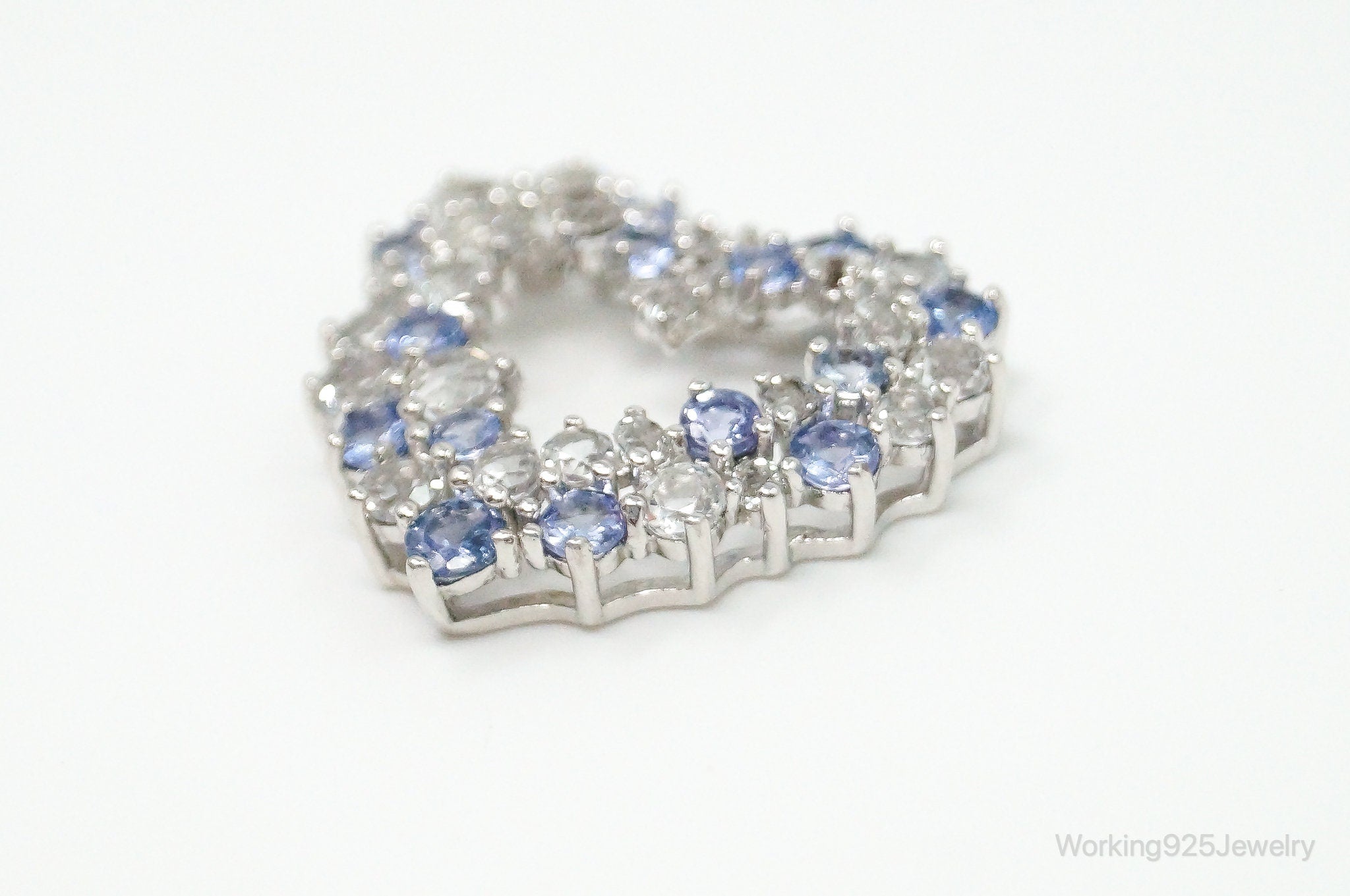 Vintage Designer Open Heart Cubic Zirconia Iolite Sterling Silver Pendant