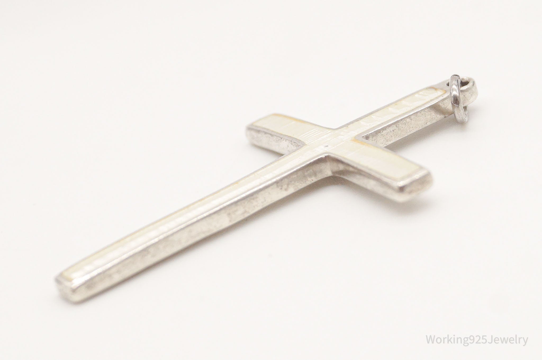 Vintage Large White Enamel Siam Sterling Silver Pendant