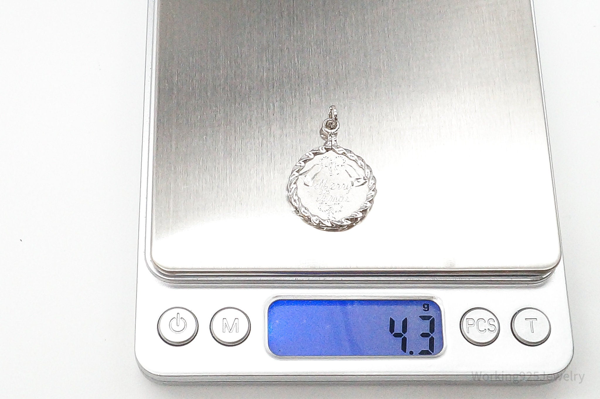 Vintage "Merry Xmas" Etched Bells Sterling Silver Pendant