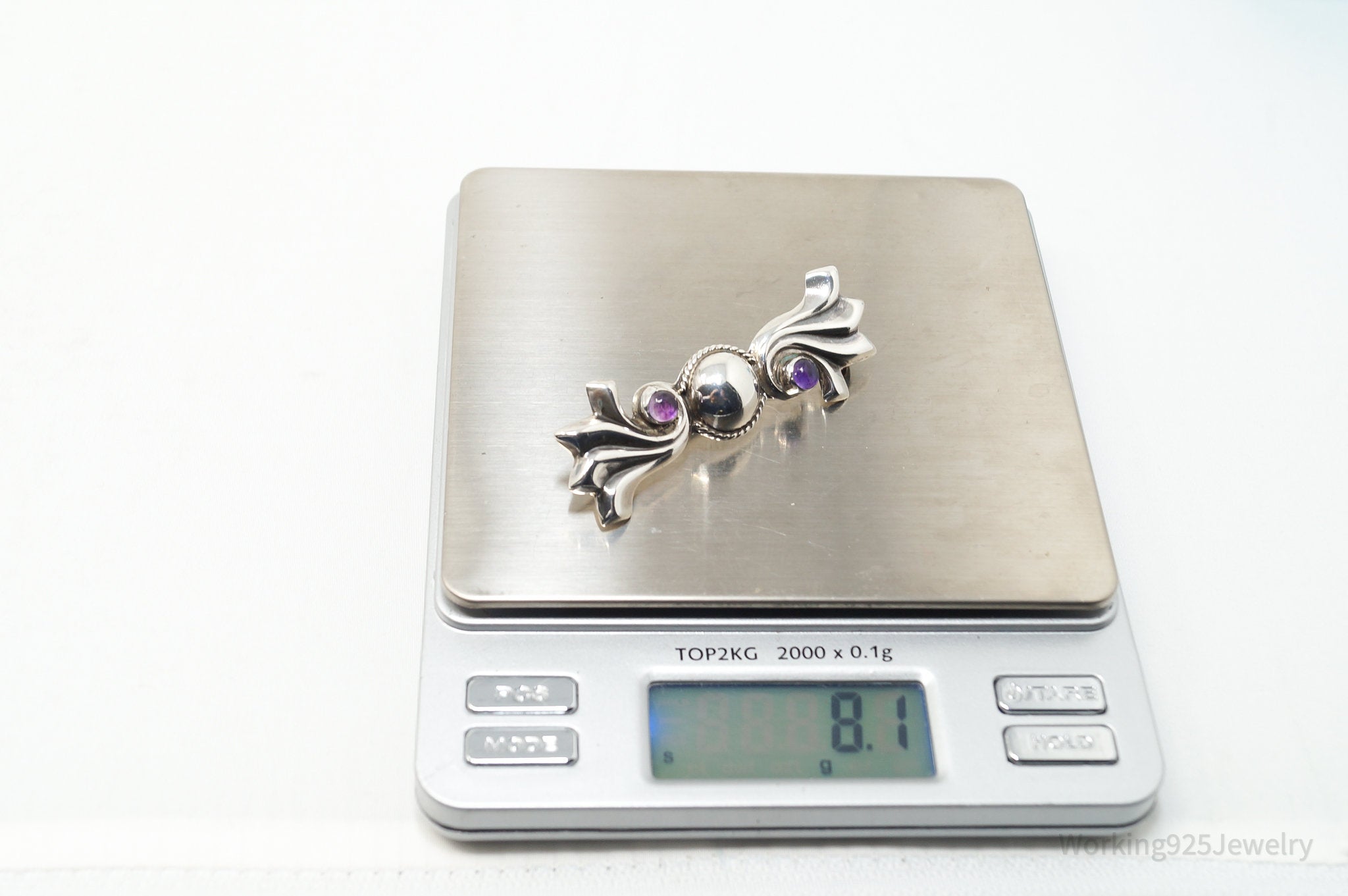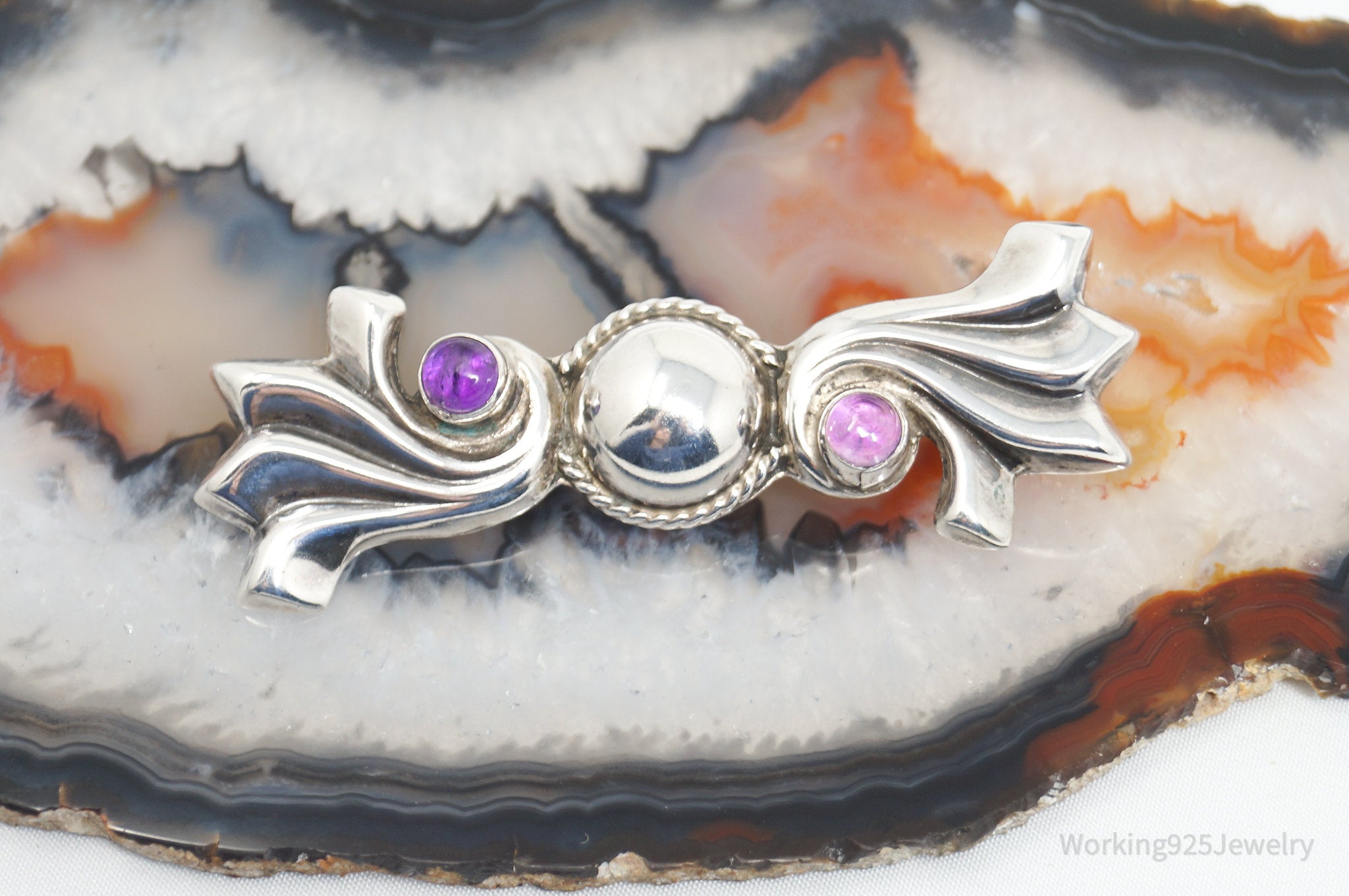 Vintage Mexican Amethyst AME Modern Sterling Silver Brooch Pin