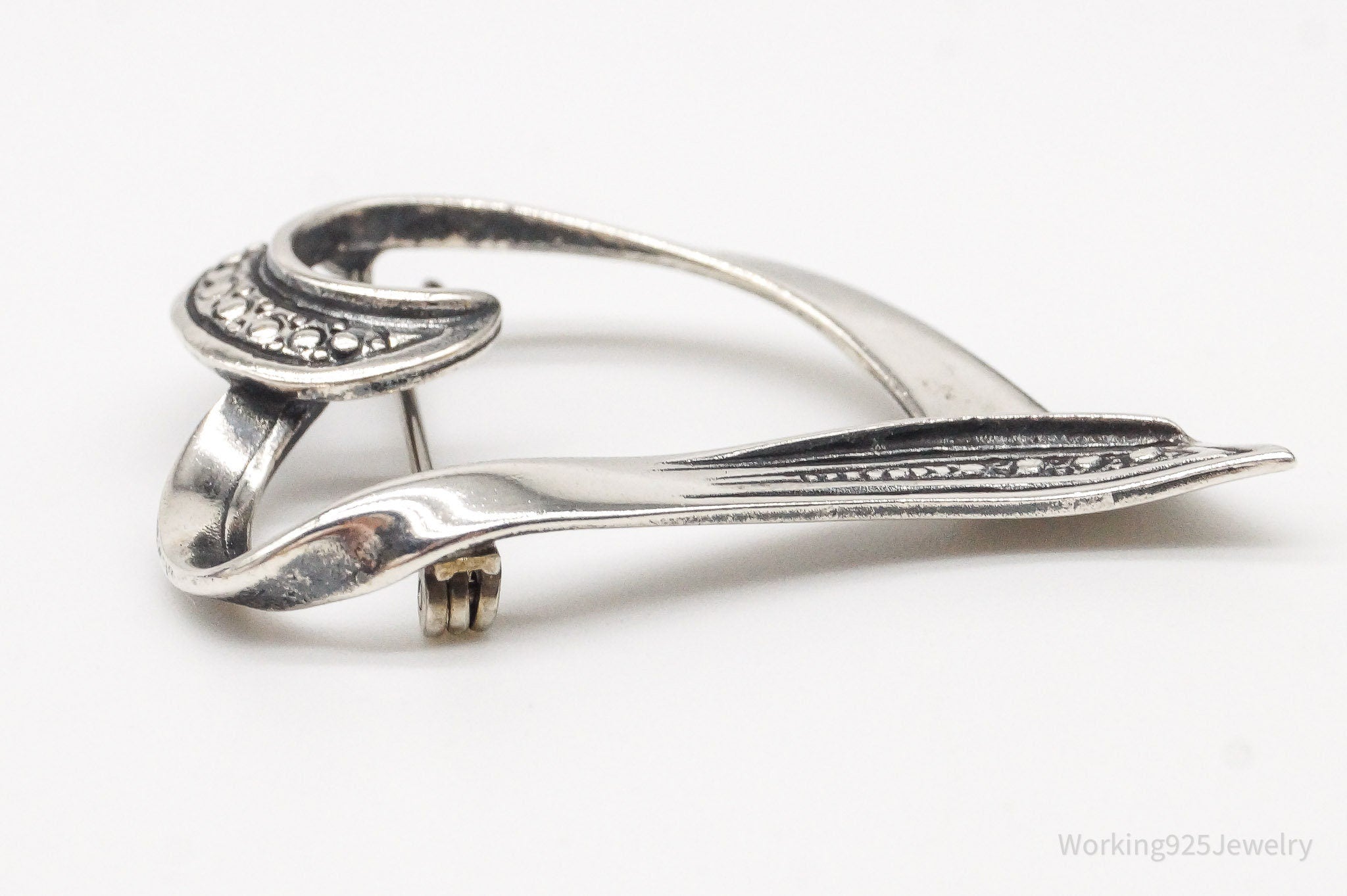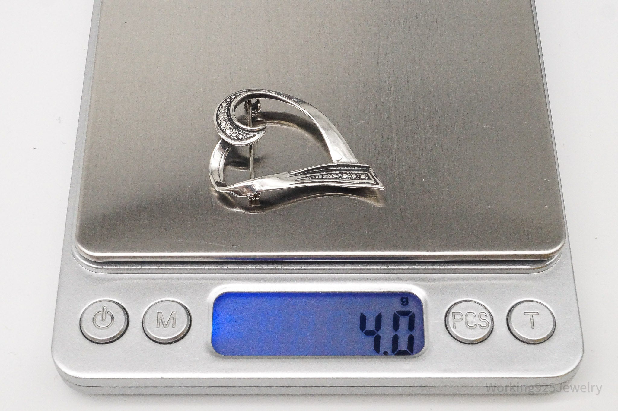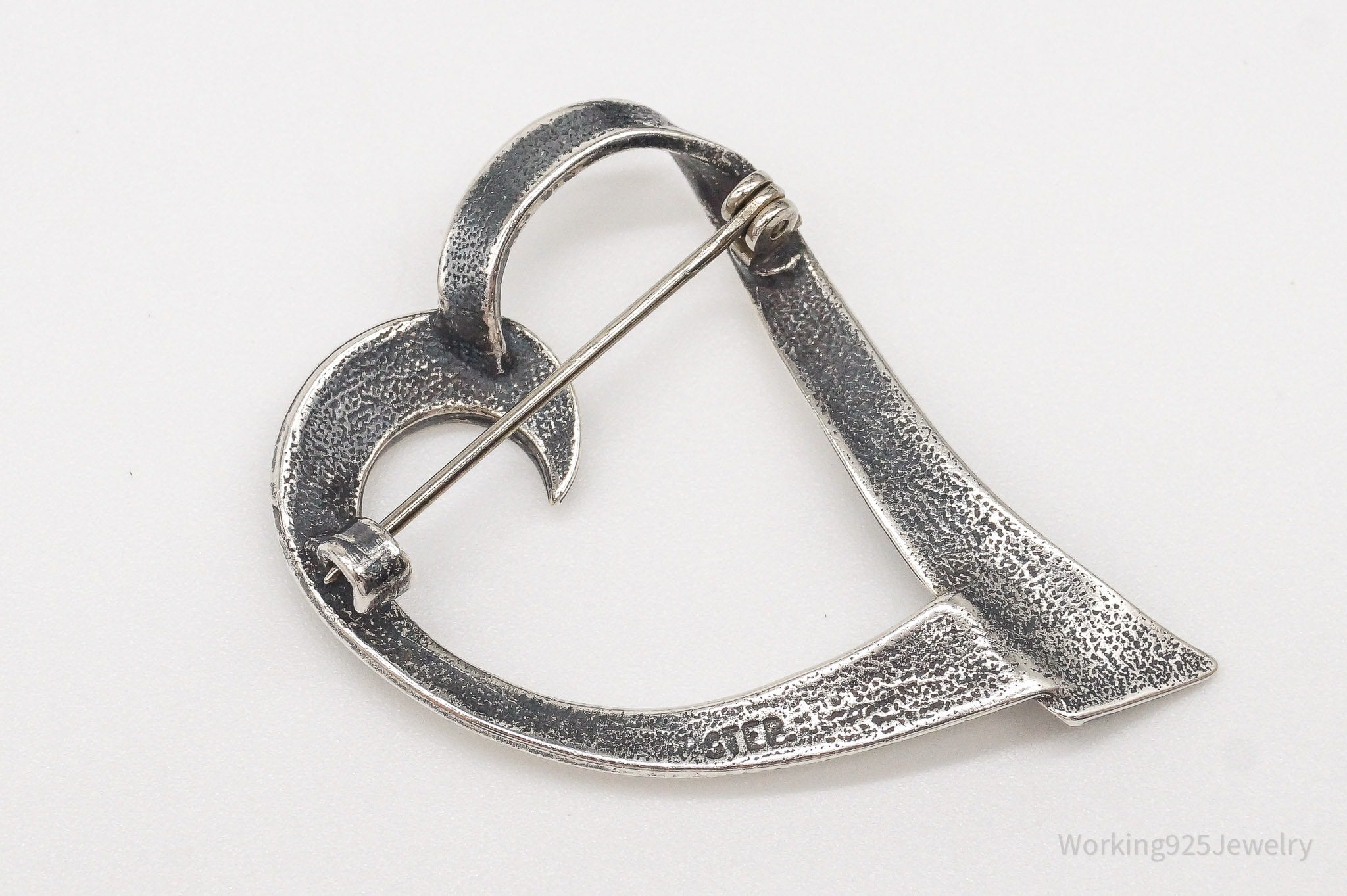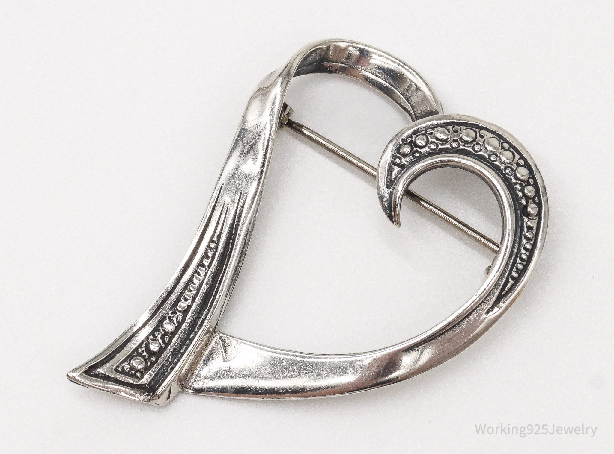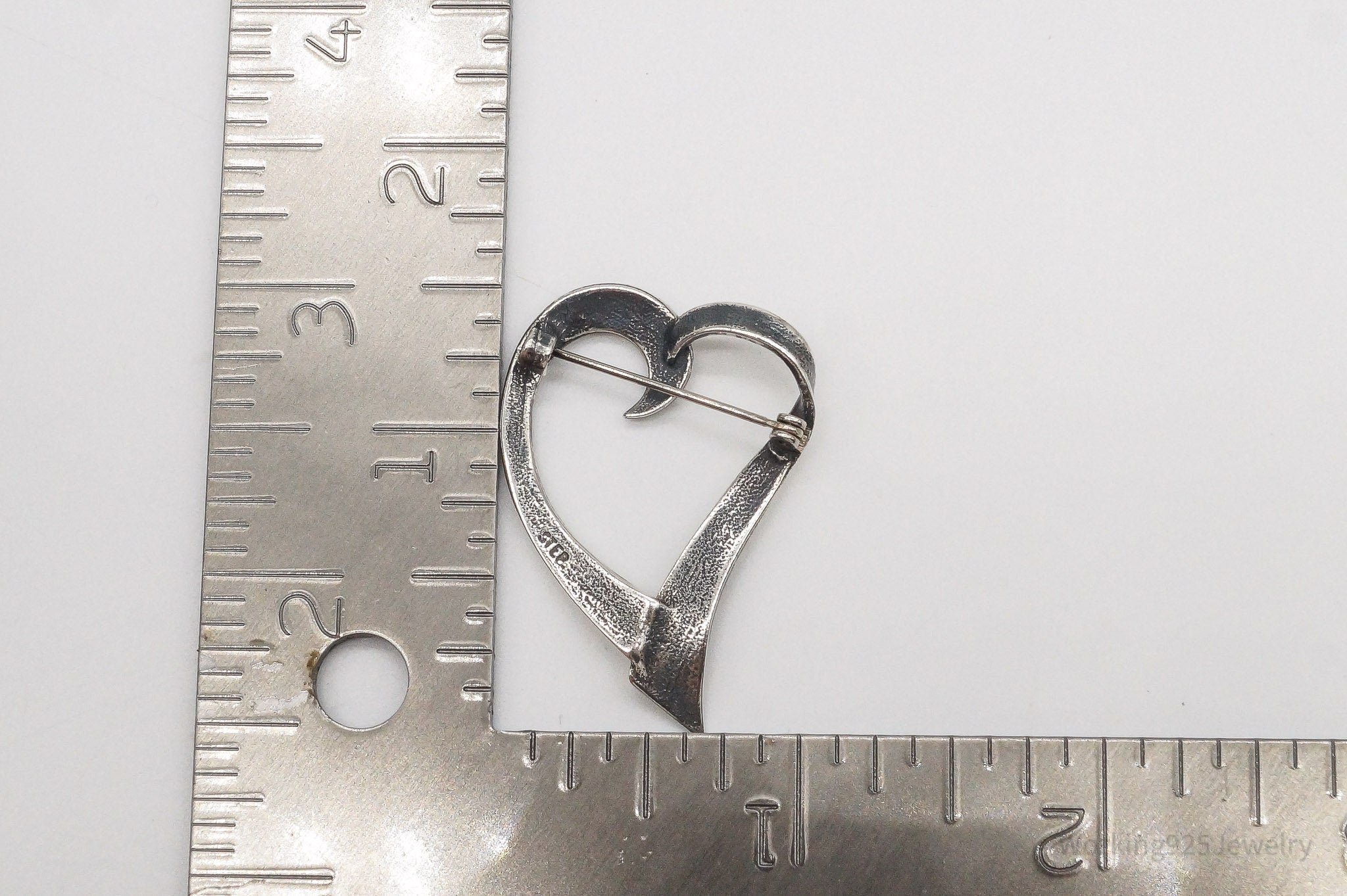 Vintage Open Heart Art Deco Sterling Silver Brooch Pin
