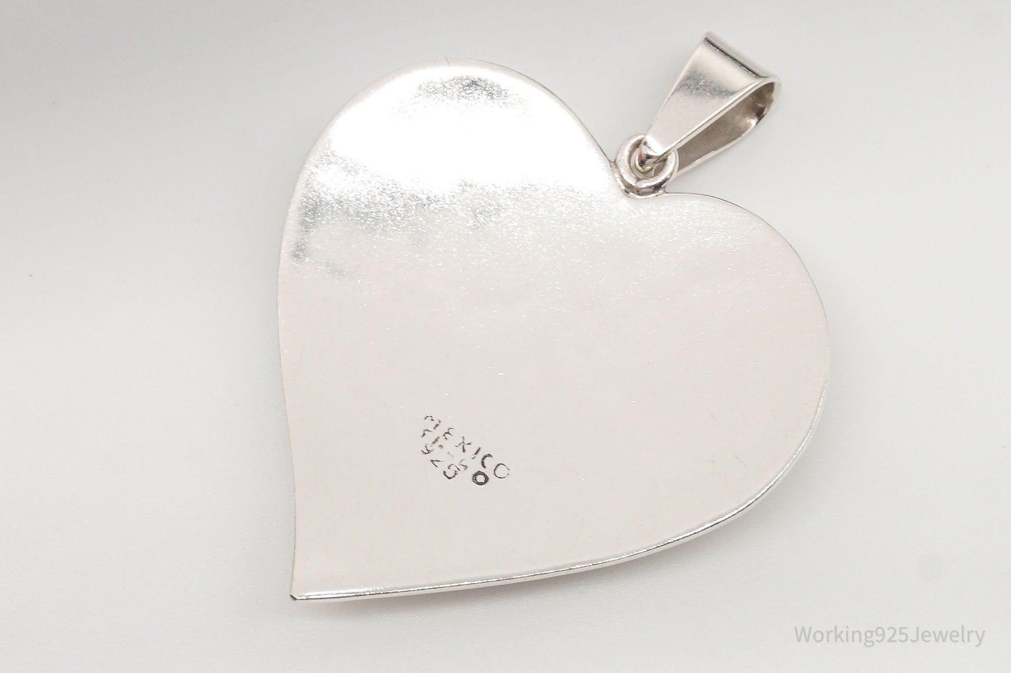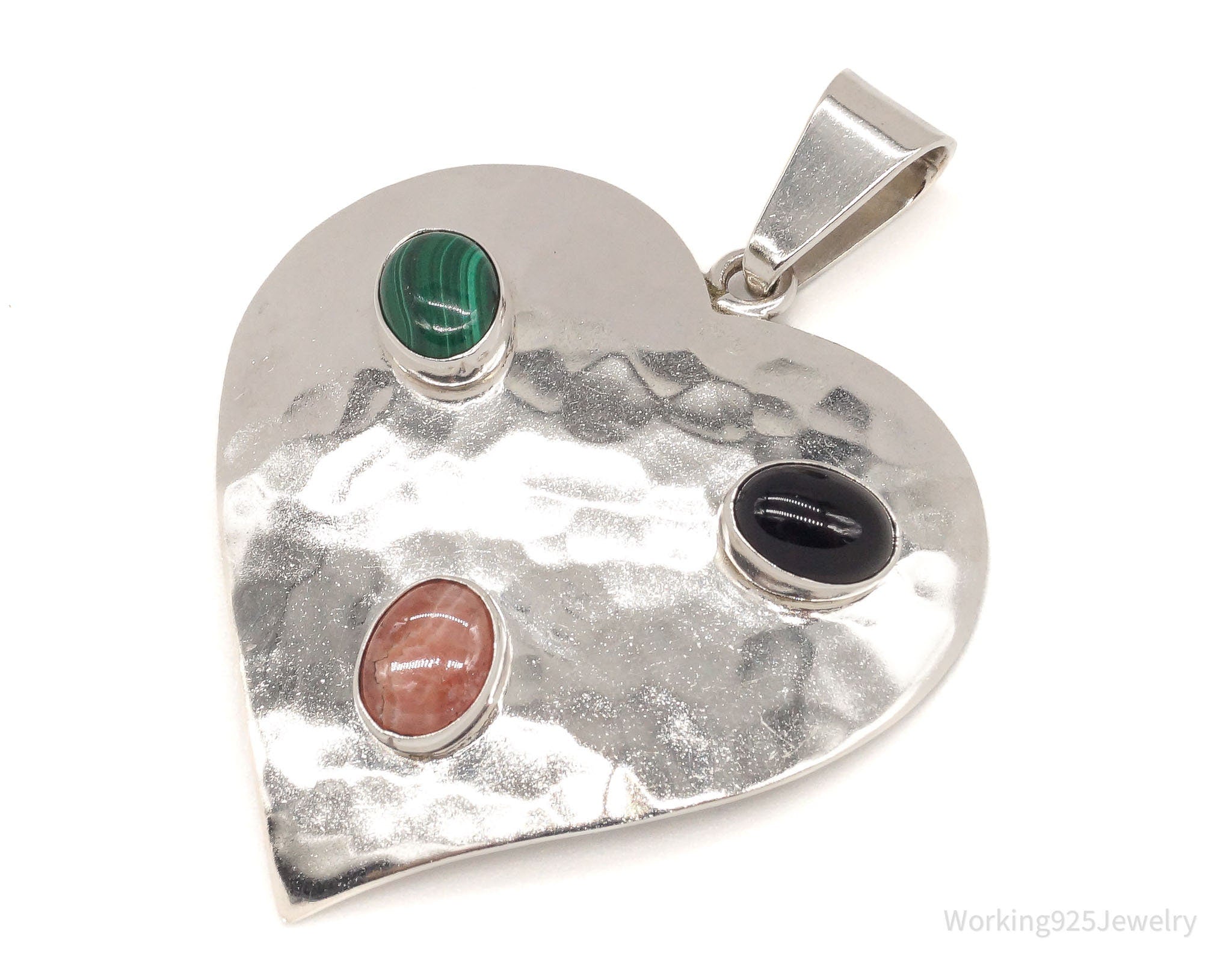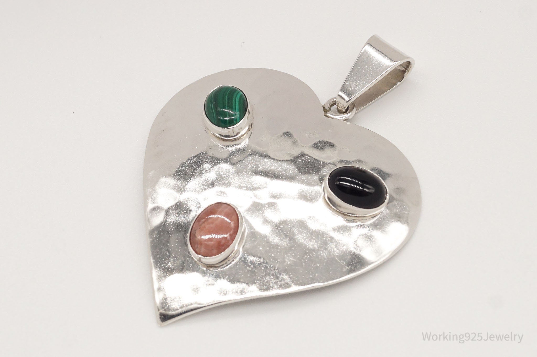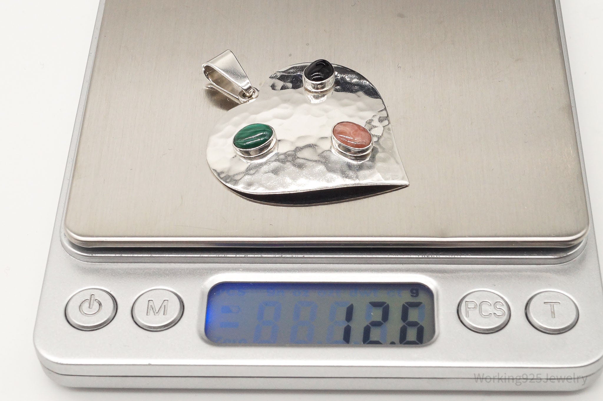 VTG Mexico Large Rhodochrosite Malachite Black Onyx Sterling Silver Pendant