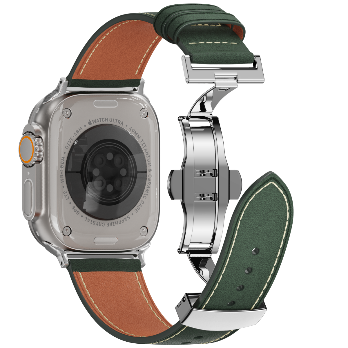 Affordable Genuine Leather Butterfly Buckle Band for Apple Watch ‐ Green / 44mm/45mm/46mm(S10)/49mm