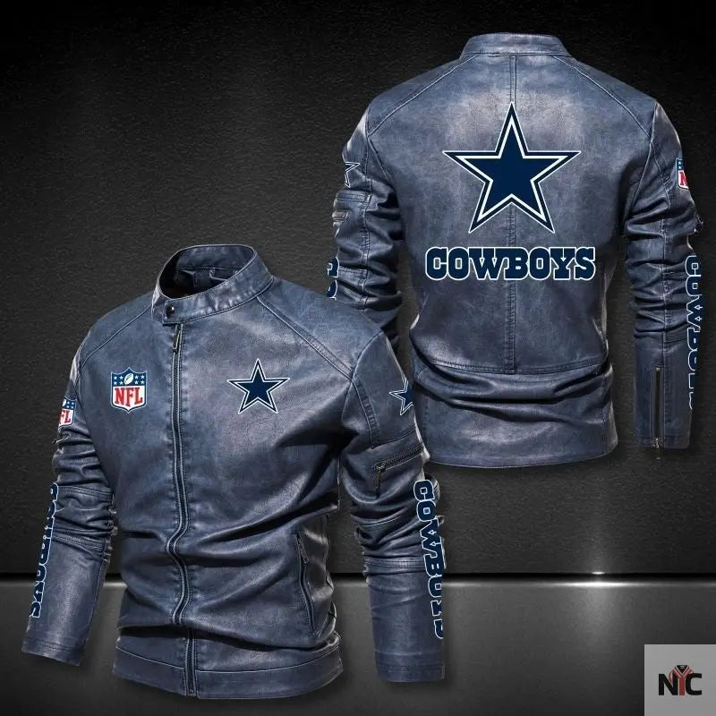 Dallas Cowboys Black Leather Jacket ‐ Male / 4XL / Blue