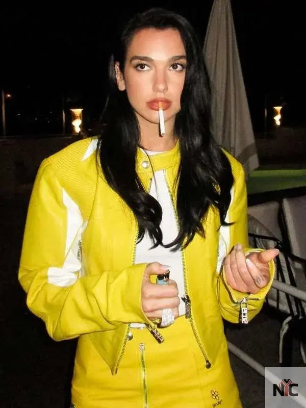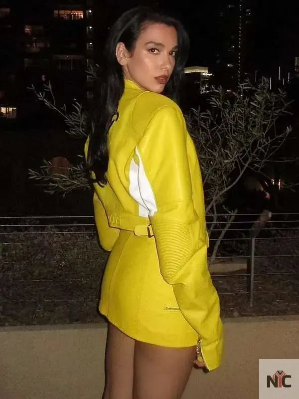 Dua Lipa Spongebob Yellow Leather Jacket ‐ Female / S