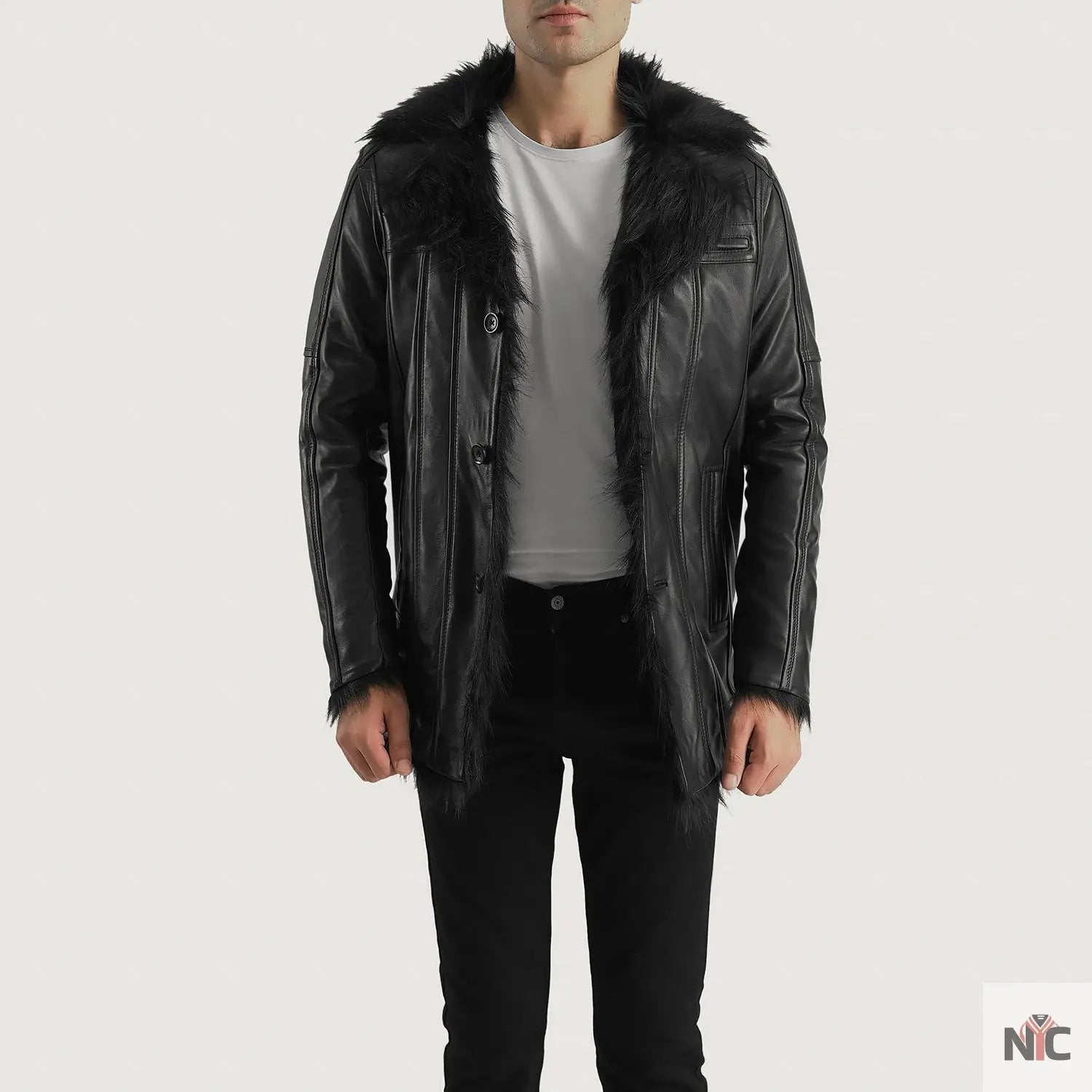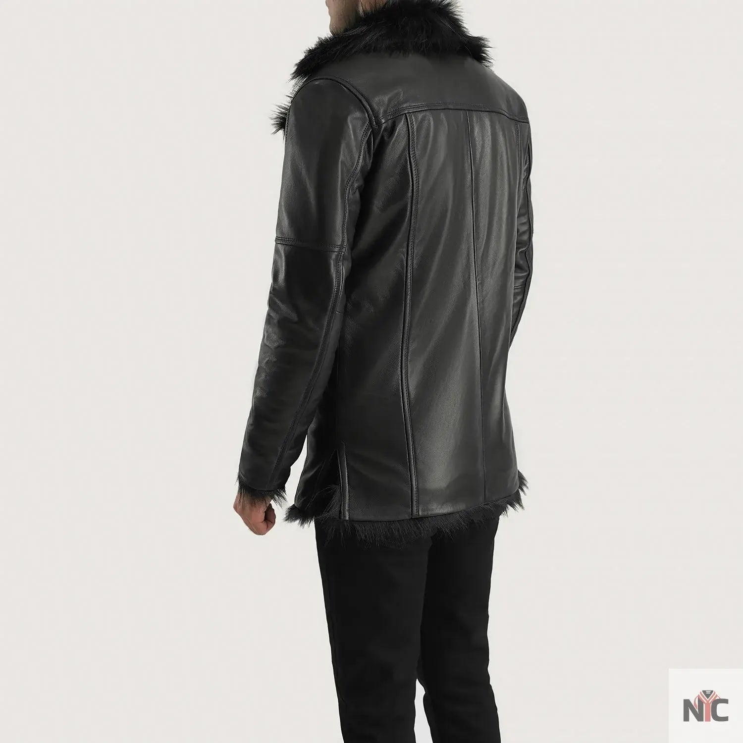 Furcliff Black Leather Coat
