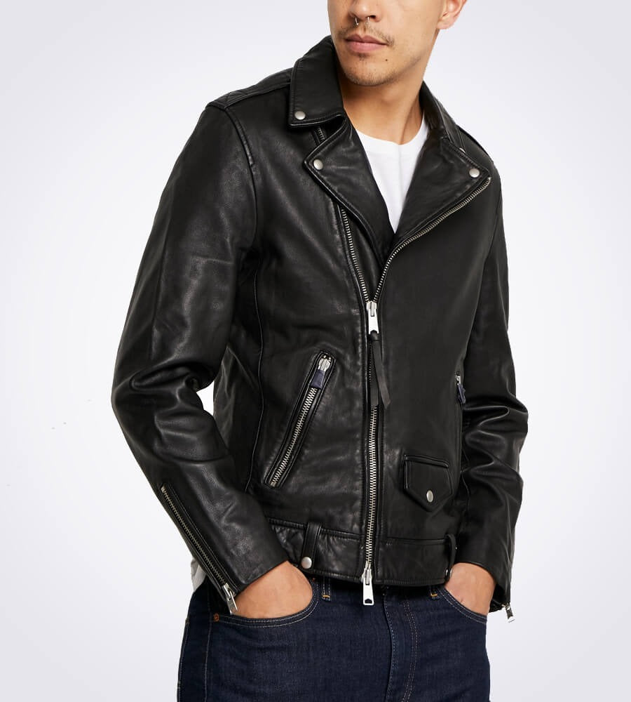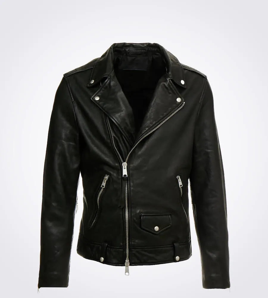 Milo Black Biker Lapel Collar Leather Jacket ‐ M / Male