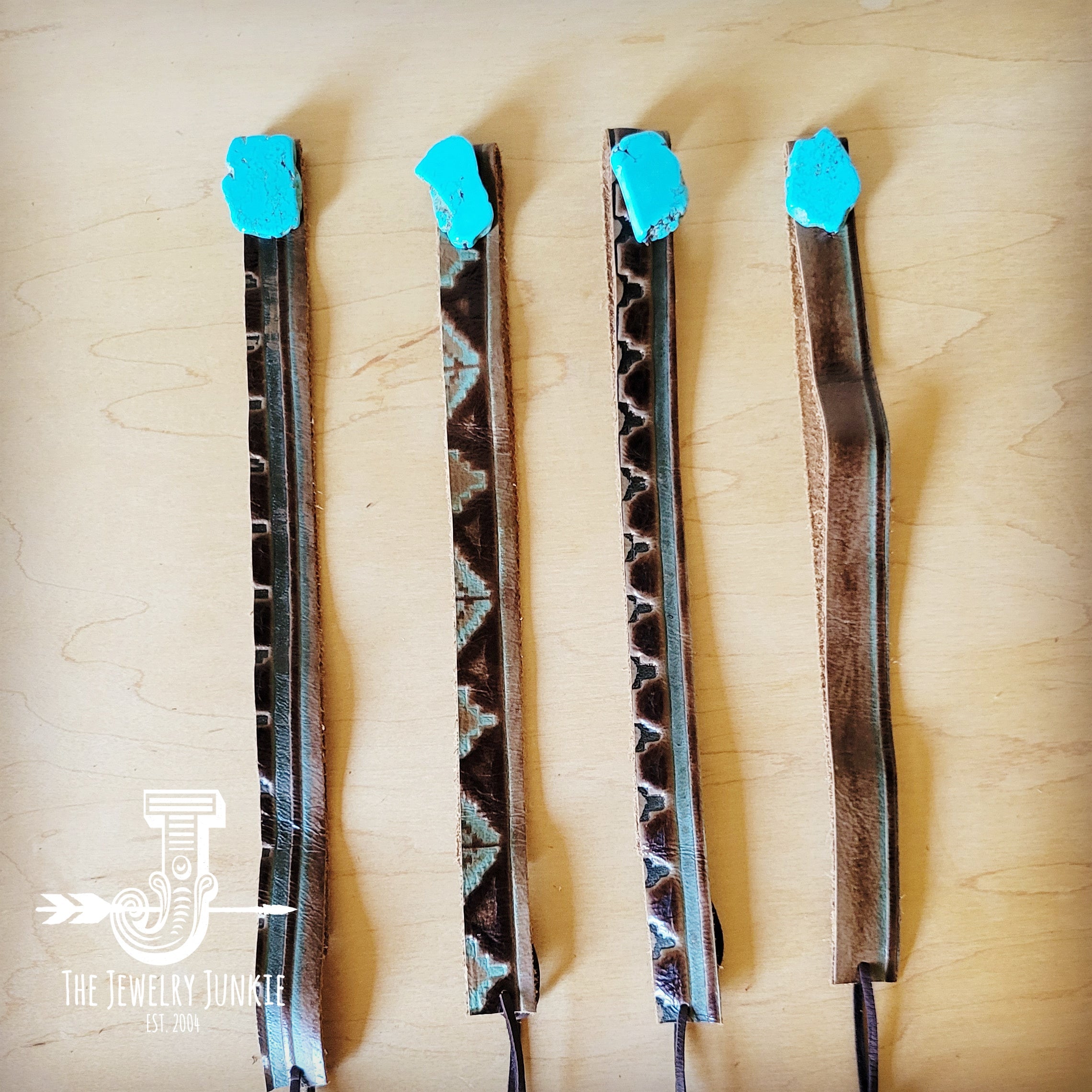 Navajo Embossed Leather Hat Band Only w/ Turquoise Slab 950e