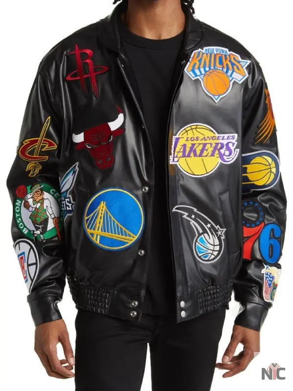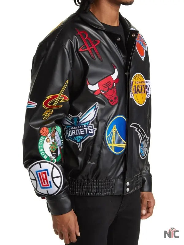 NBA Collage Faux Leather Jacket