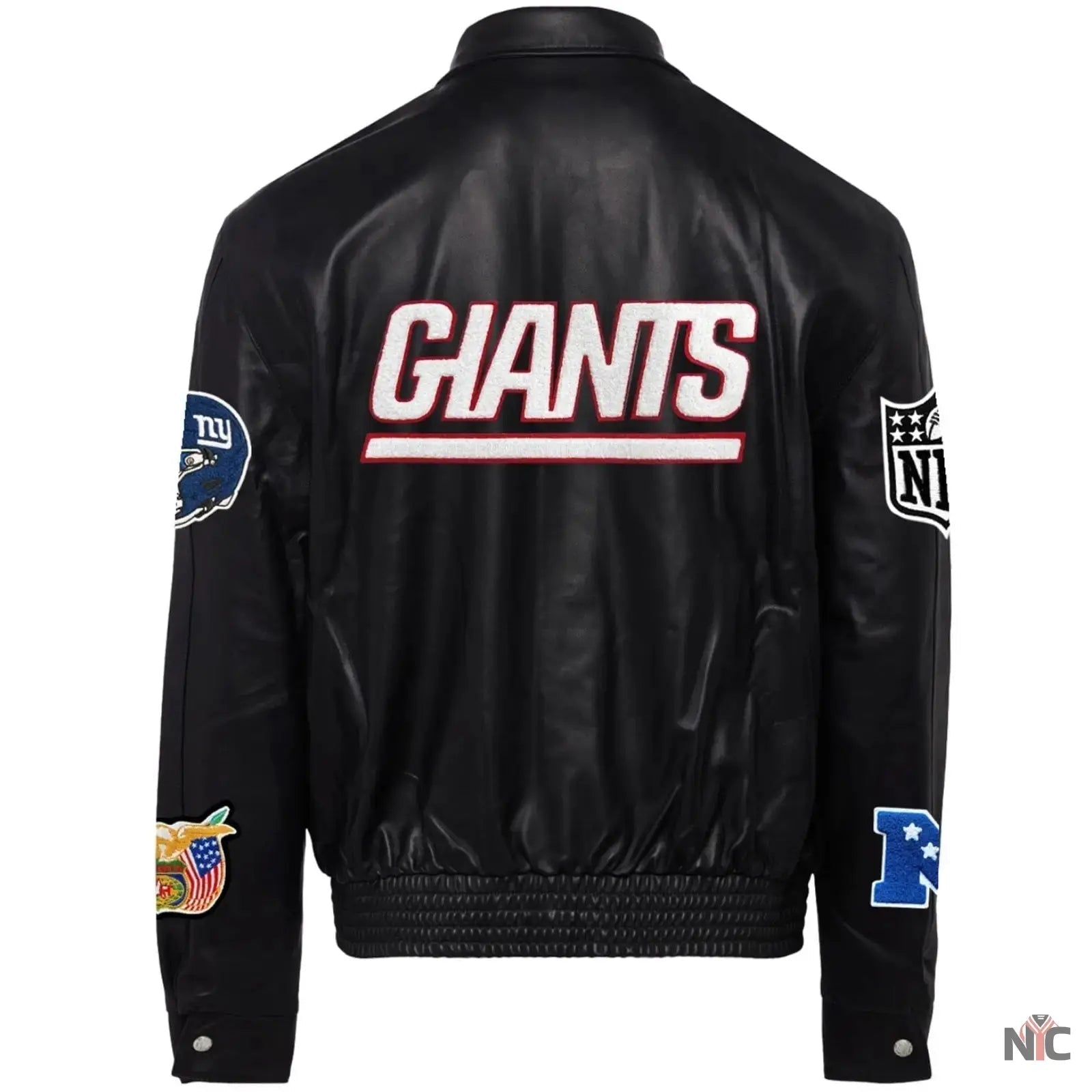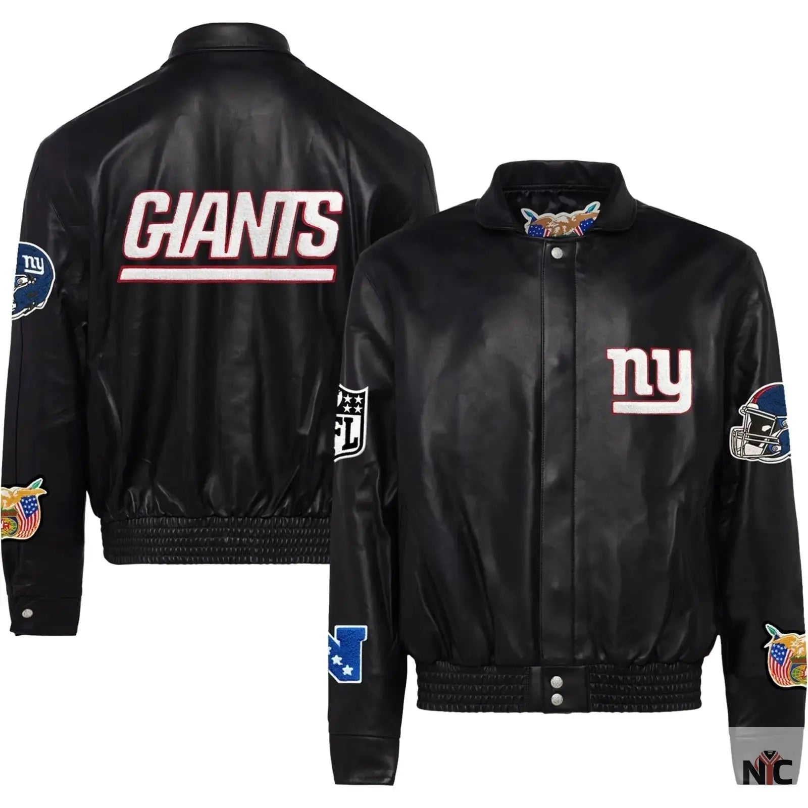 New York Giants Jeff Hamilton Black Leather Varsity Jacket