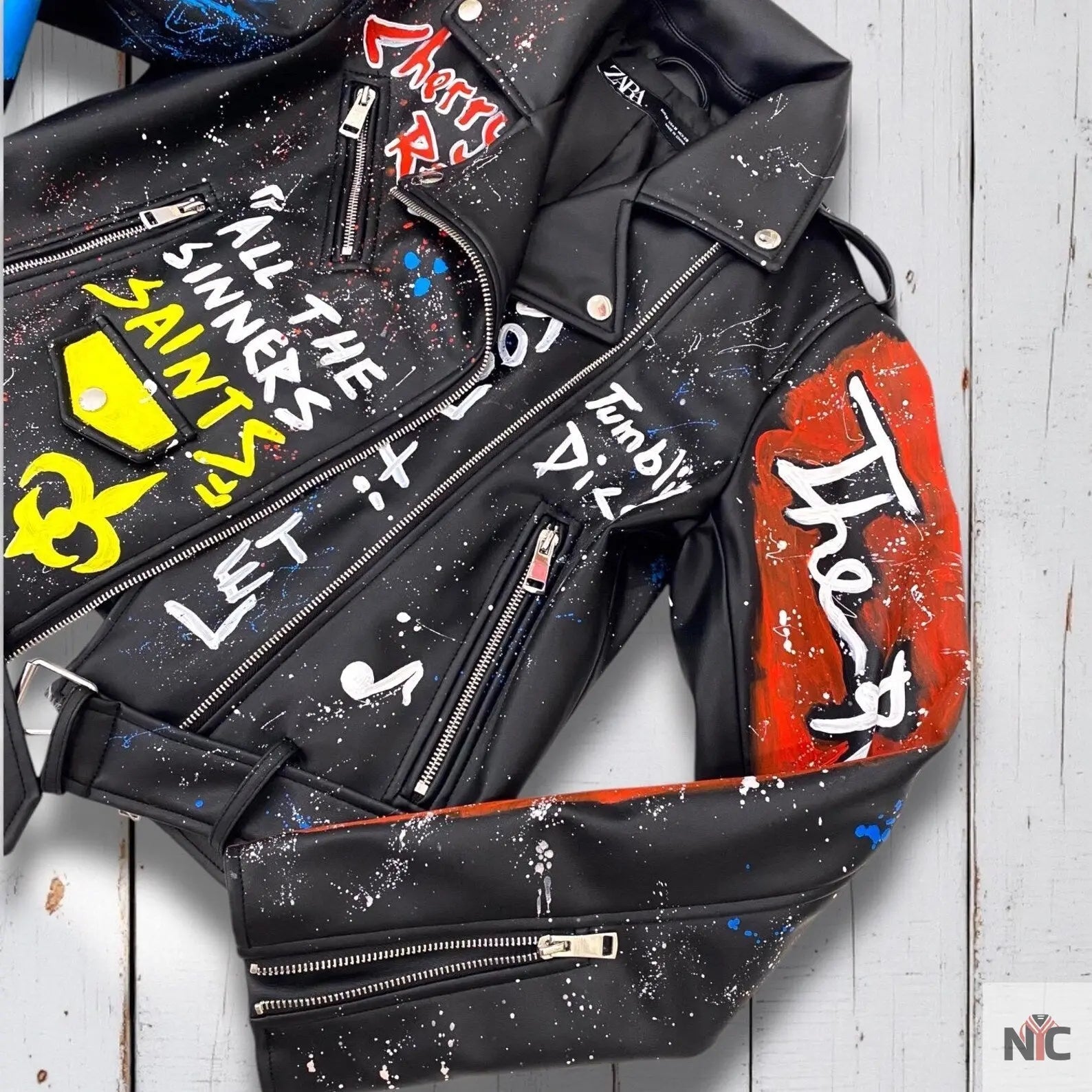 Rolling Stones, Rock 'n Roll, Hand-Painted Leather Jacket ‐ S / Female
